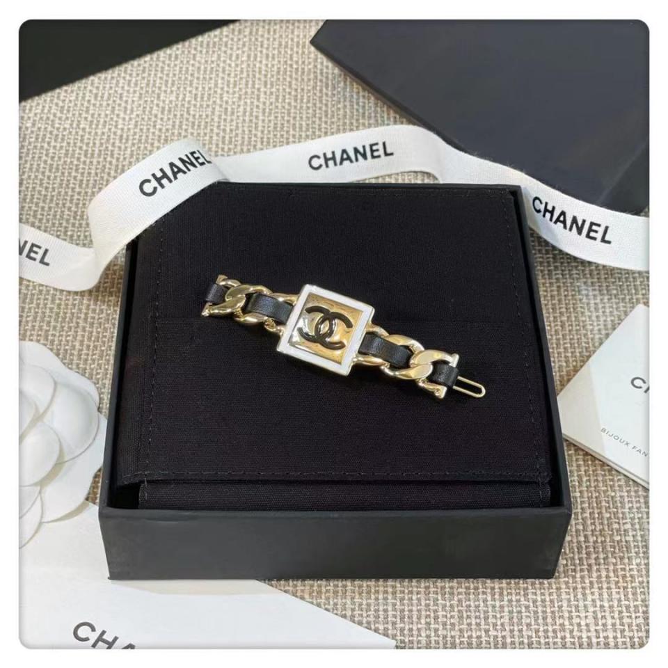 太酷太特別了,光面金屬的元素搭配方形的設計,時髦感高級感,金色金屬,CC中間是黑色滴油的,金屬白邊是白色滴油的,黑白金結合!
