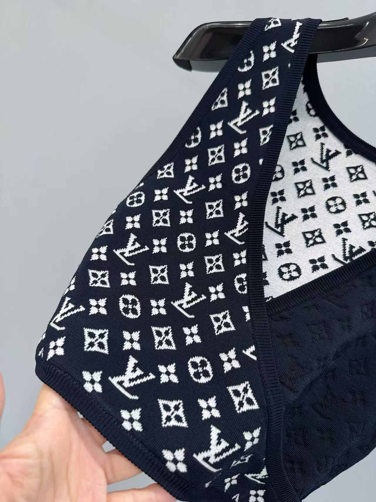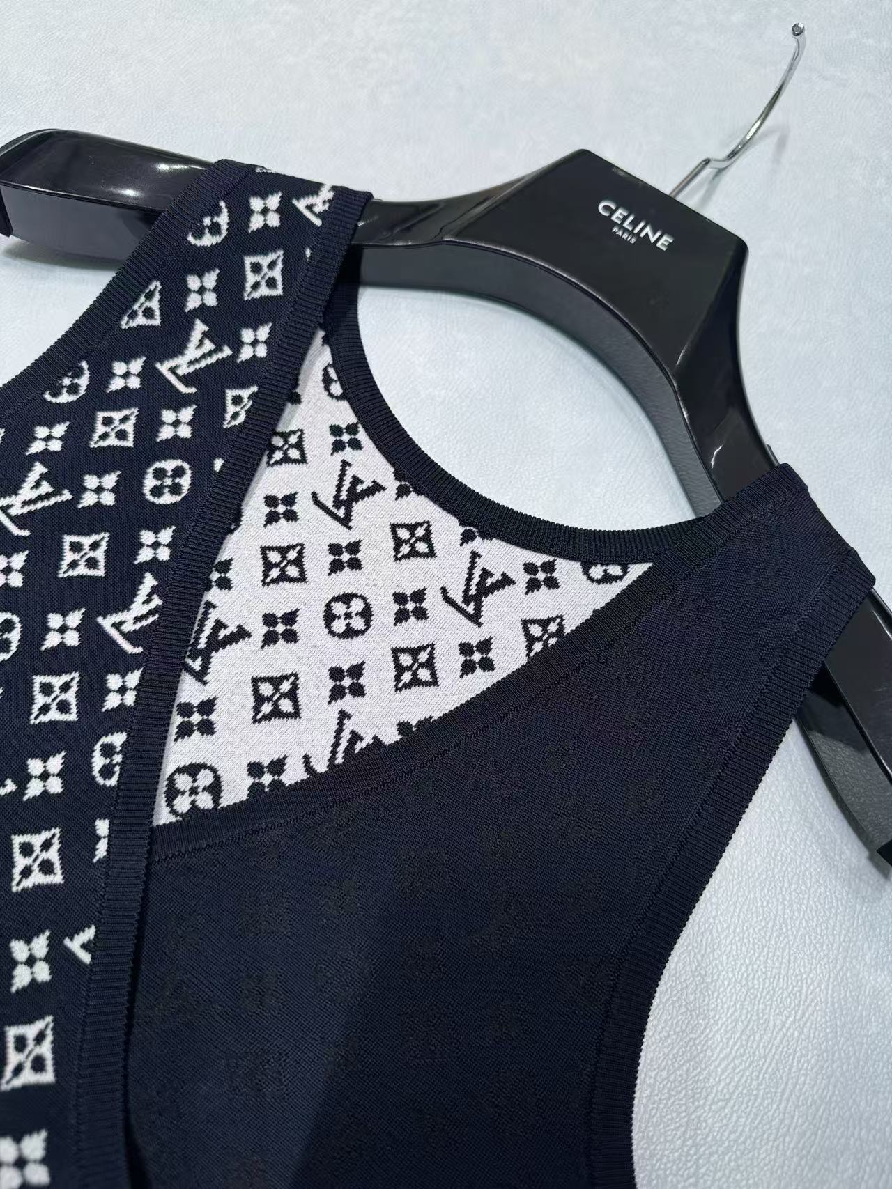 這款背心以經典老花圖案為基底,但不同於以往的全明花設計,下半部採用暗花拼接,視覺上更顯精緻與內斂,耐看又不過於張揚。