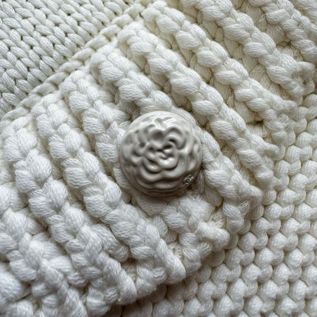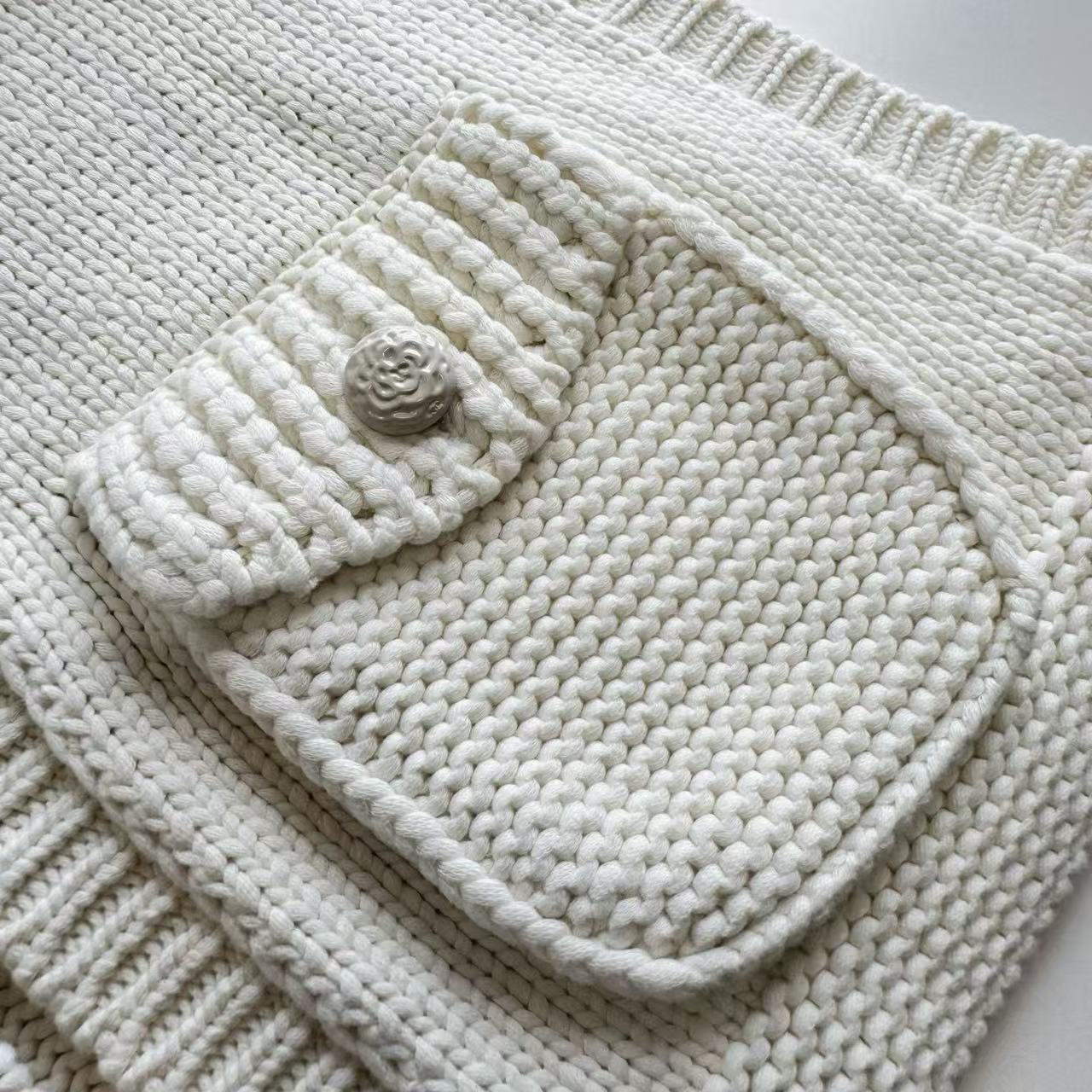 採用手工粗針鉤織技法編織,營造出獨有的立體編織感,整體是偏短版的 廓形設計,修身又顯比例。