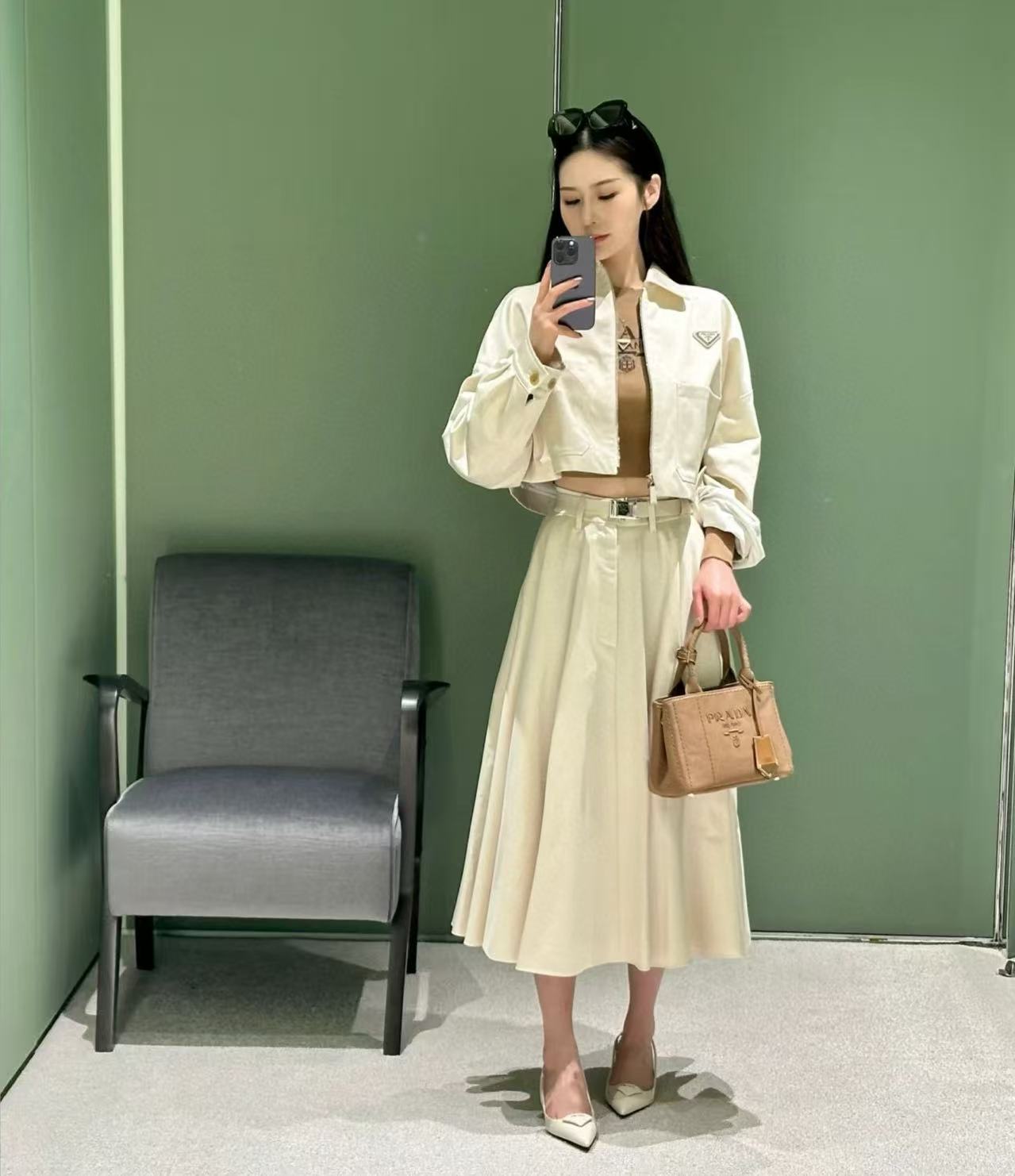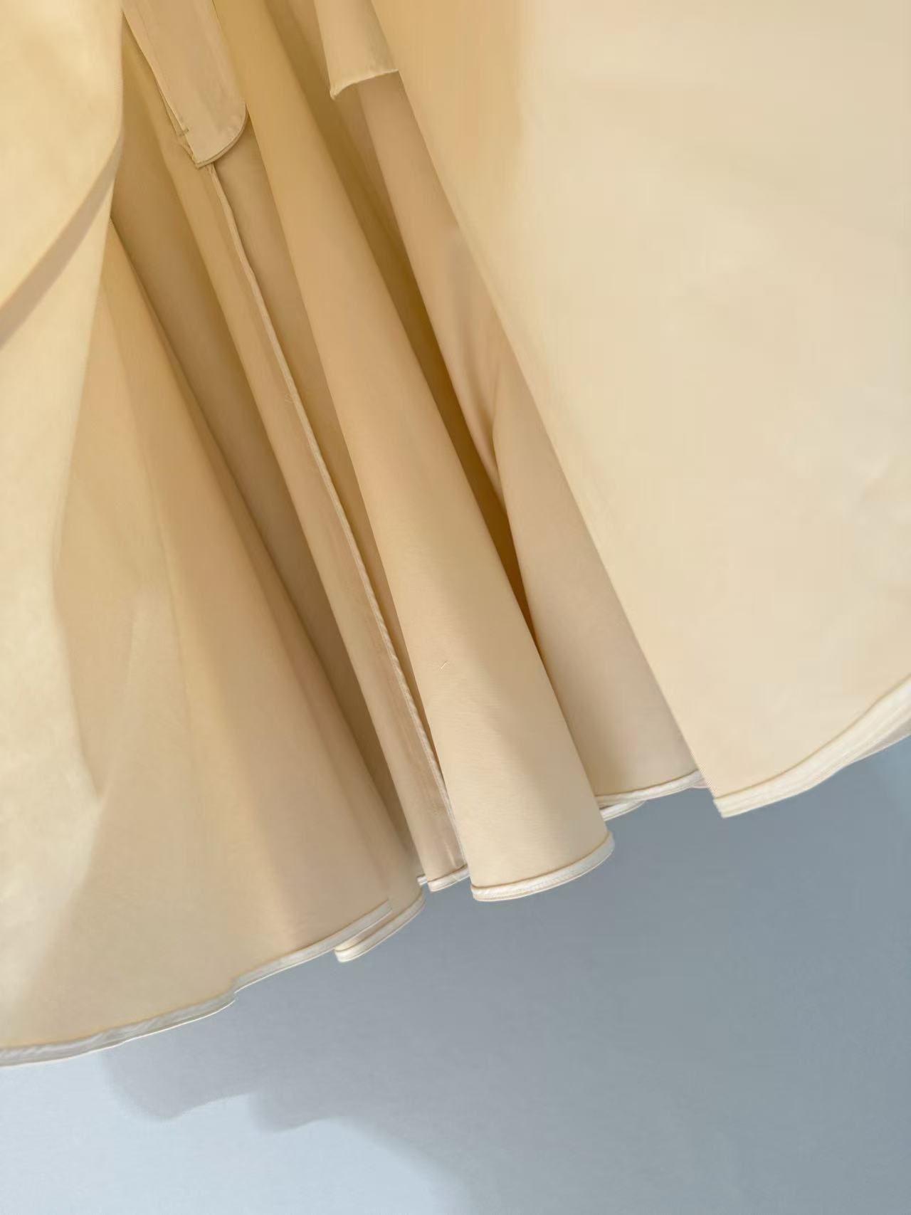 整體剪裁以經典高腰設計結合大傘擺剪裁,行走間自然搖曳,輕鬆穿出法式大美女氛圍。