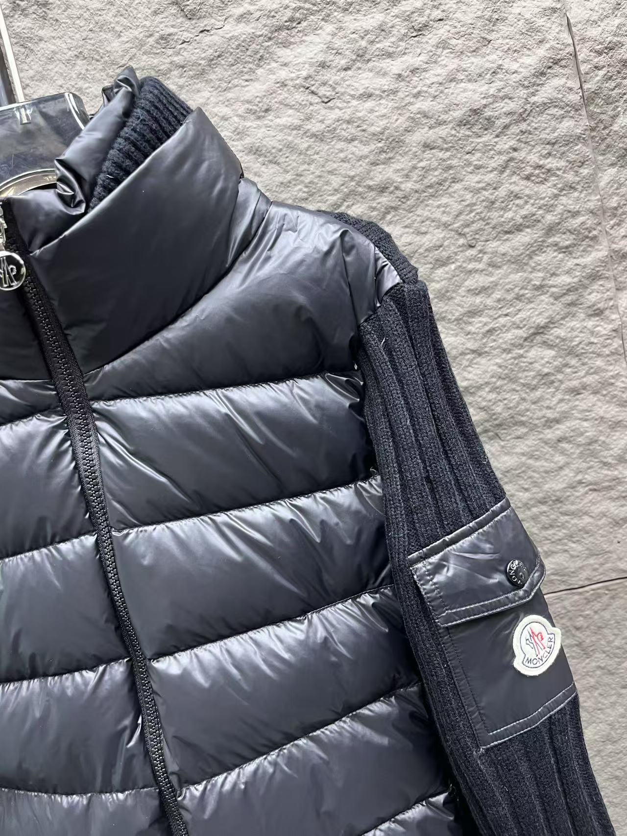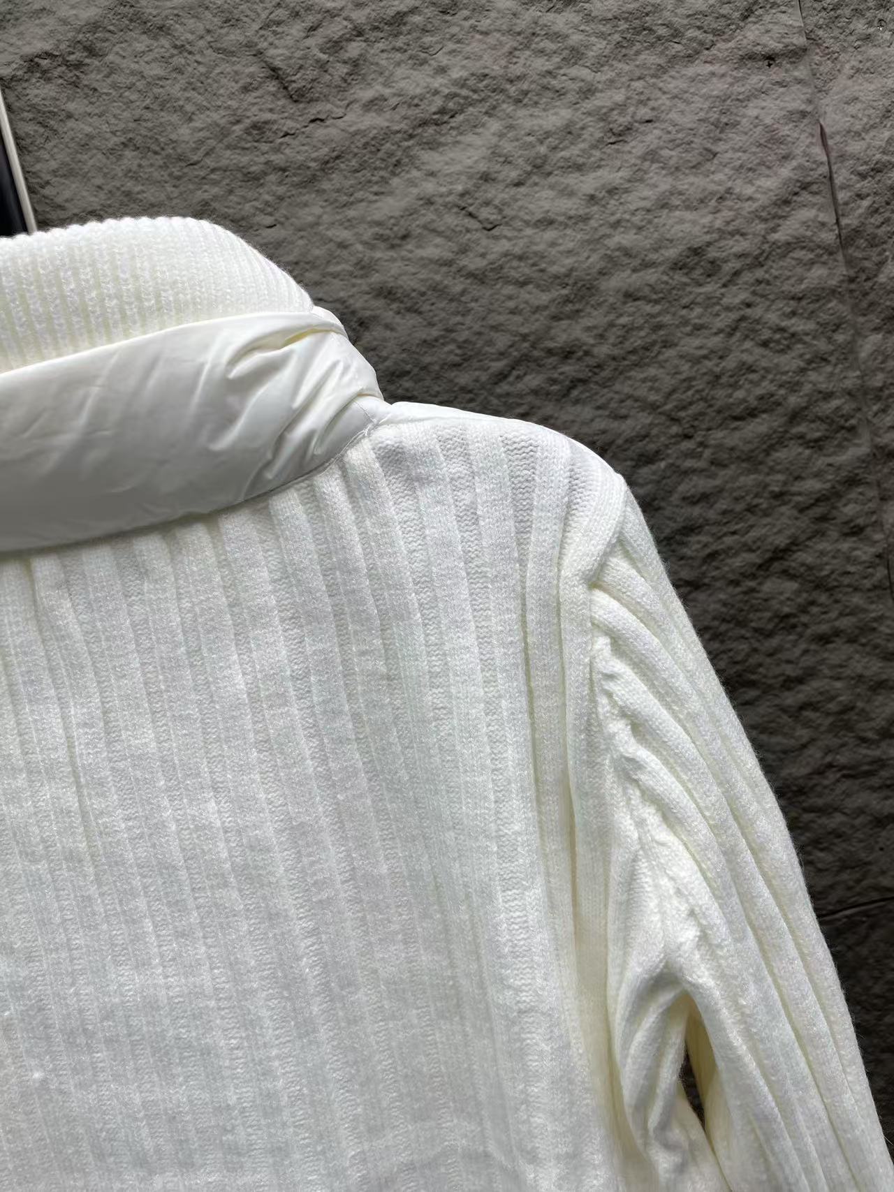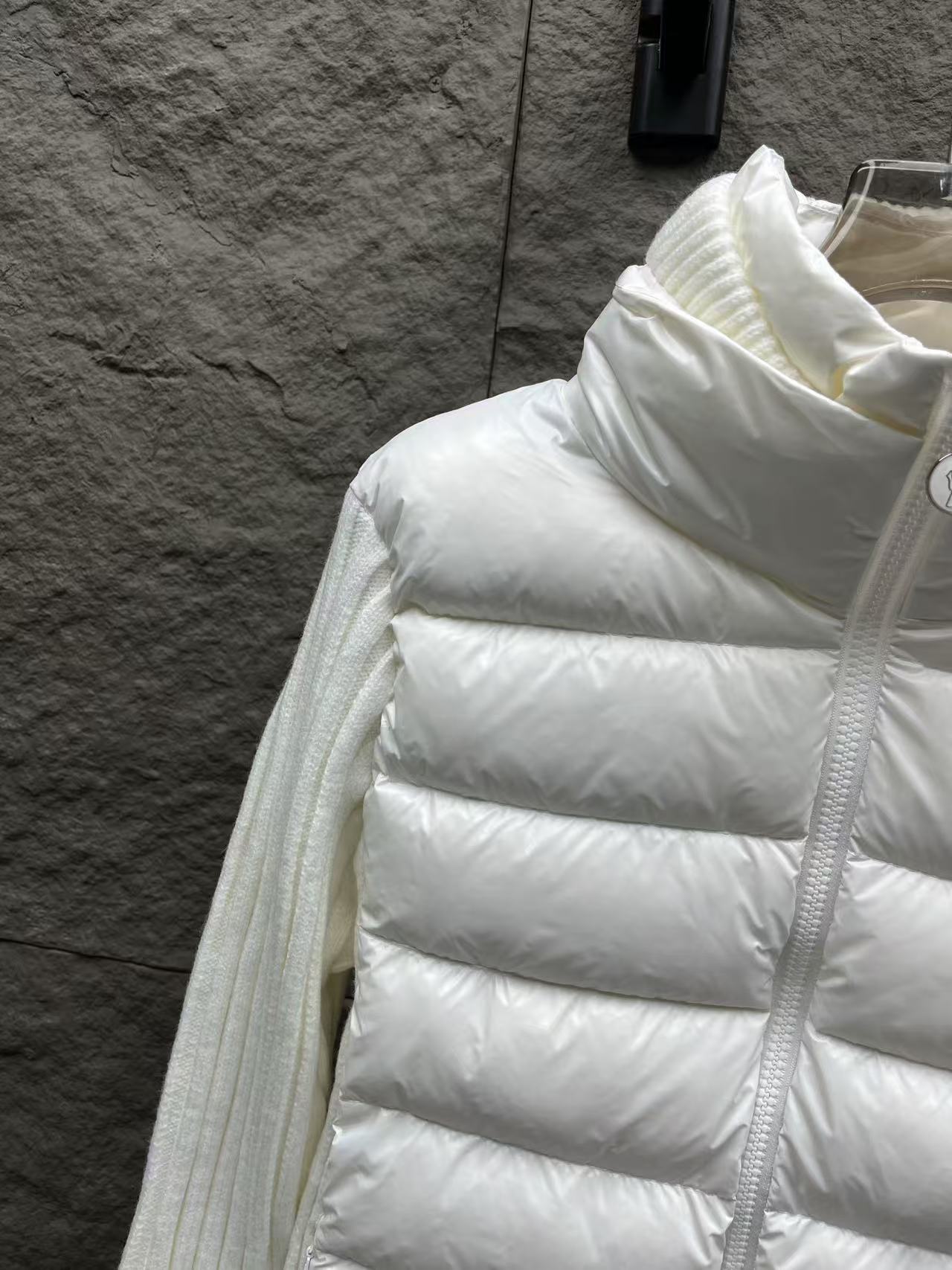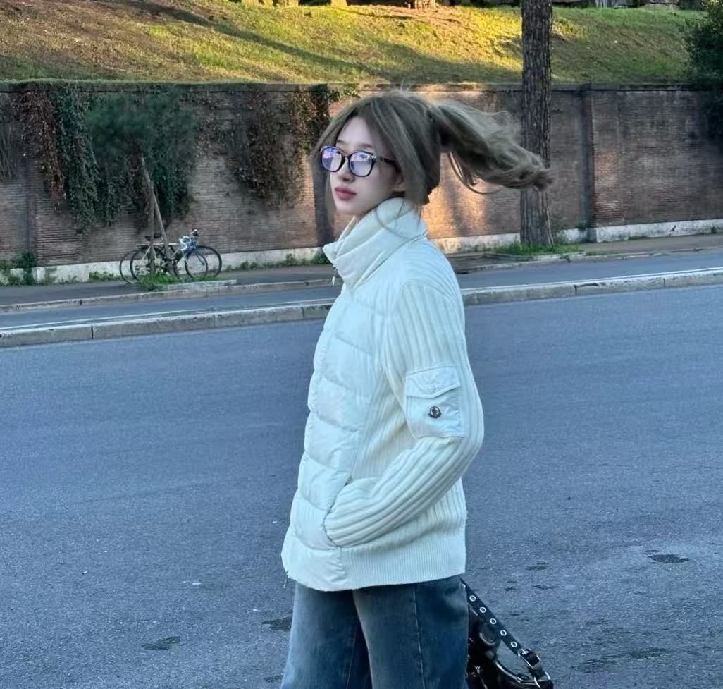 針織拼接:手臂和領邊的針織與外套主體互相呼應,讓整件外套看起來更有層次感,完全擺脫了傳統羽絨服的沉悶感。