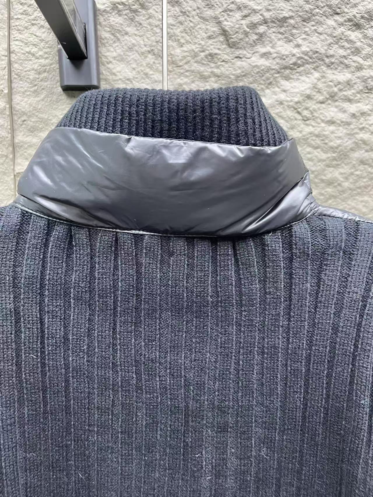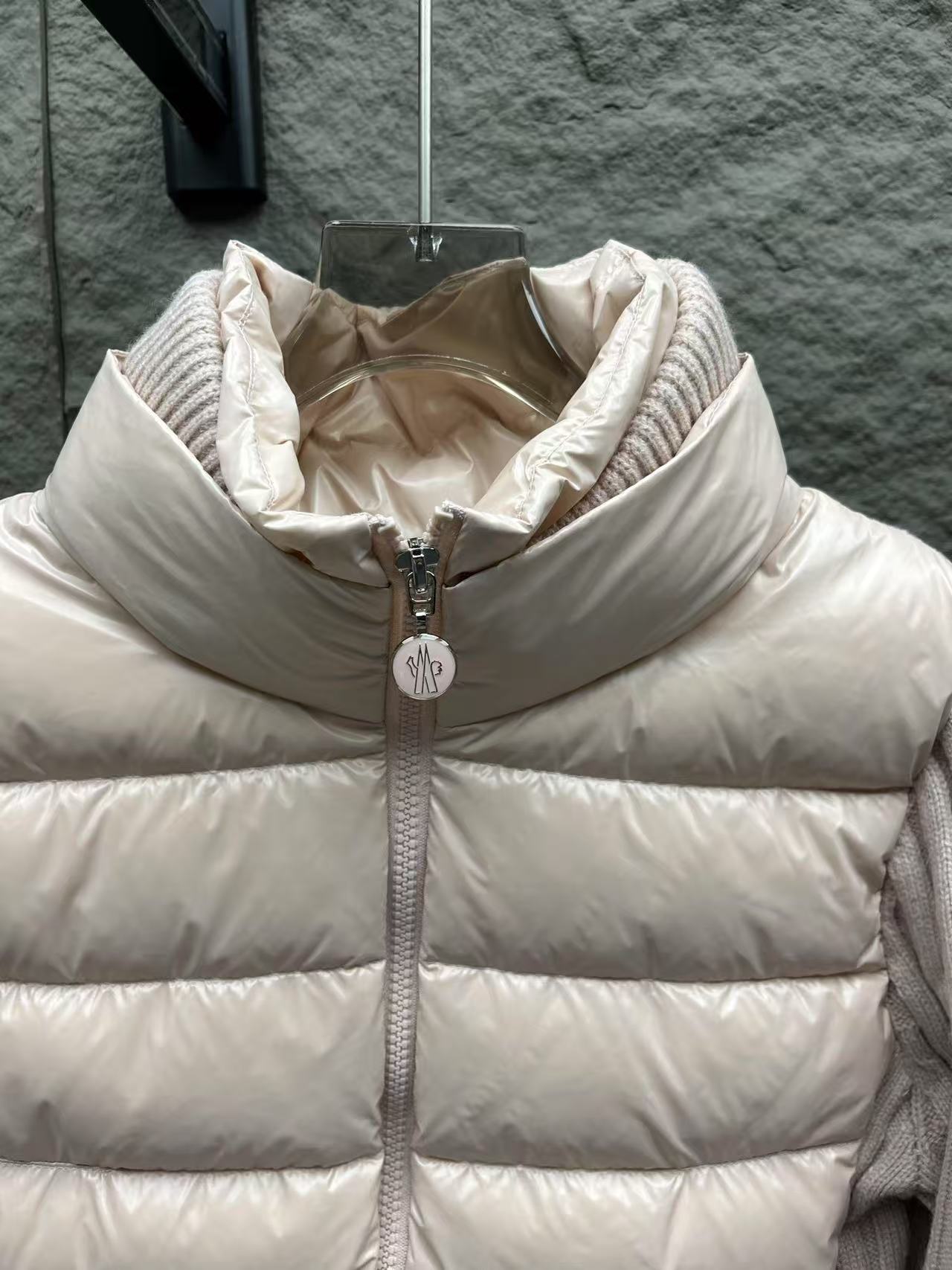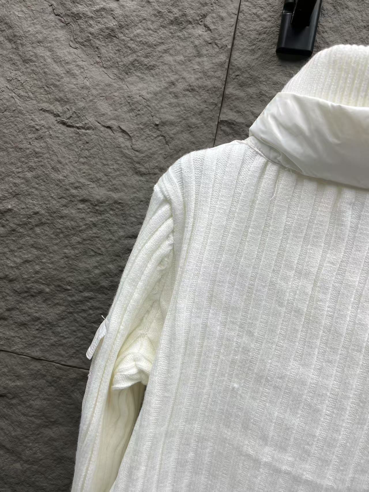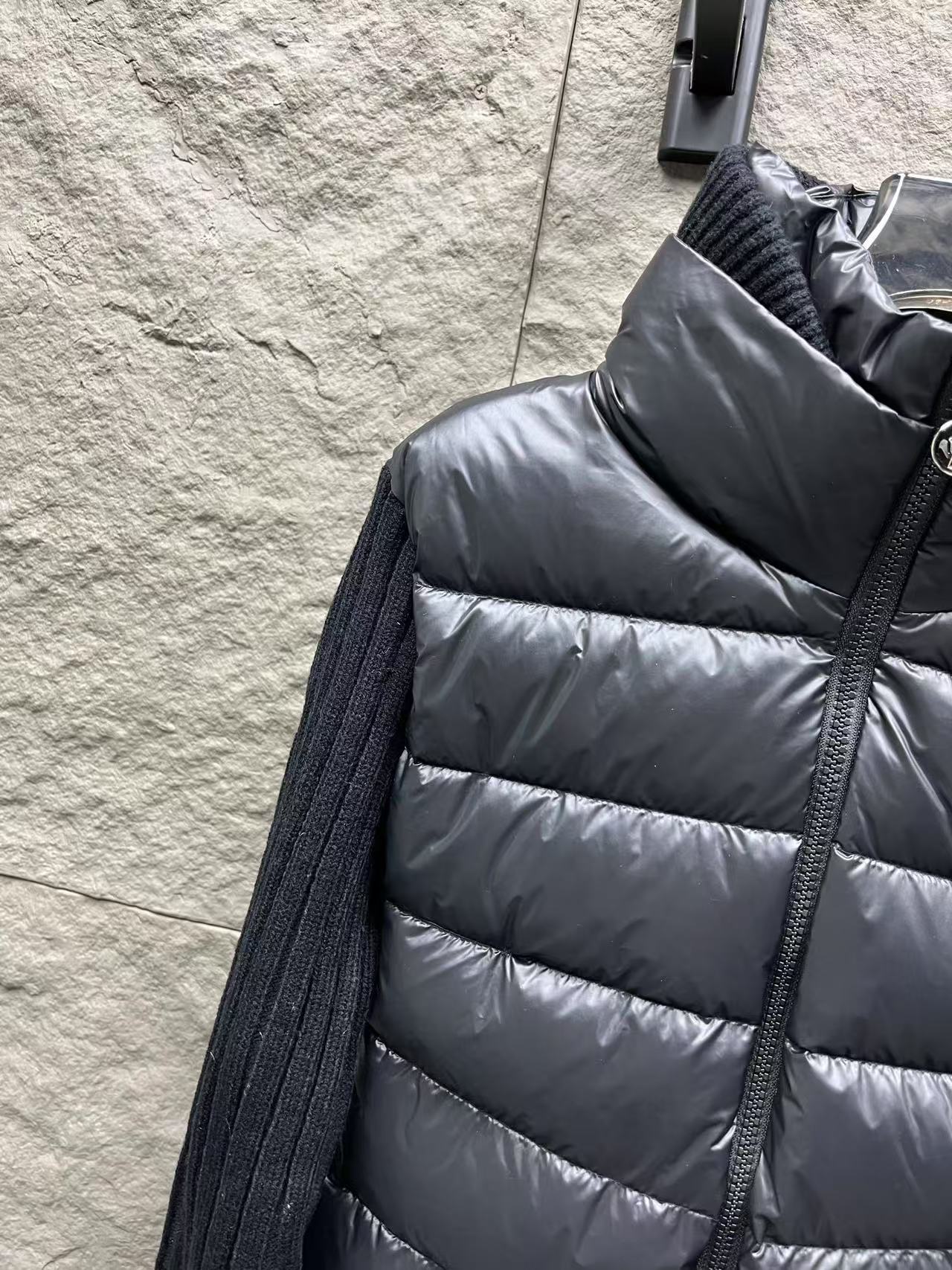 針織拼接:手臂和領邊的針織與外套主體互相呼應,讓整件外套看起來更有層次感,完全擺脫了傳統羽絨服的沉悶感。