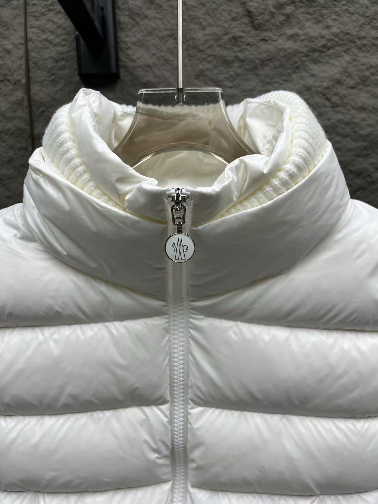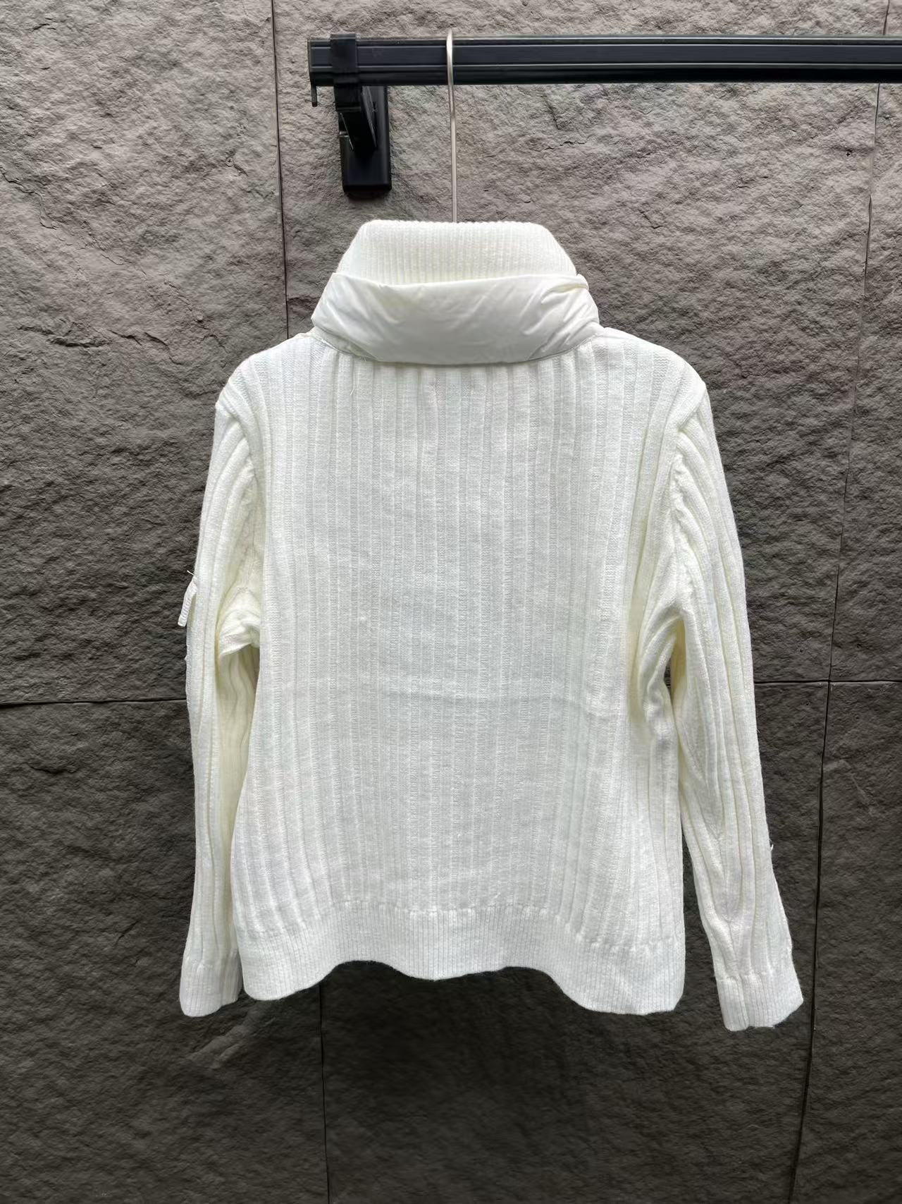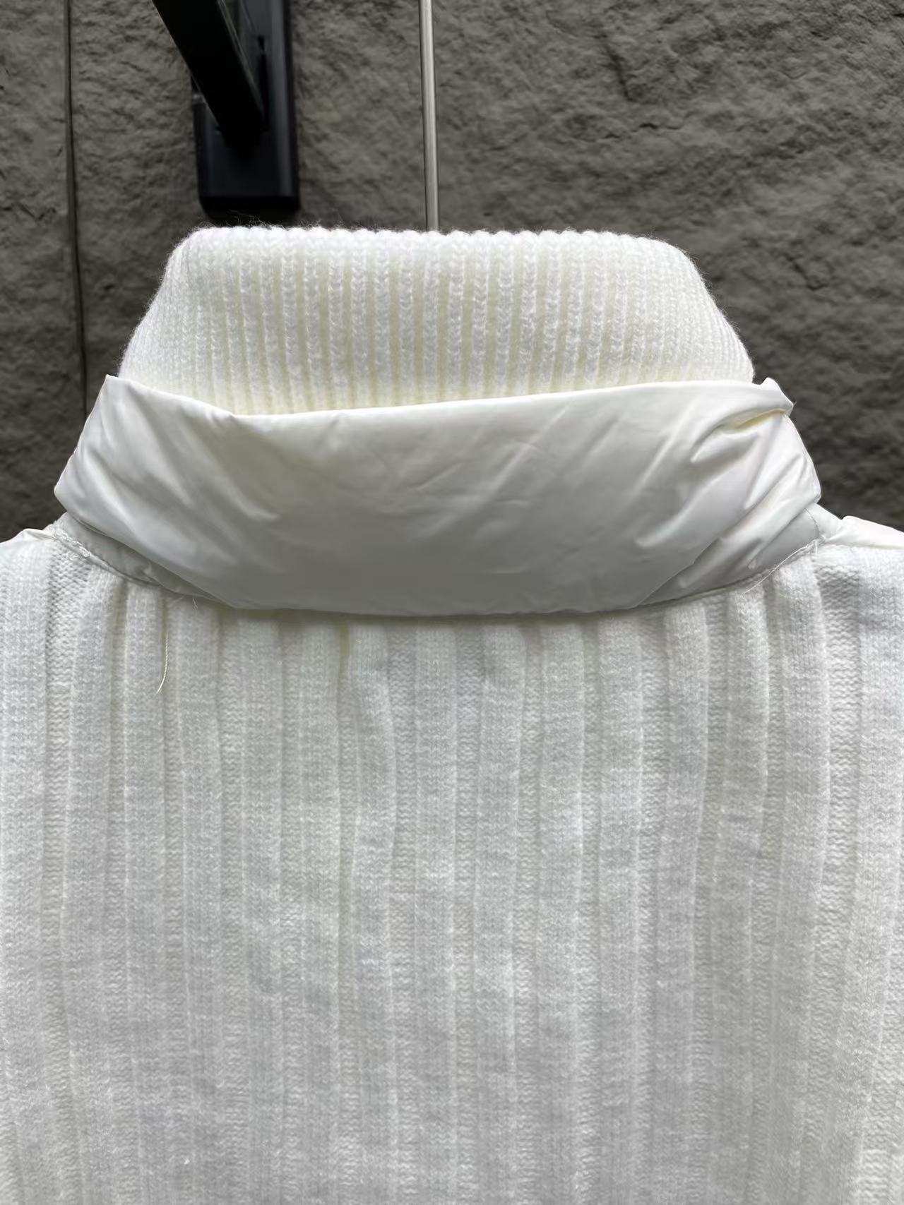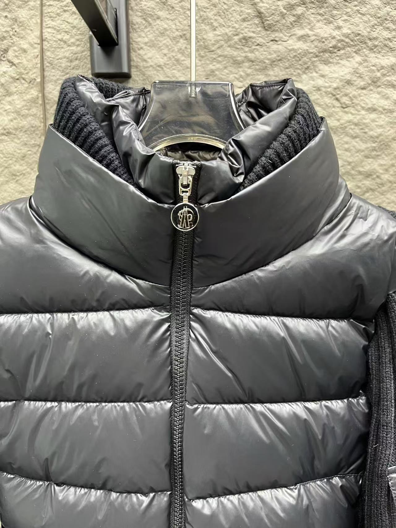 針織拼接:手臂和領邊的針織與外套主體互相呼應,讓整件外套看起來更有層次感,完全擺脫了傳統羽絨服的沉悶感。