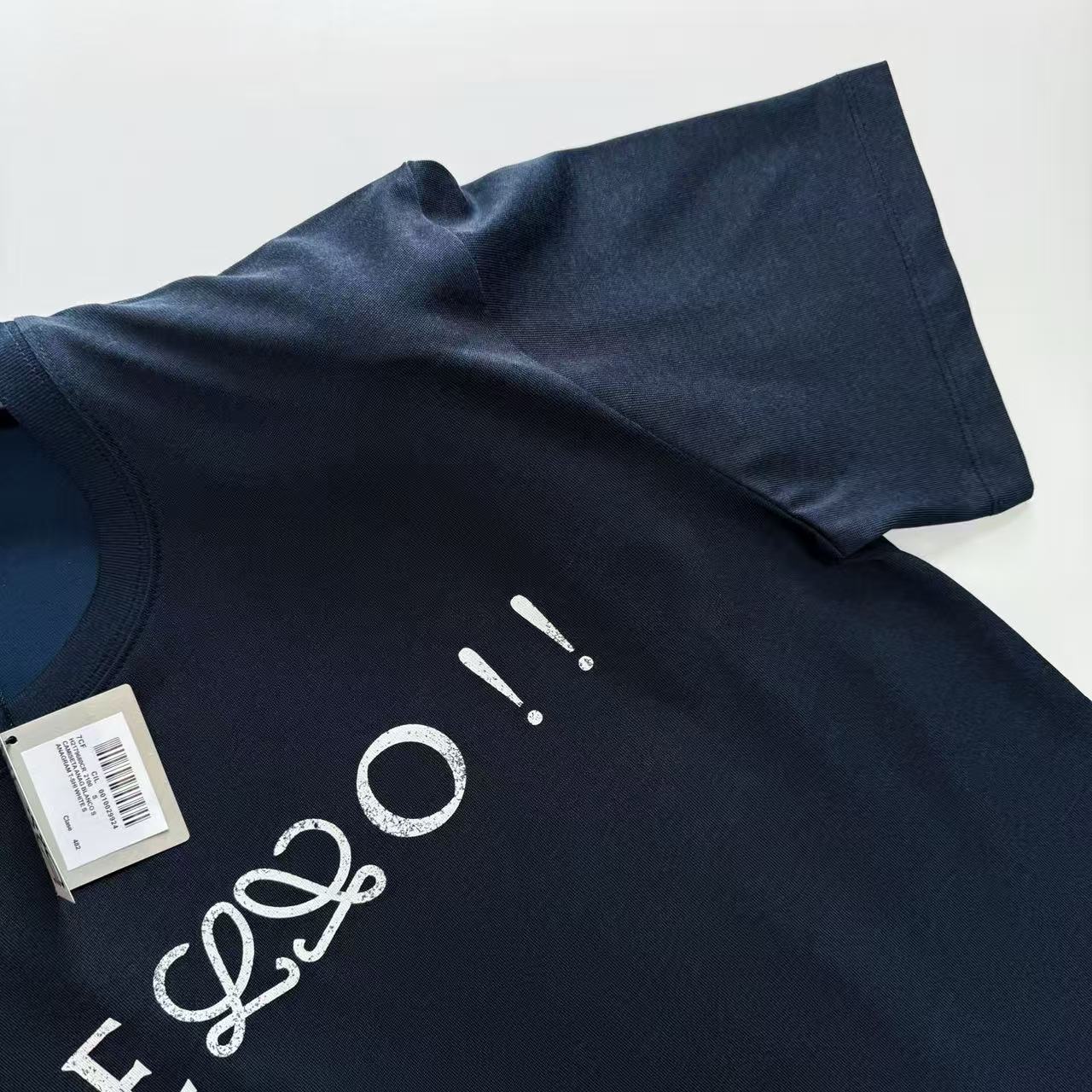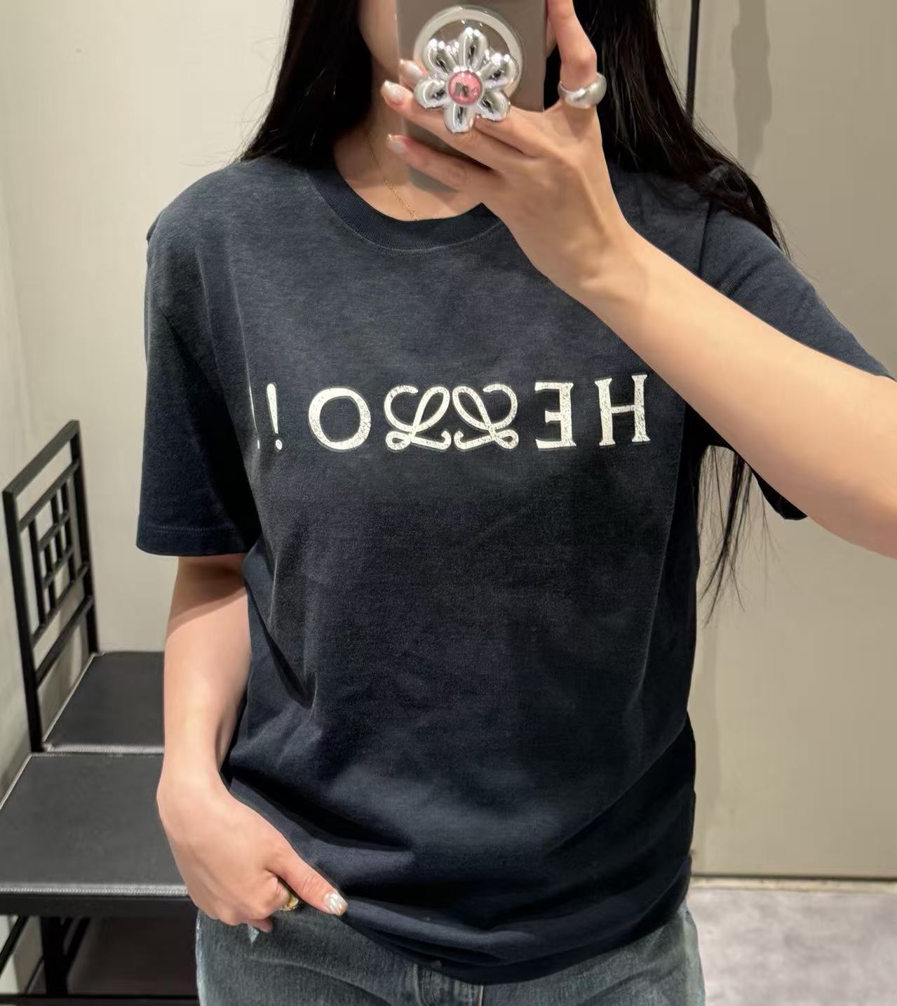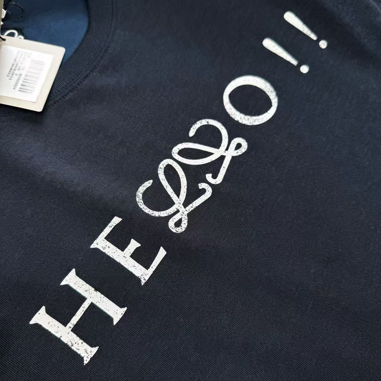 細節控絕對不能錯過這款單品的工藝處理。胸前的 "Hello" 結合 Anagram 圖騰,特別採用了帶有復古韻味的龜裂紋效果印花,營造出一種充滿時間痕跡的藝術美感。