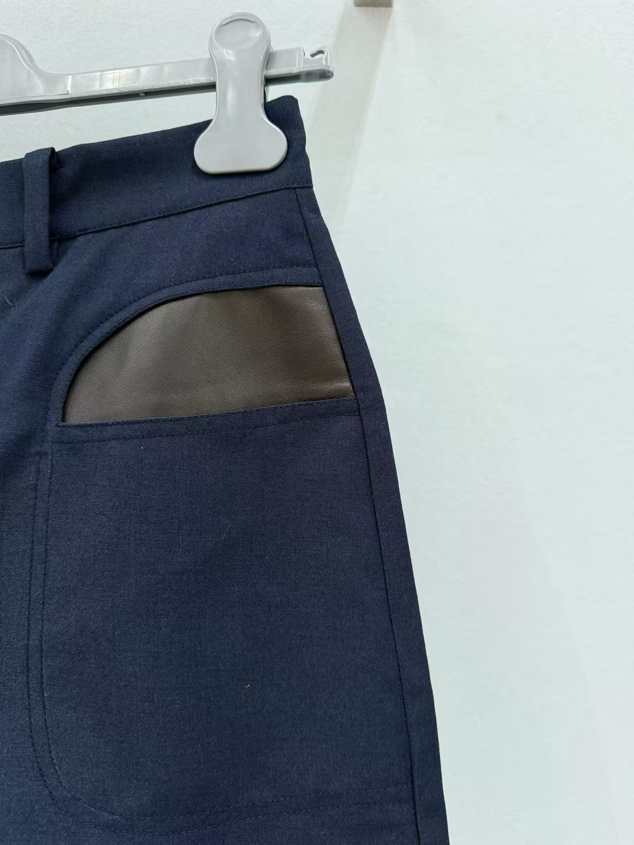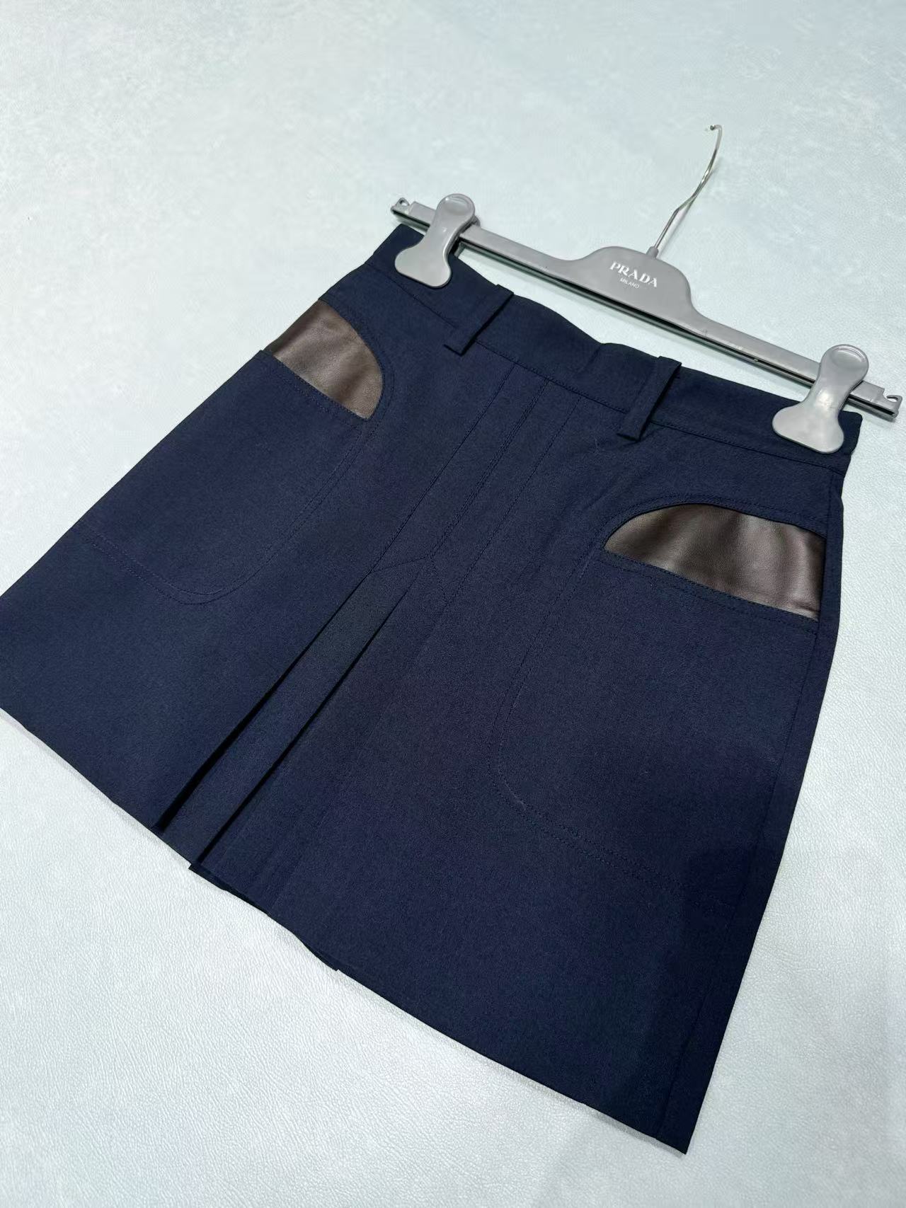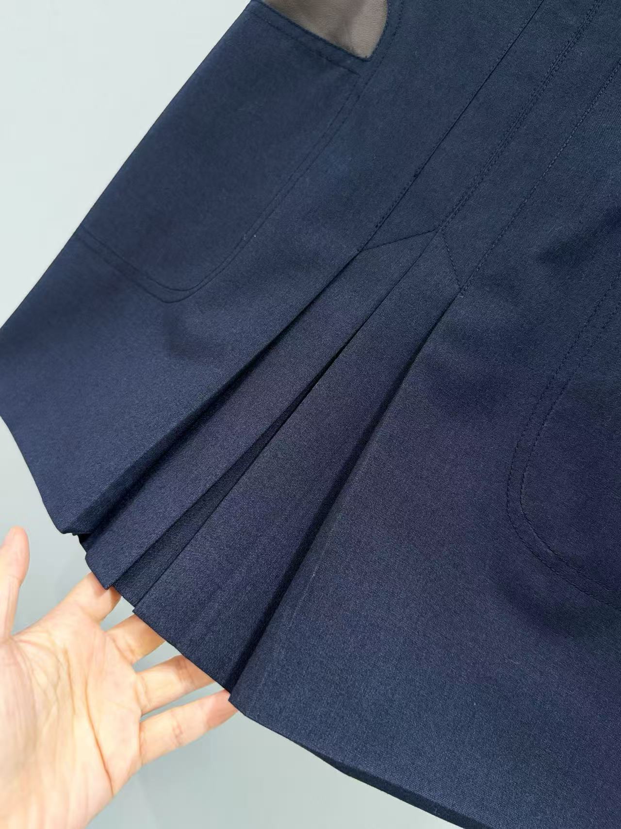 這款 A 字半裙以俐落剪裁勾勒出俏皮又有型的輪廓。兩側皮革拼接口袋設計巧妙地打破單調,增添一點酷颯感,簡約中又不失設計細節。