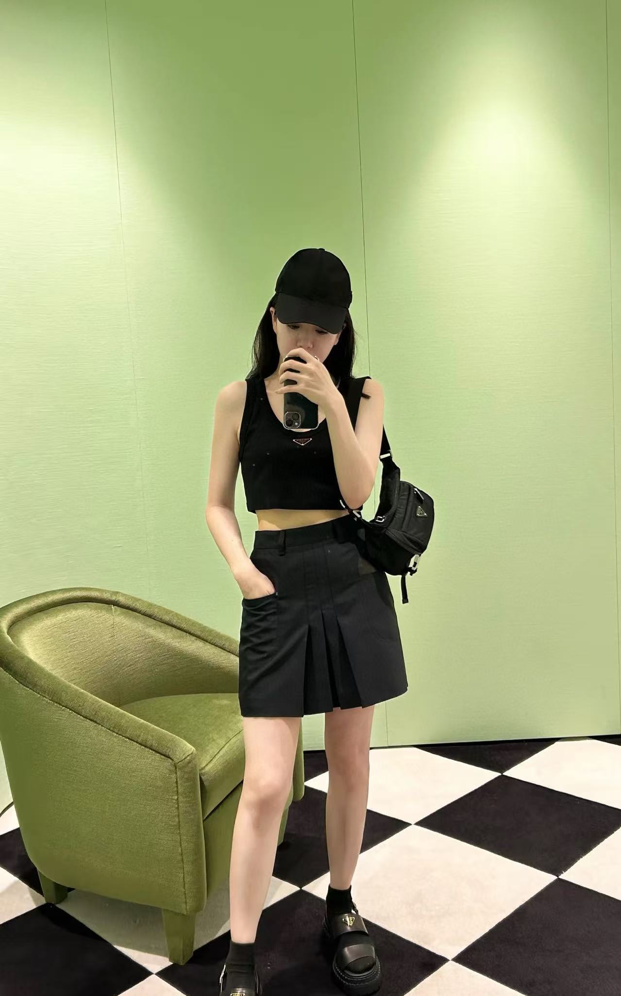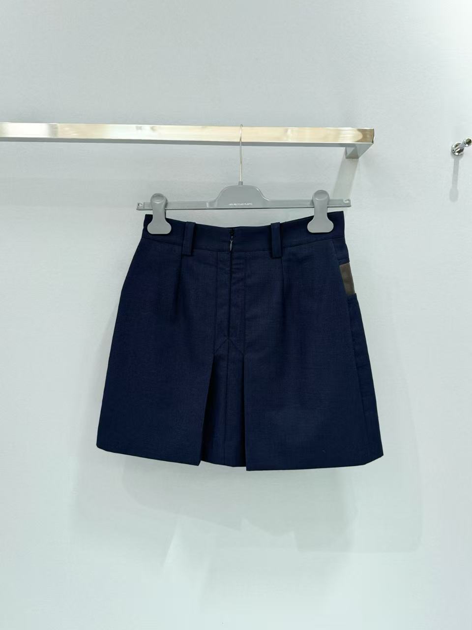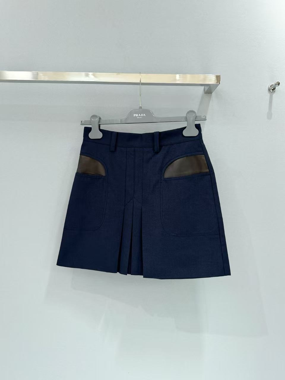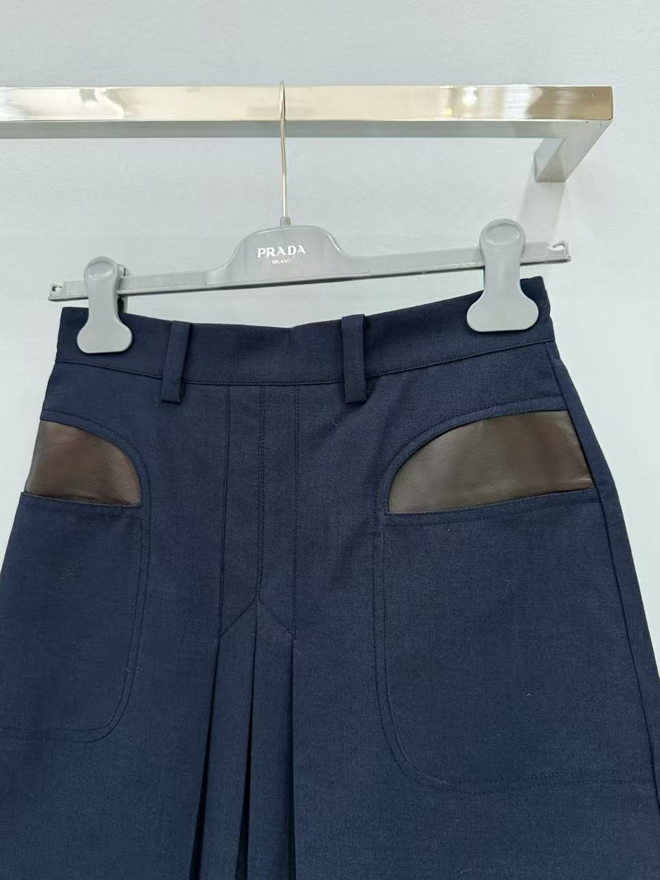 這款 A 字半裙以俐落剪裁勾勒出俏皮又有型的輪廓。兩側皮革拼接口袋設計巧妙地打破單調,增添一點酷颯感,簡約中又不失設計細節。