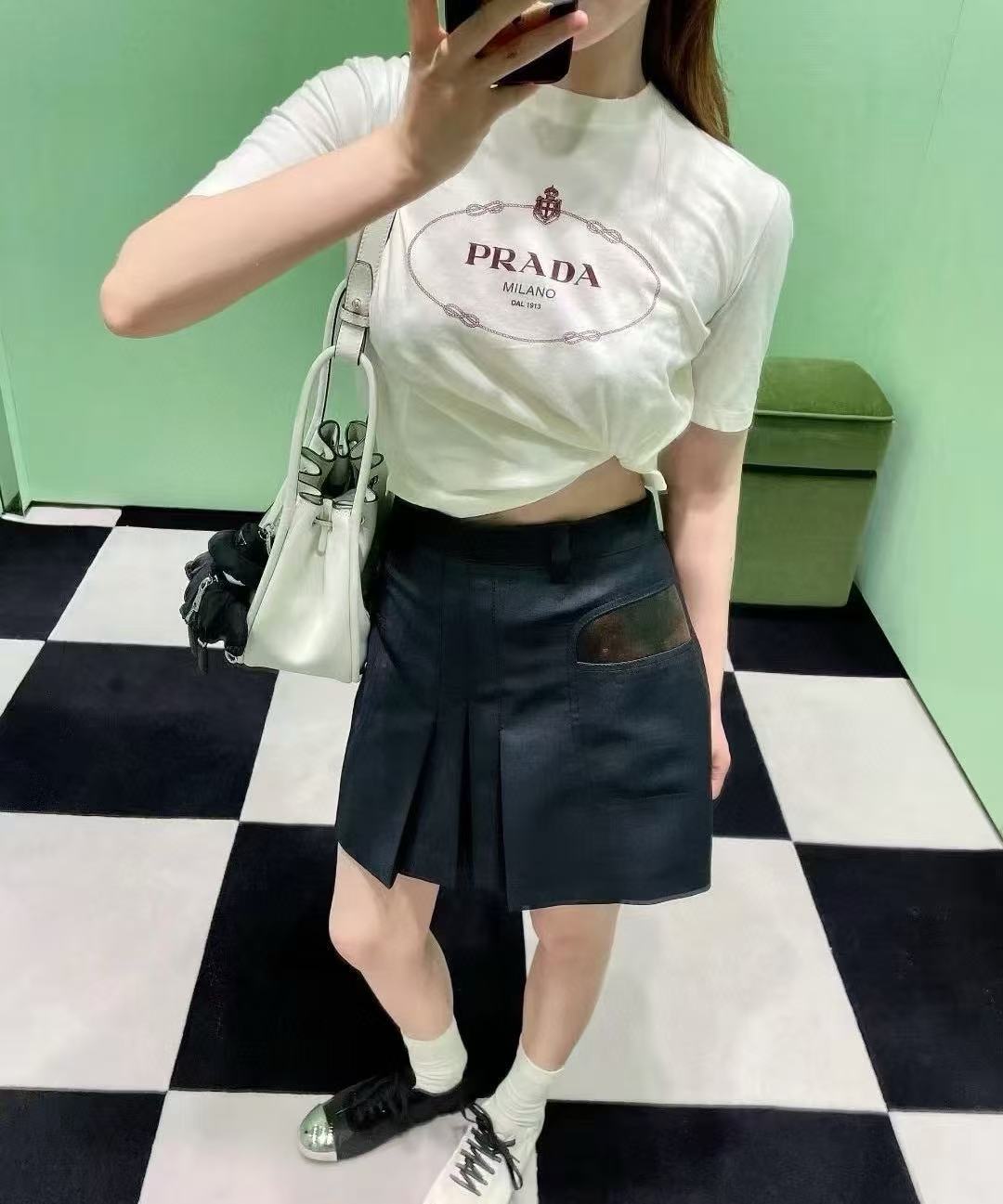 搭配 印花 T 恤+球鞋:街頭感滿滿,俏皮又減齡。