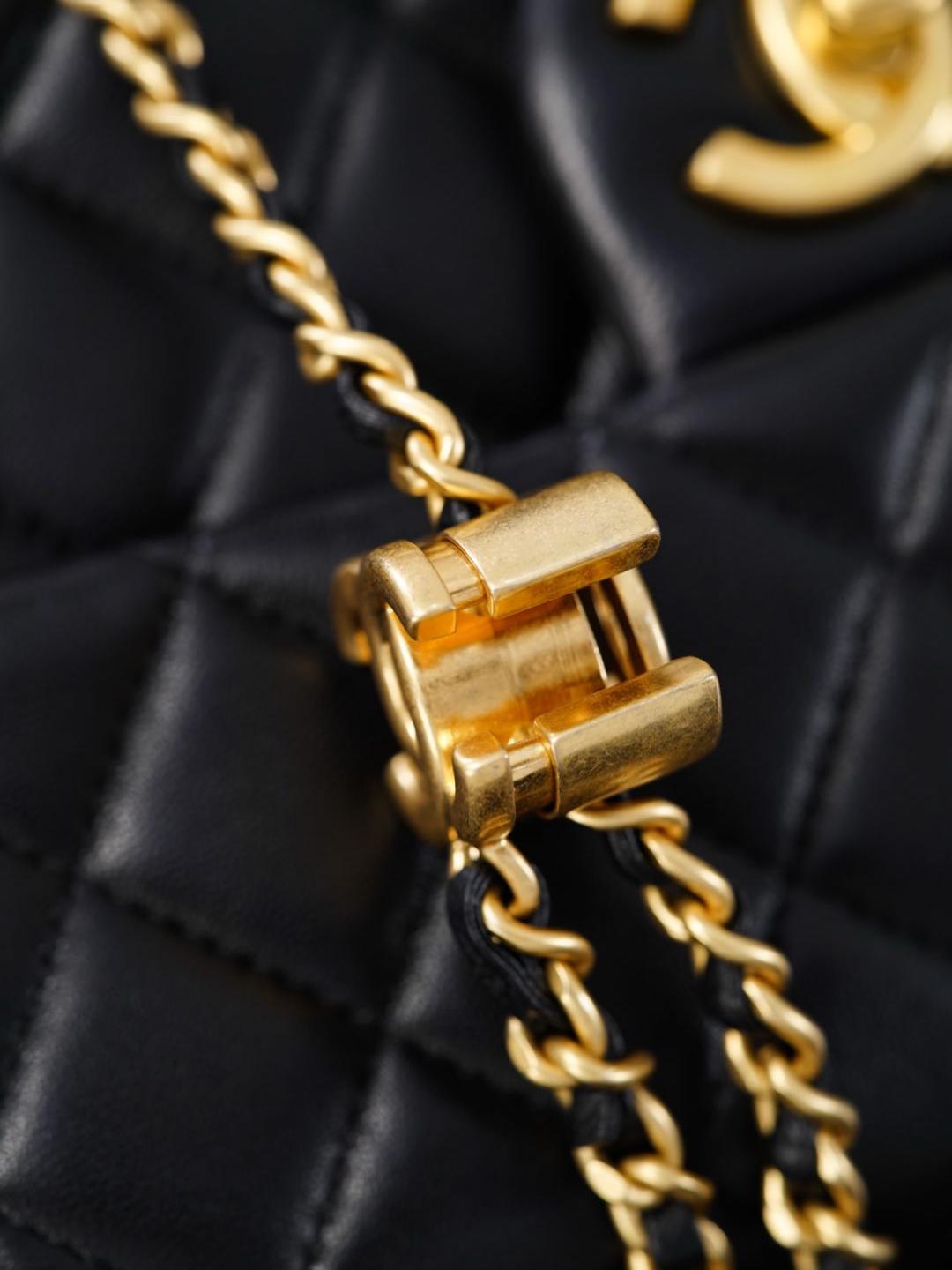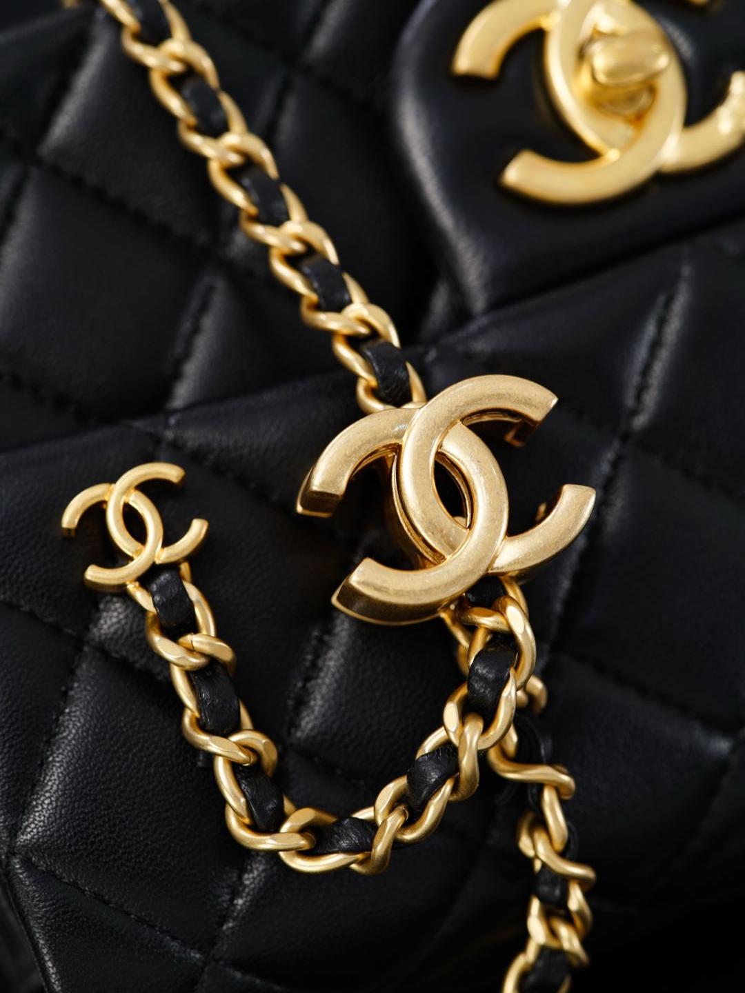 黑色小羊皮的細膩質感,配上復古金屬鍊條,低調中透出高級感,無論是日常出門還是正式場合,都能完美駕馭。這顆包絕對是你衣櫃裡「一眼就知道該帶它出門」的那一顆!