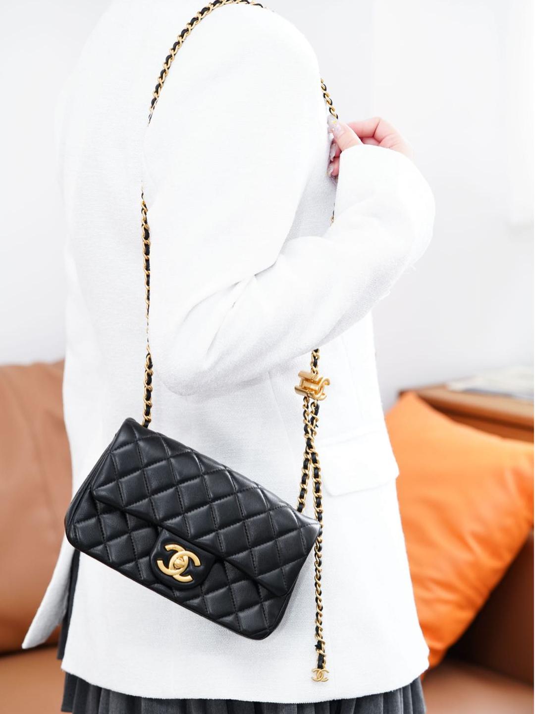 2025早秋新品 C家 25b雙C調節扣鍊條包CF大𝐦𝐢𝐧𝐢 (20cm)
