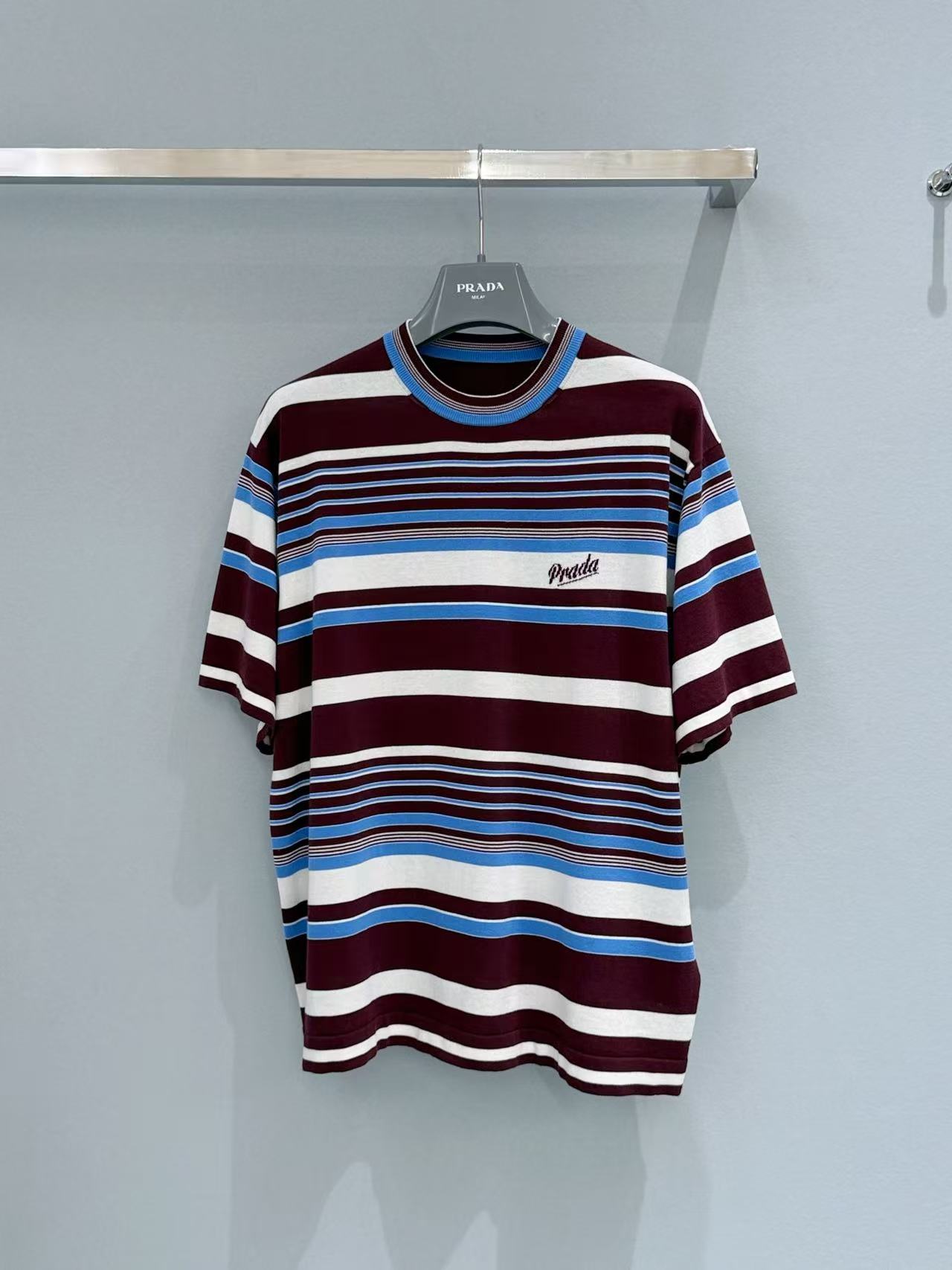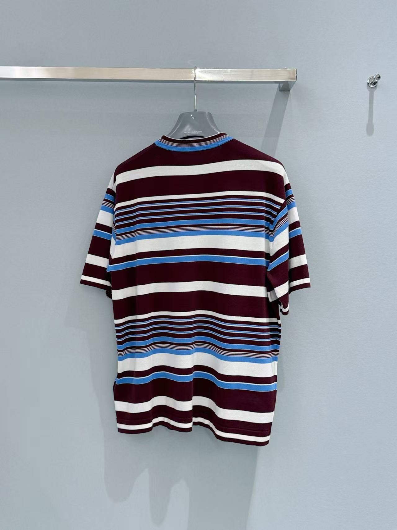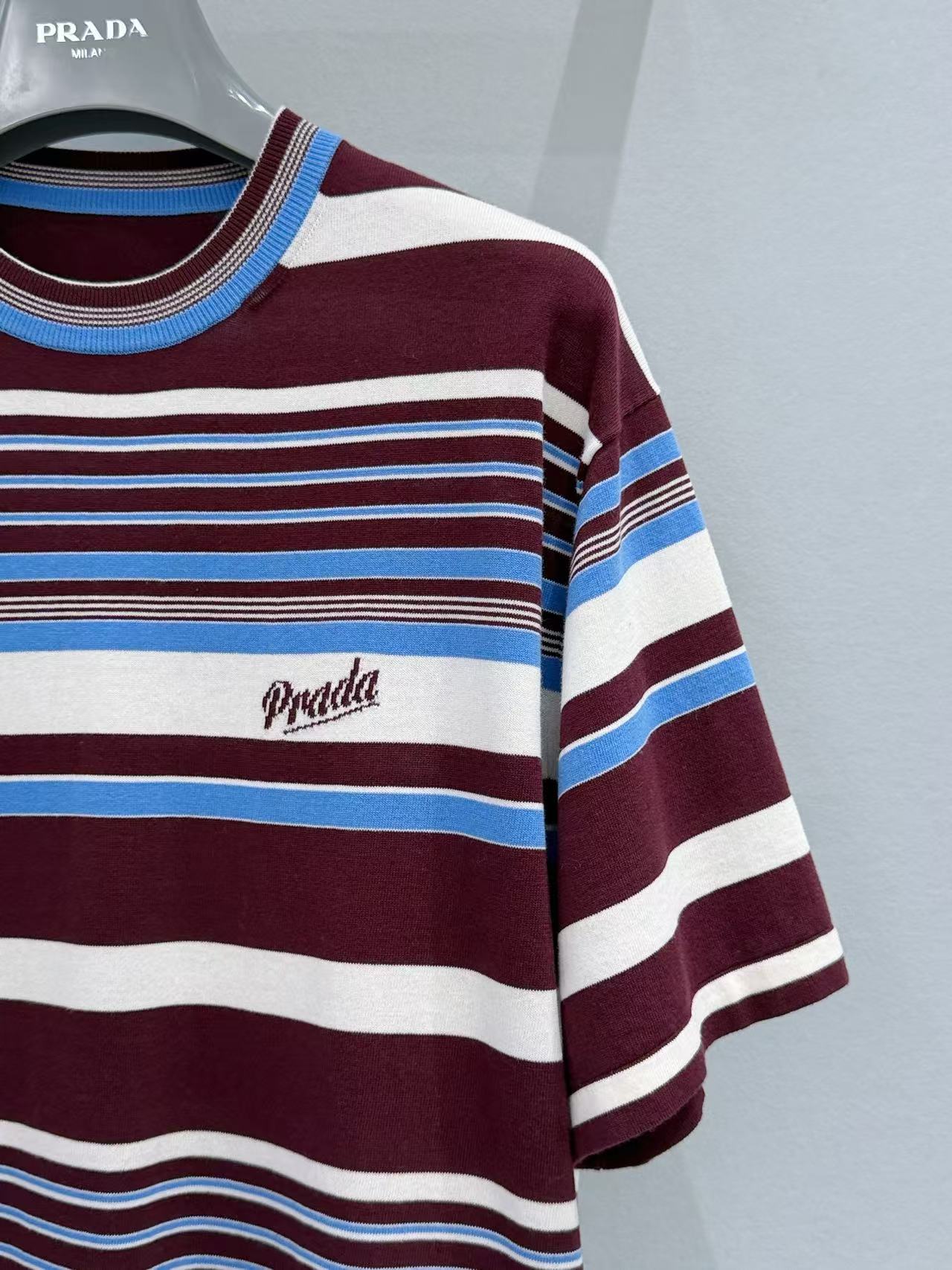 2026早春  PD家 酒紅撞色條紋短袖