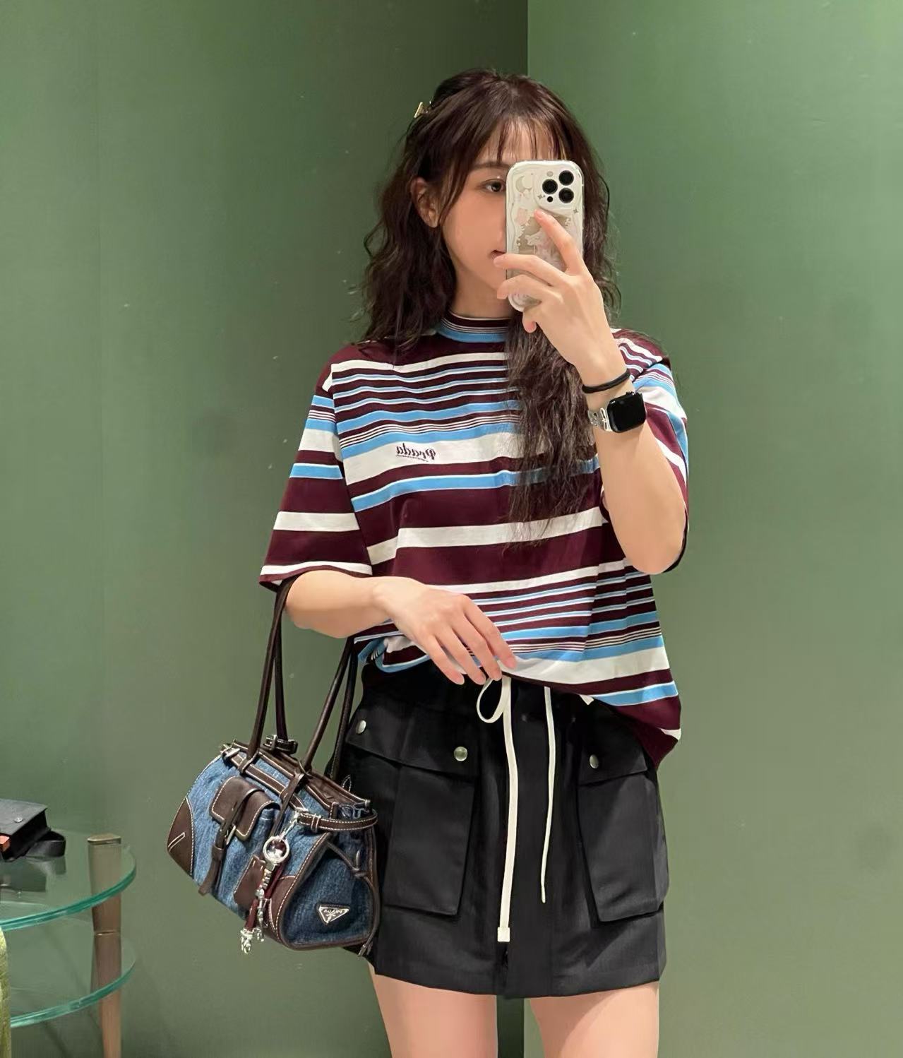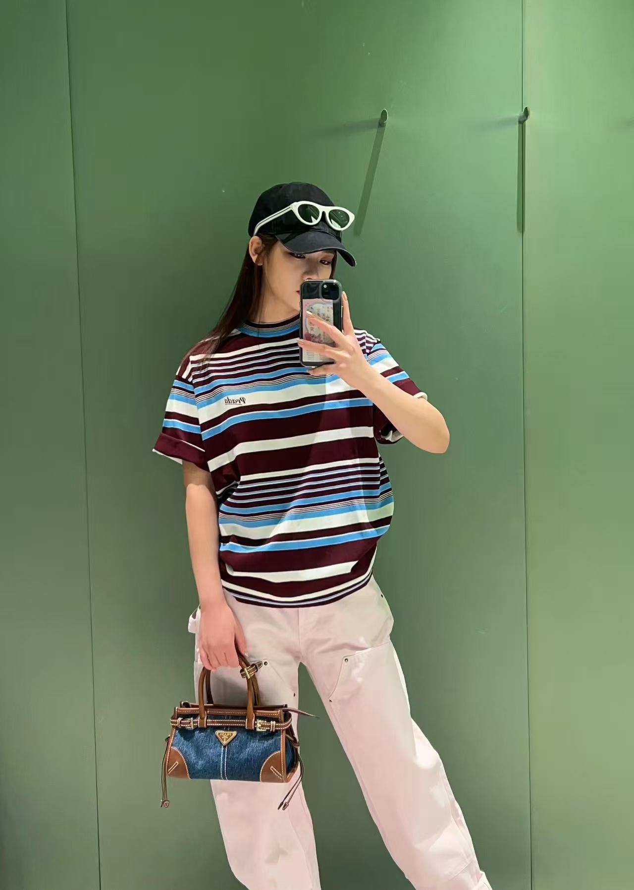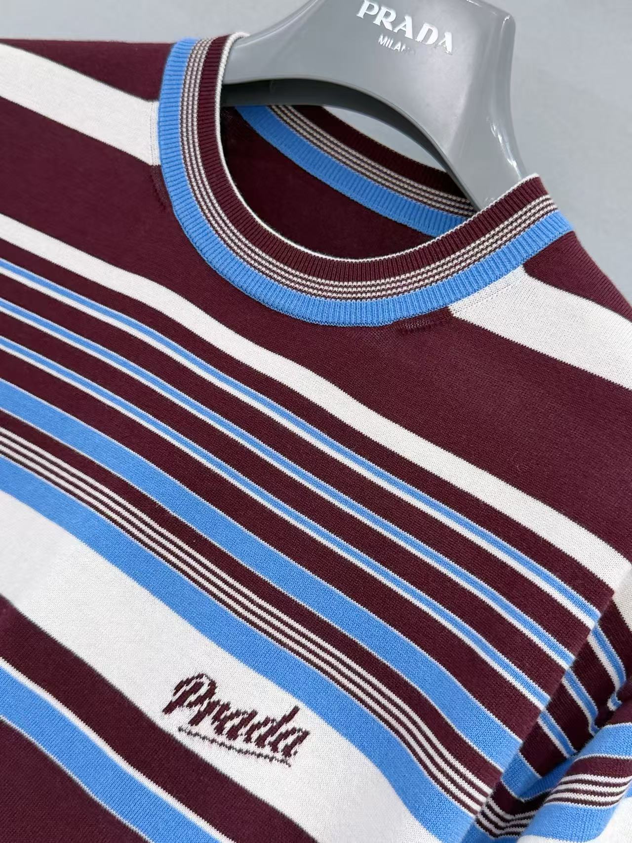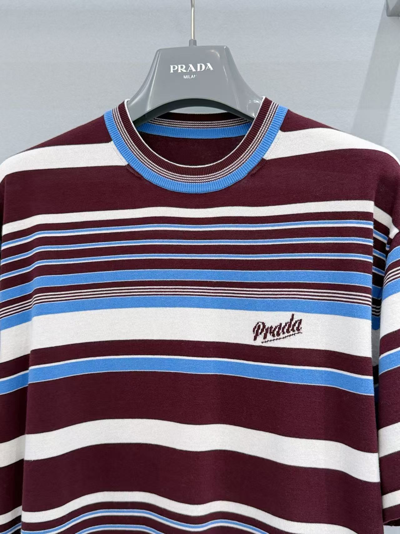 2026早春  PD家 酒紅撞色條紋短袖