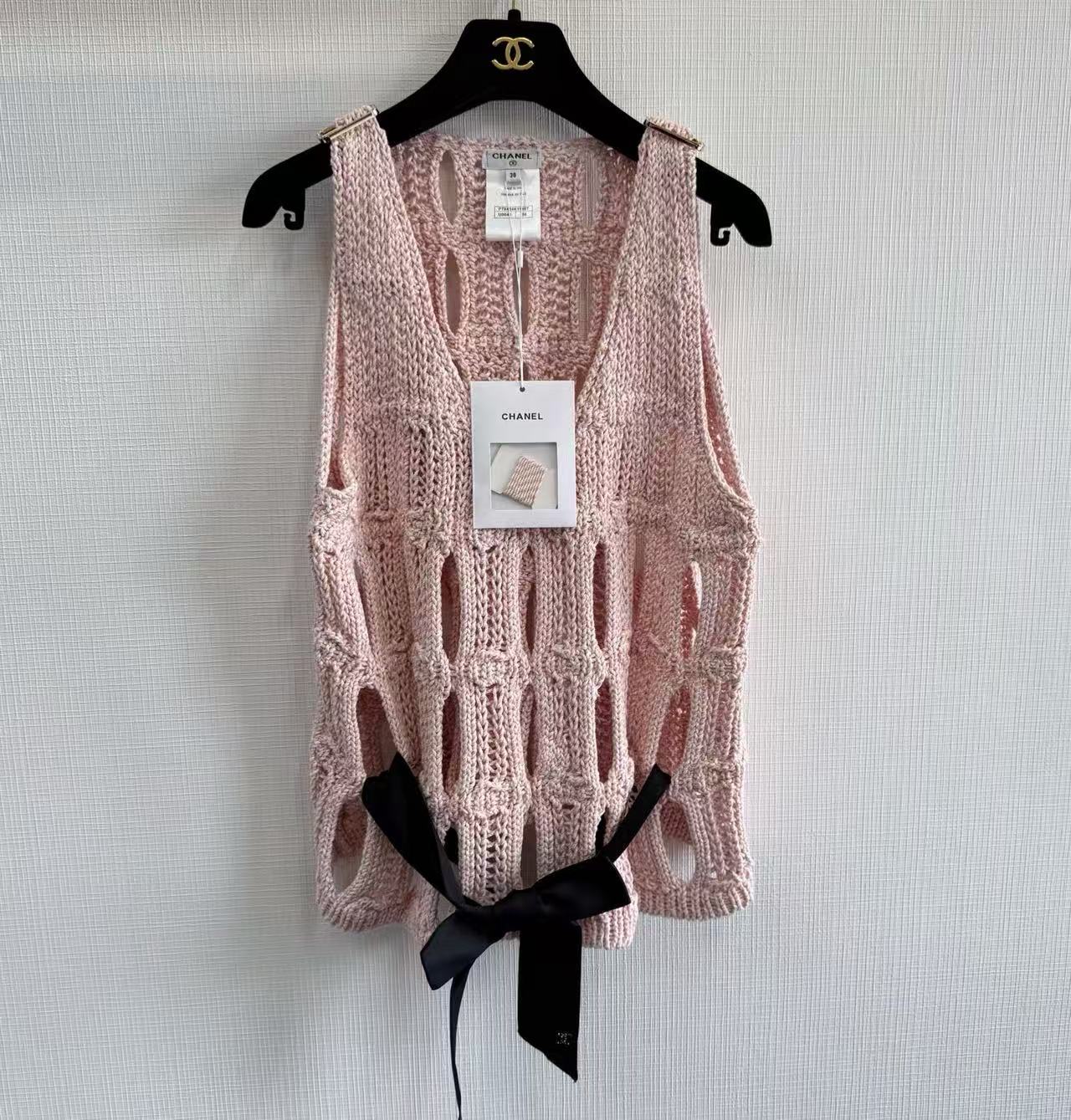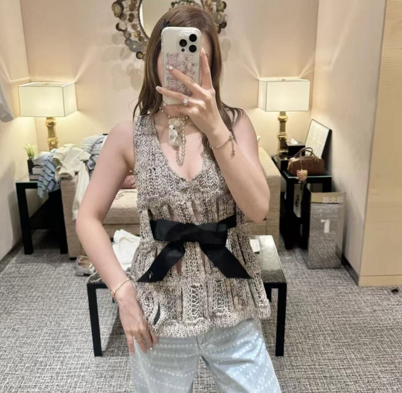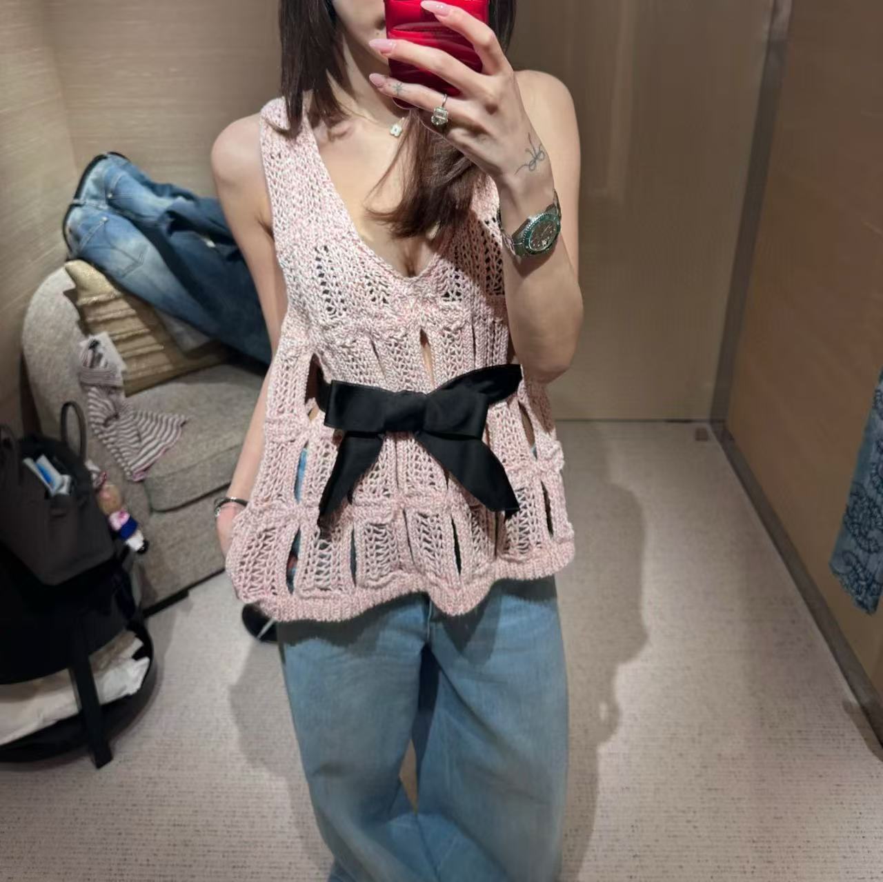 2025夏季新品 C家 25s鏤空編織蝴蝶結背心