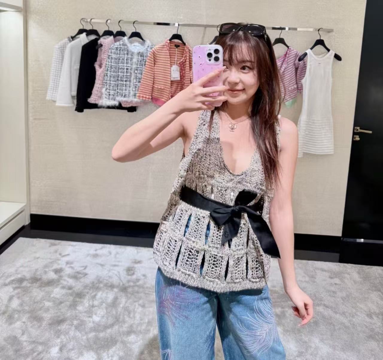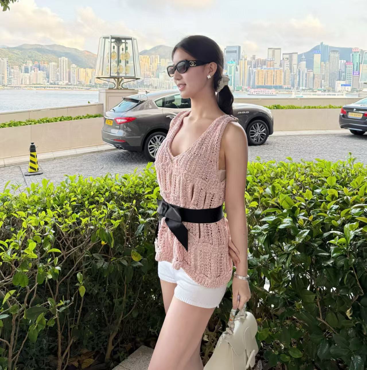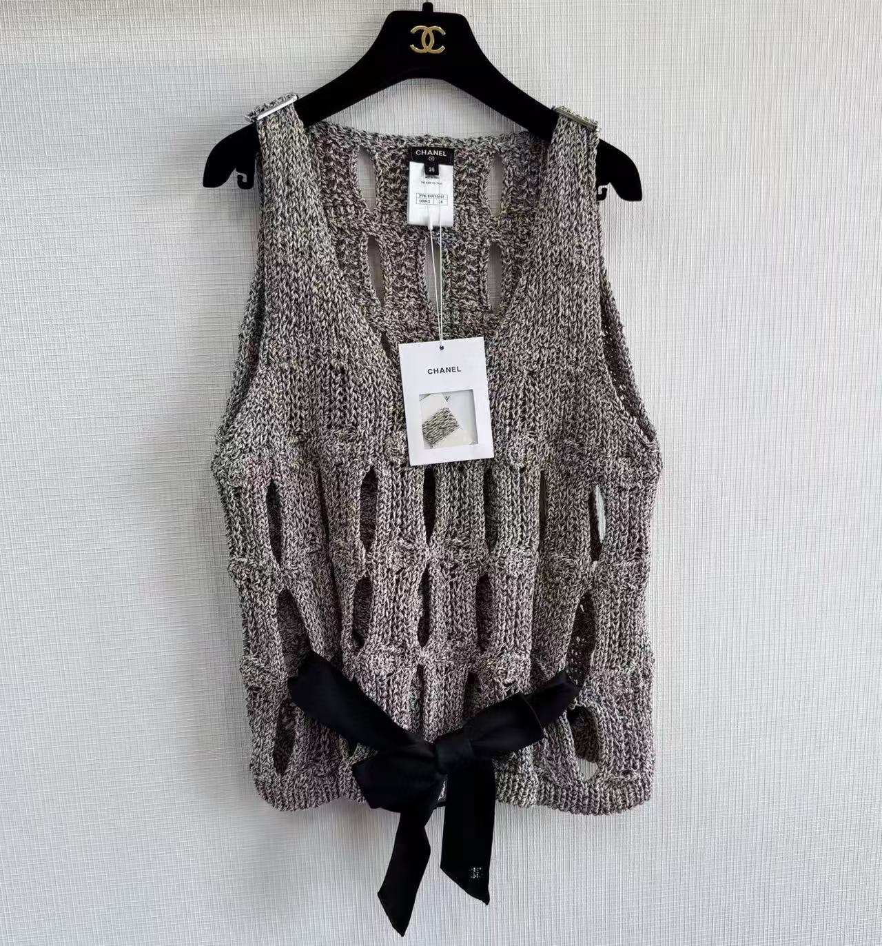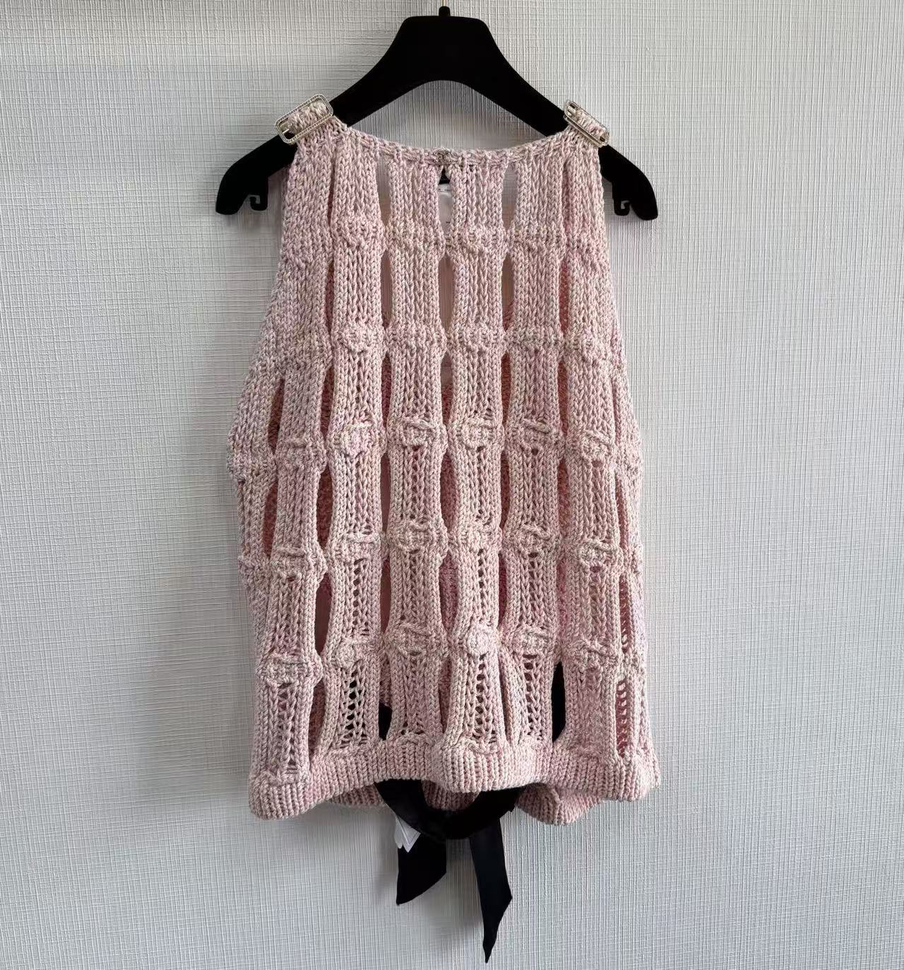 2025夏季新品 C家 25s鏤空編織蝴蝶結背心