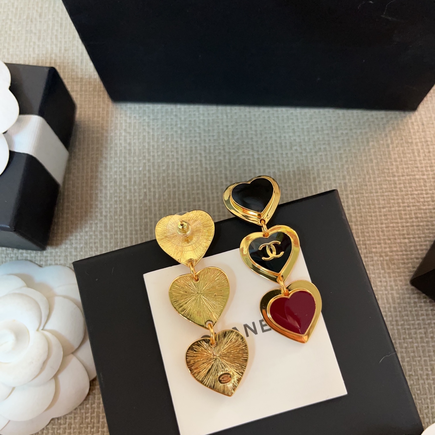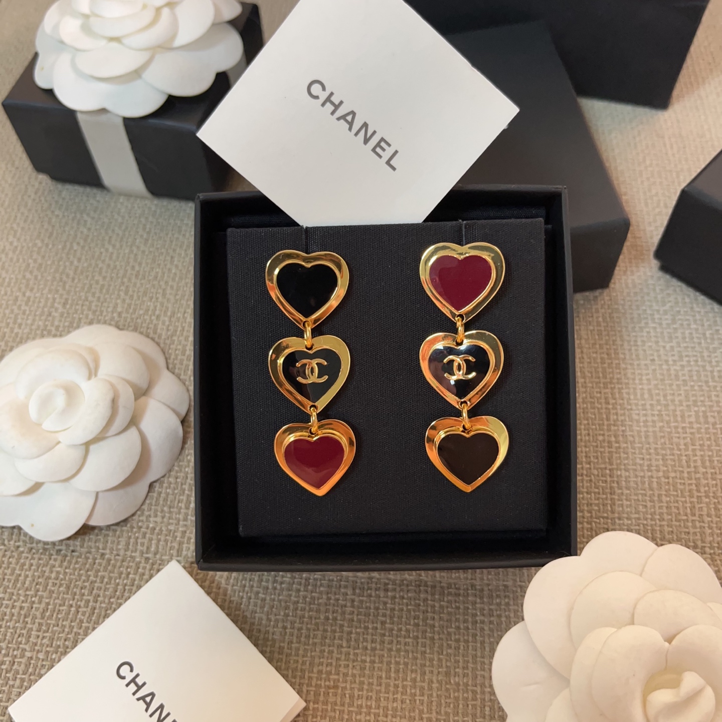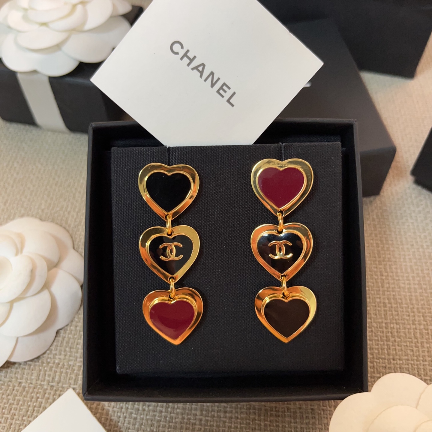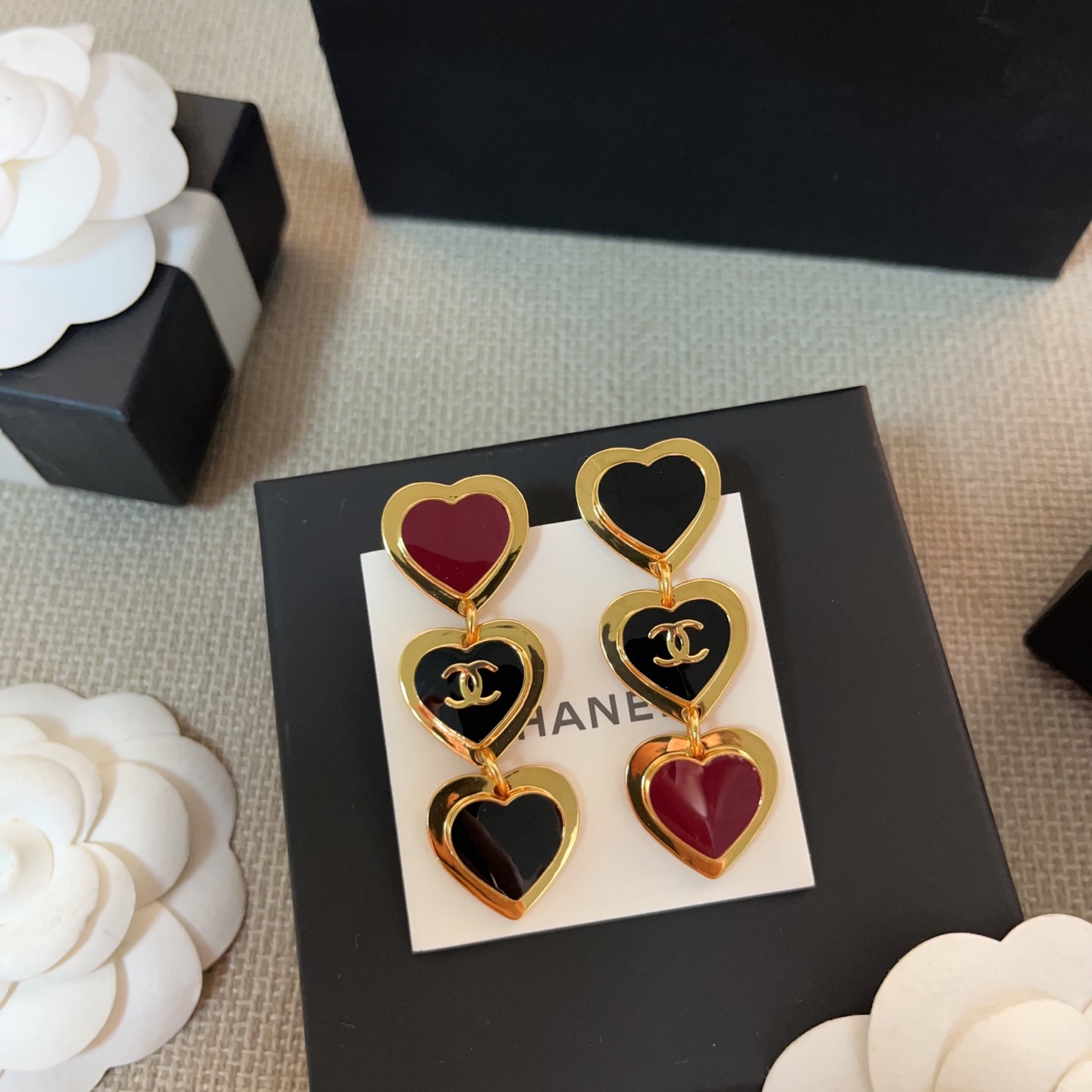 2026春夏新品 C家 紅黑撞色三愛心耳環