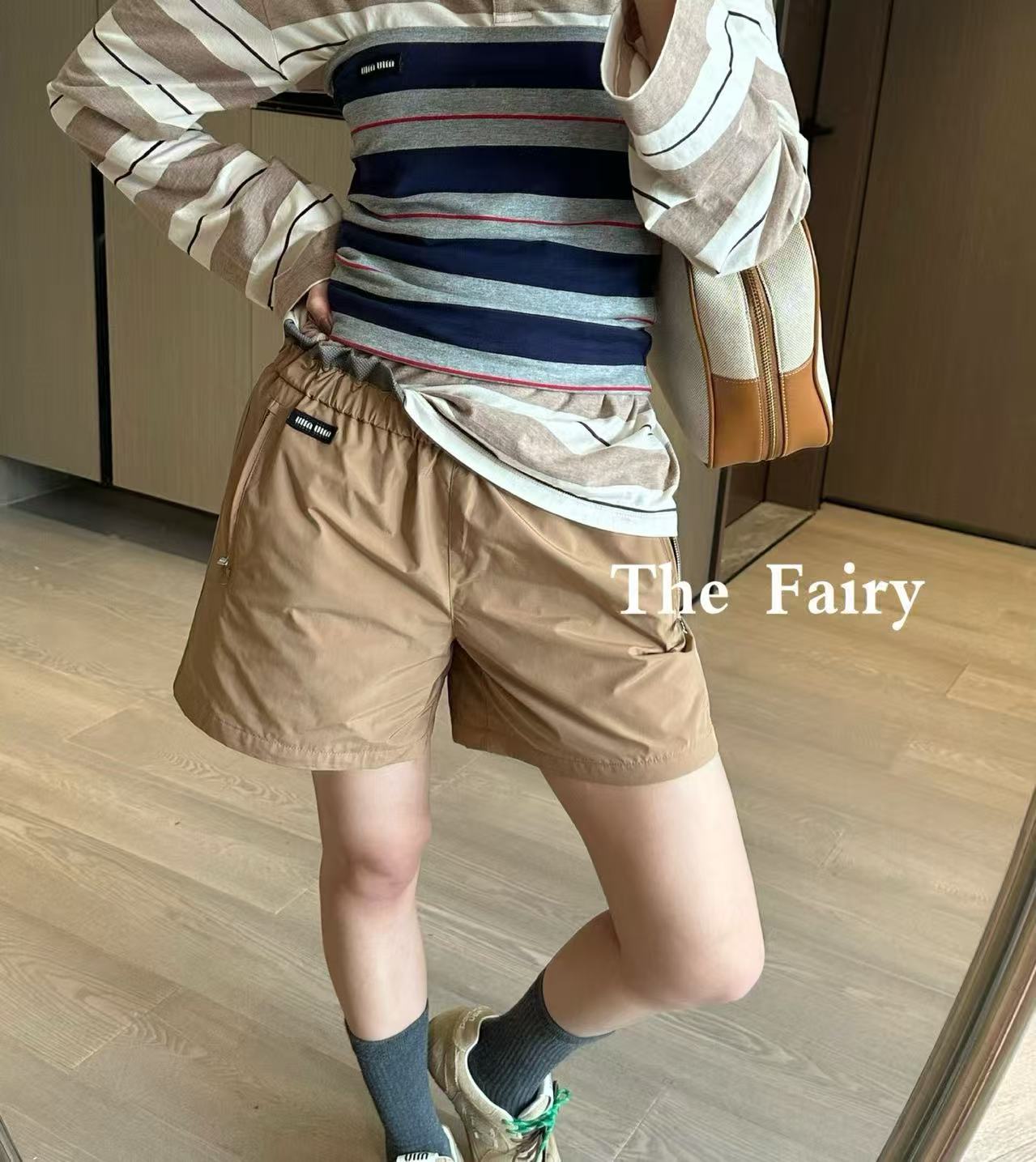 經典標誌:褲身飾有品牌標誌的刺繡徽標,低調又充滿辨識度,為整件短褲增添了一份精緻感。