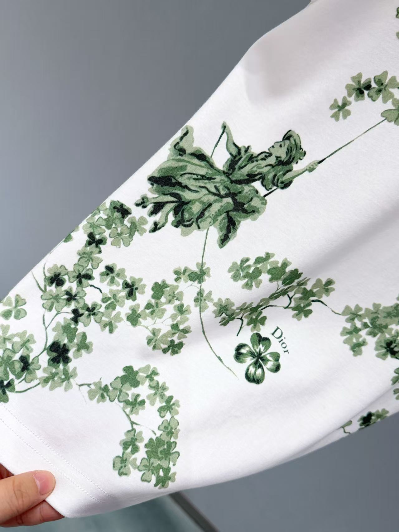 這件把四葉草+花卉用超美的水彩暈染工藝呈現出來,墨綠的枝葉配上嫩綠的花簇,整體色調非常清新又有層次。
