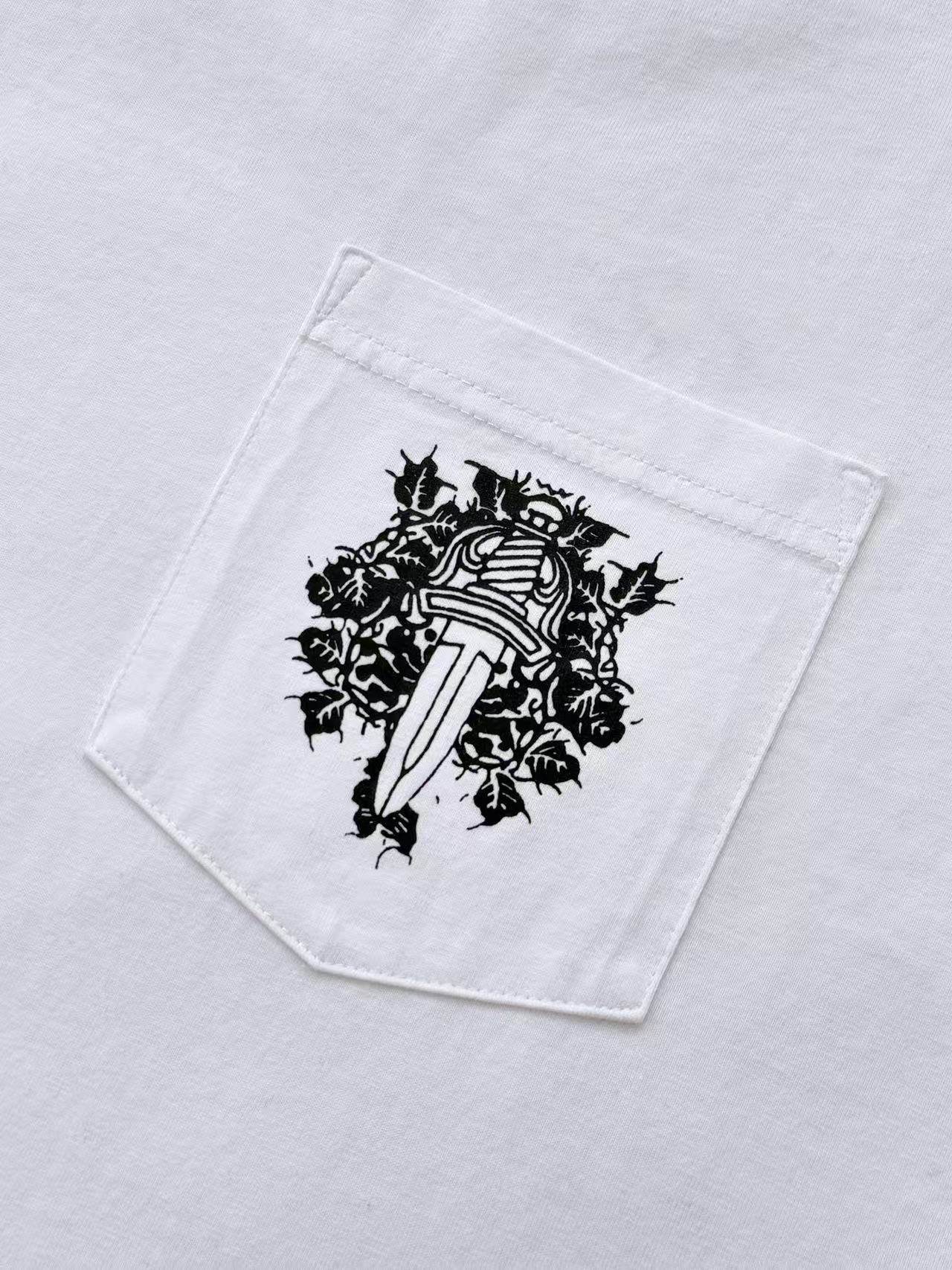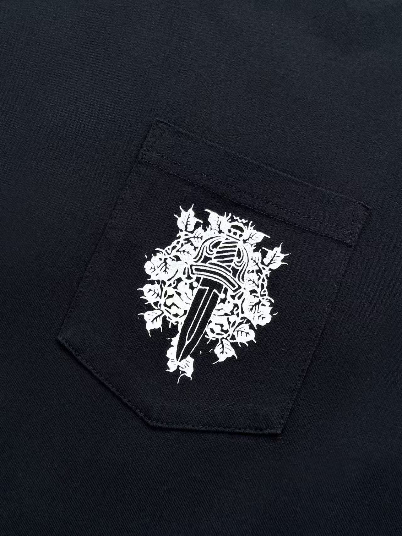印花部分則應用了高端的高溫油墨技術,確保了圖騰中色彩對比的深度與耐穿度。無論是搭配重磅丹寧褲展現洗鍊感,或是作為層次穿搭中的視覺核心,這款藤蔓寶劍短 T 都能以其強烈的設計語彙,定義您的美式潮流風格。