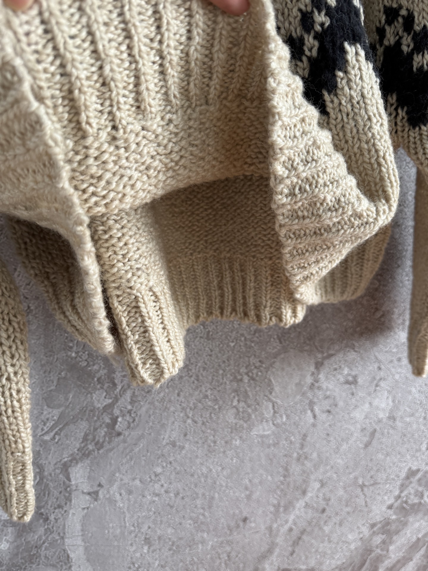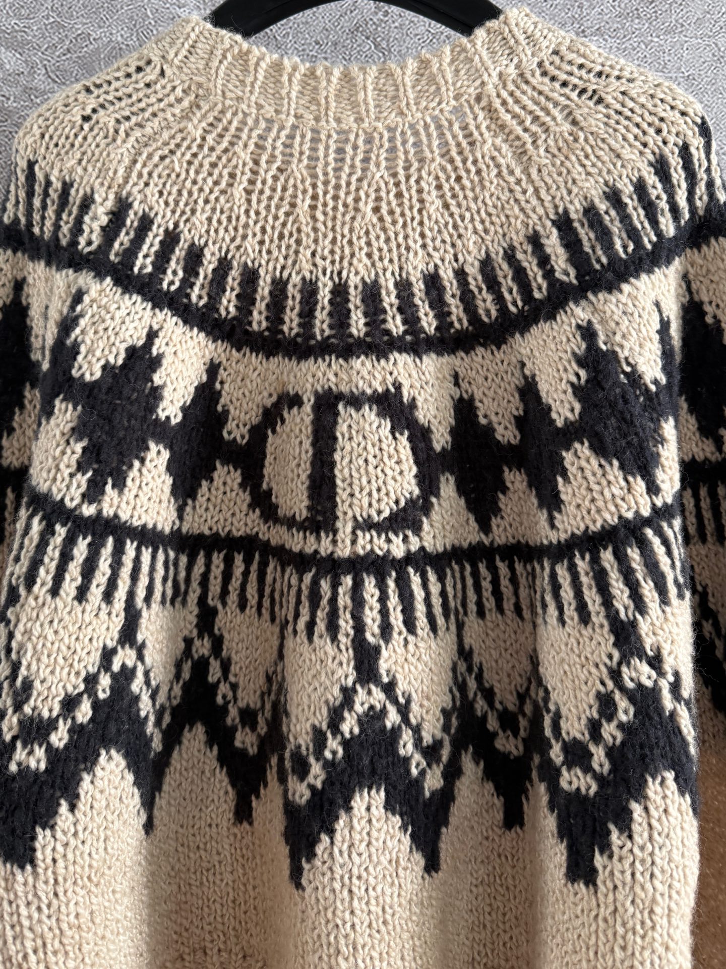 胸前與袖口點綴經典的費爾島圖案,濃濃秋冬復古味瞬間到位。