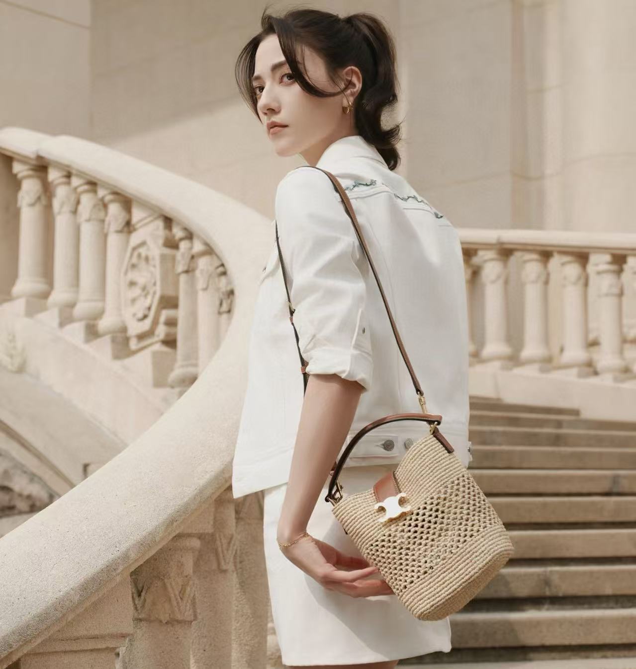 夏季造型必備的自然系單品——LOUISE 小號草編水桶包,來自CE最新「發財桶」設計,結合手工編織與經典金屬元素,展現低調奢華感。