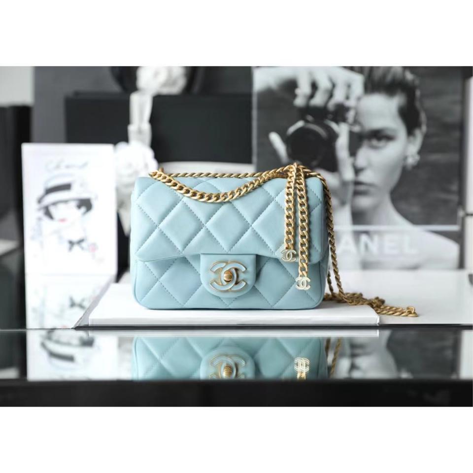 2022春夏新款 琺瑯扣Mini雙C吊墜包 新款琺瑯扣方胖子 春夏爆款