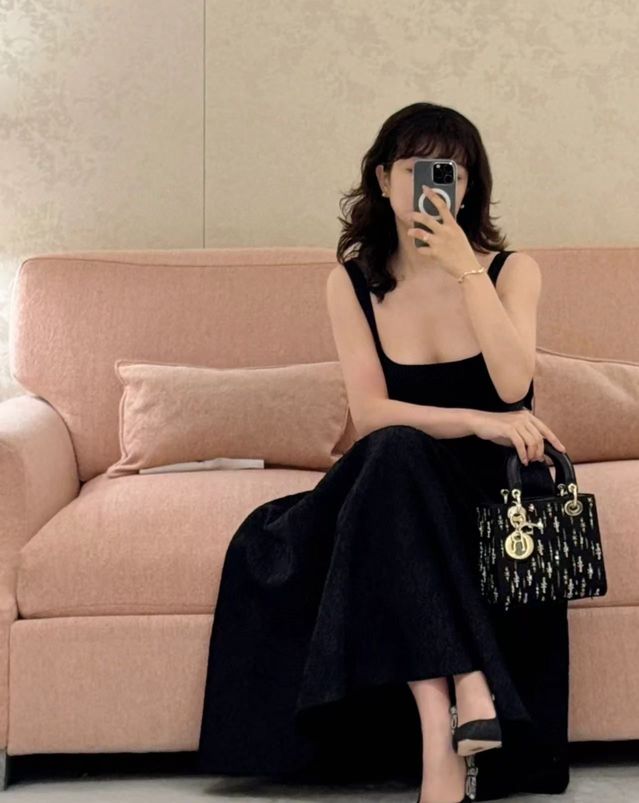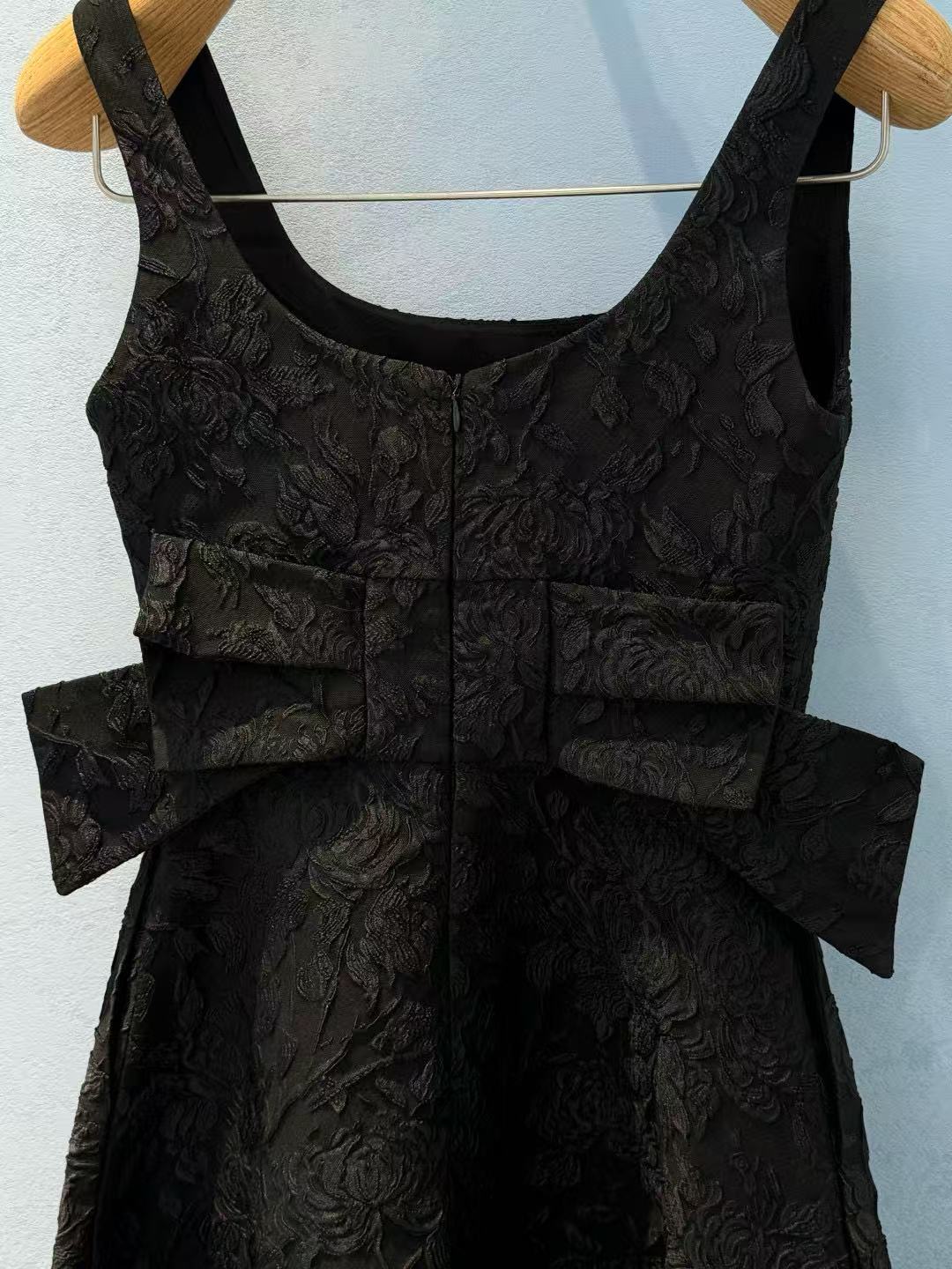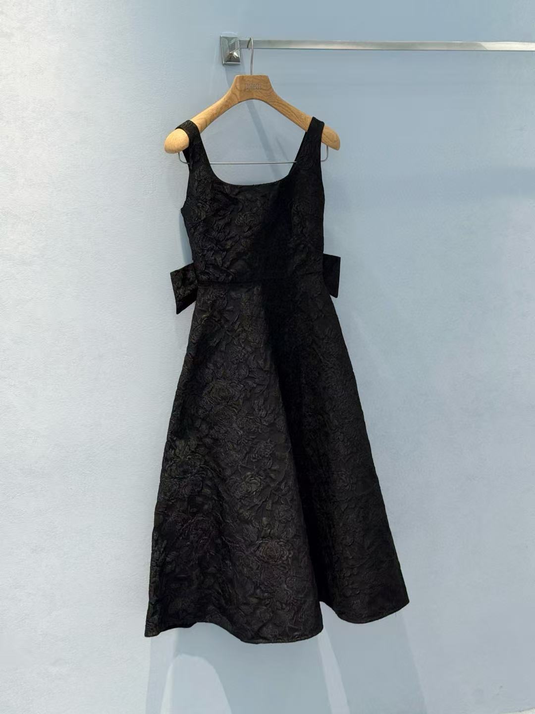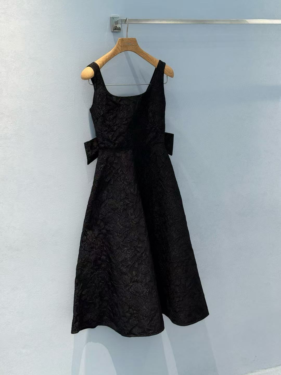 釋赫本式的優雅與高級感,後腰以立體蝴蝶結造型點綴,結合收腰剪裁與大 A 字裙擺,既修飾身形比例,又散發迷人的法式浪漫氣質。