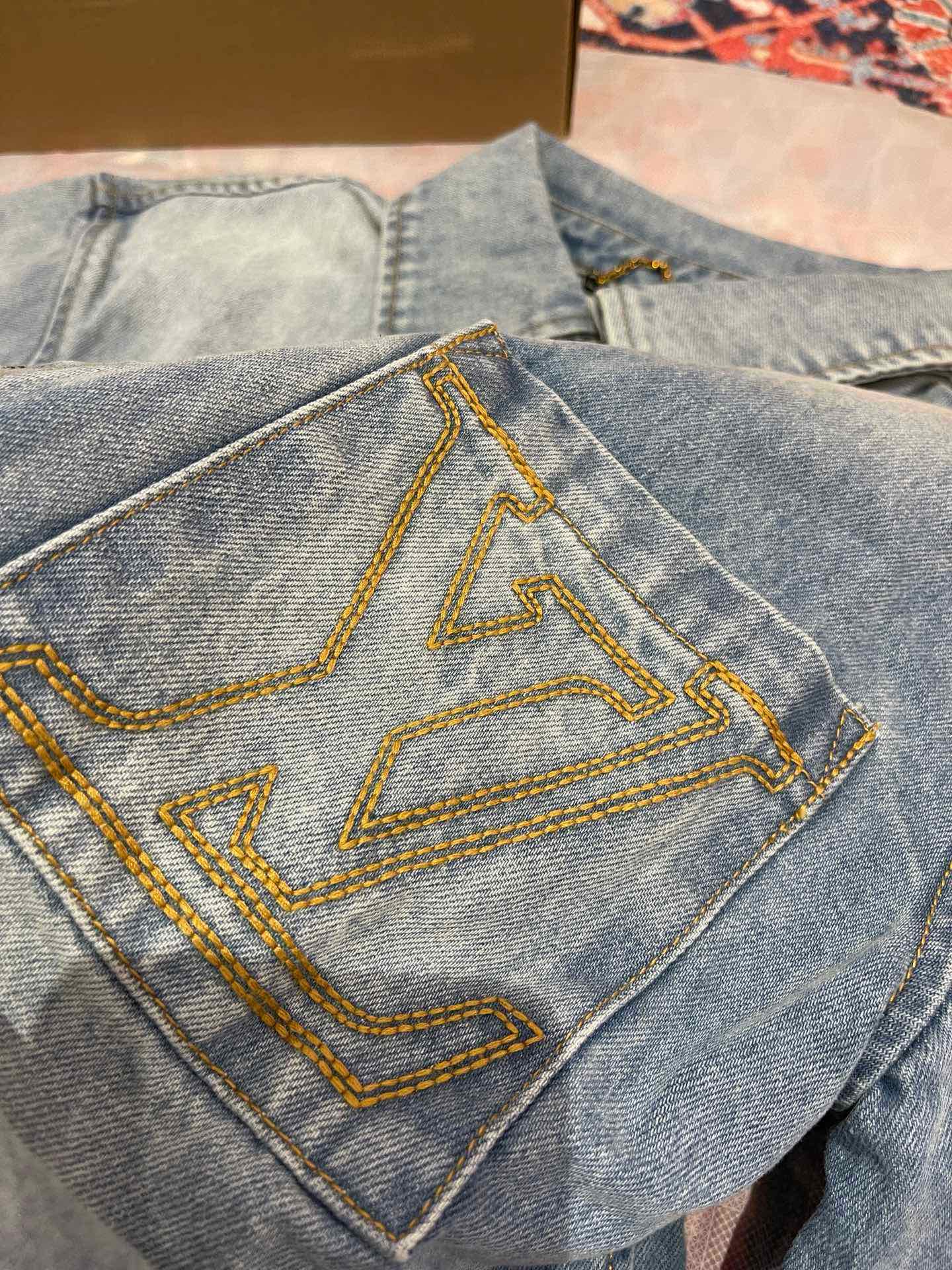 這件牛仔短袖經過多重洗水工藝,整體色澤呈現出自然泛白的懷舊感,層次分明且富有視覺衝擊力。