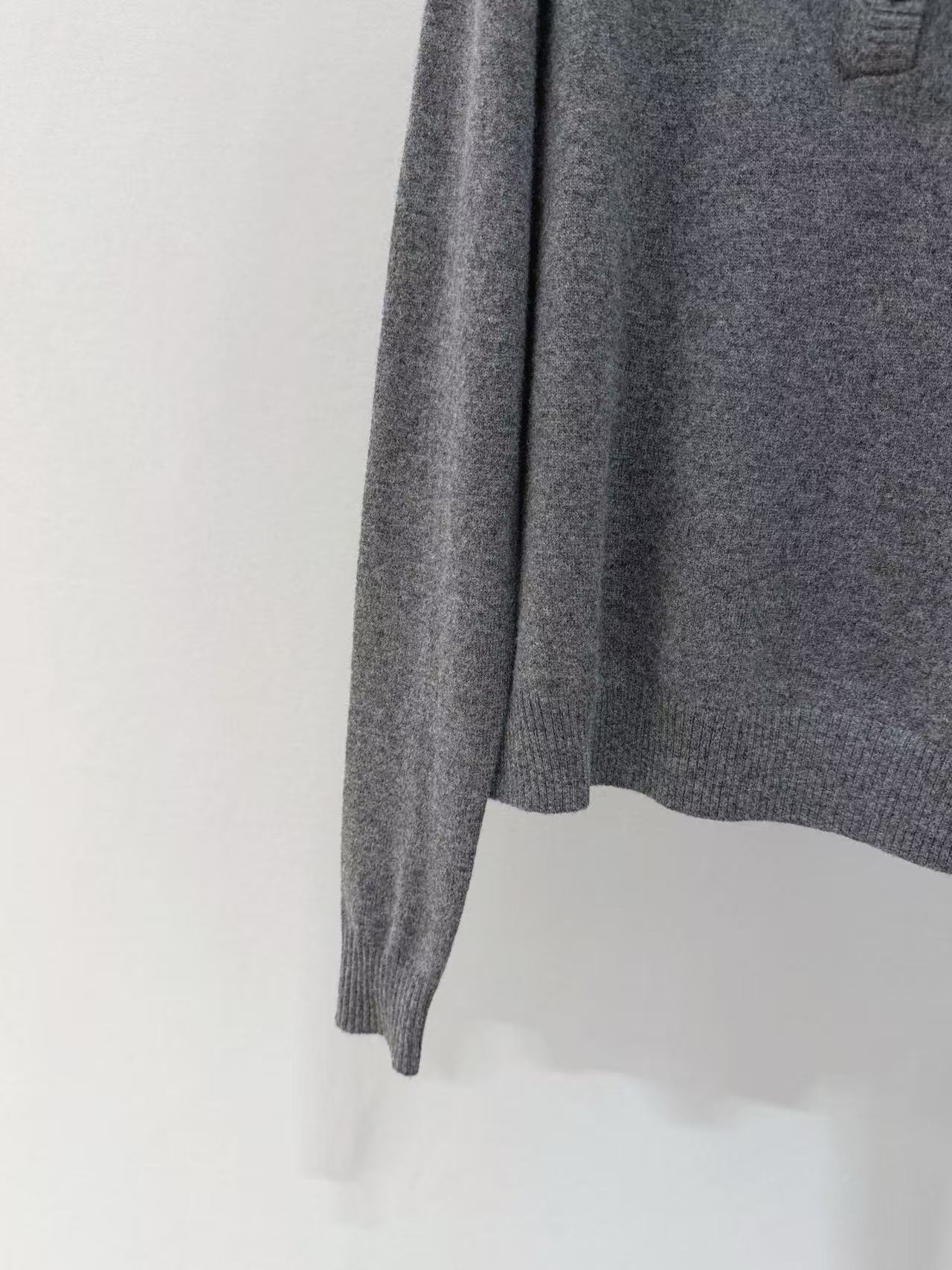 煙灰色調低調高级,三粒扣半開領輕鬆套頭,側邊微標提花低調點睛,鬆弛版型保留慵懶氛圍,疊穿單穿皆宜,不挑身形。