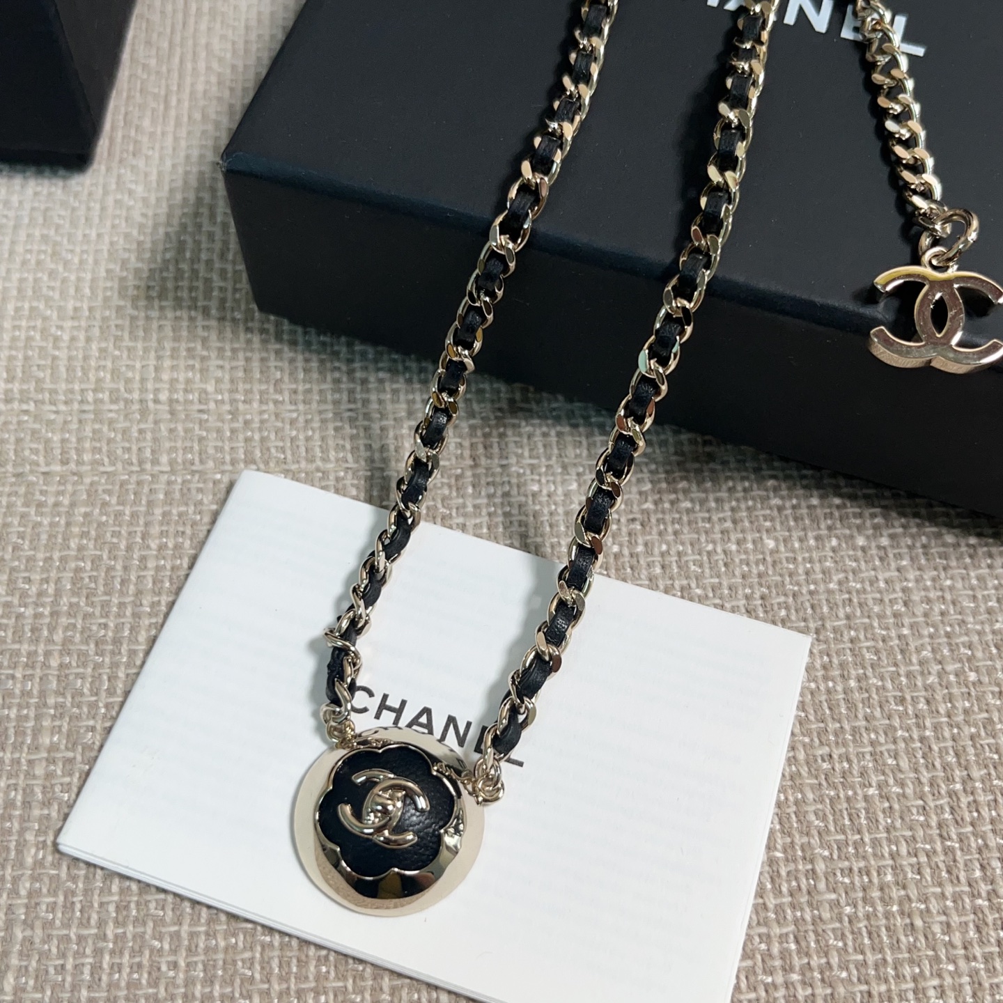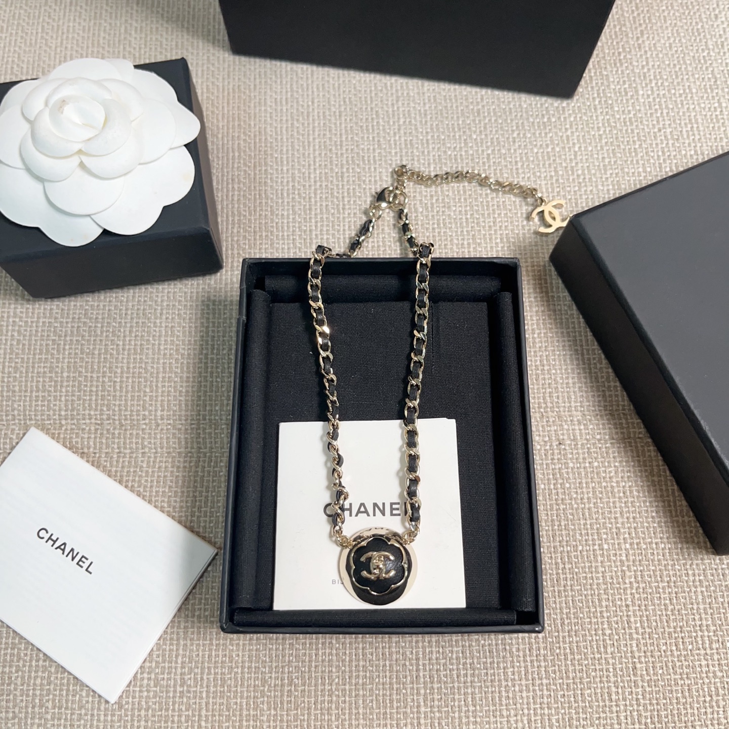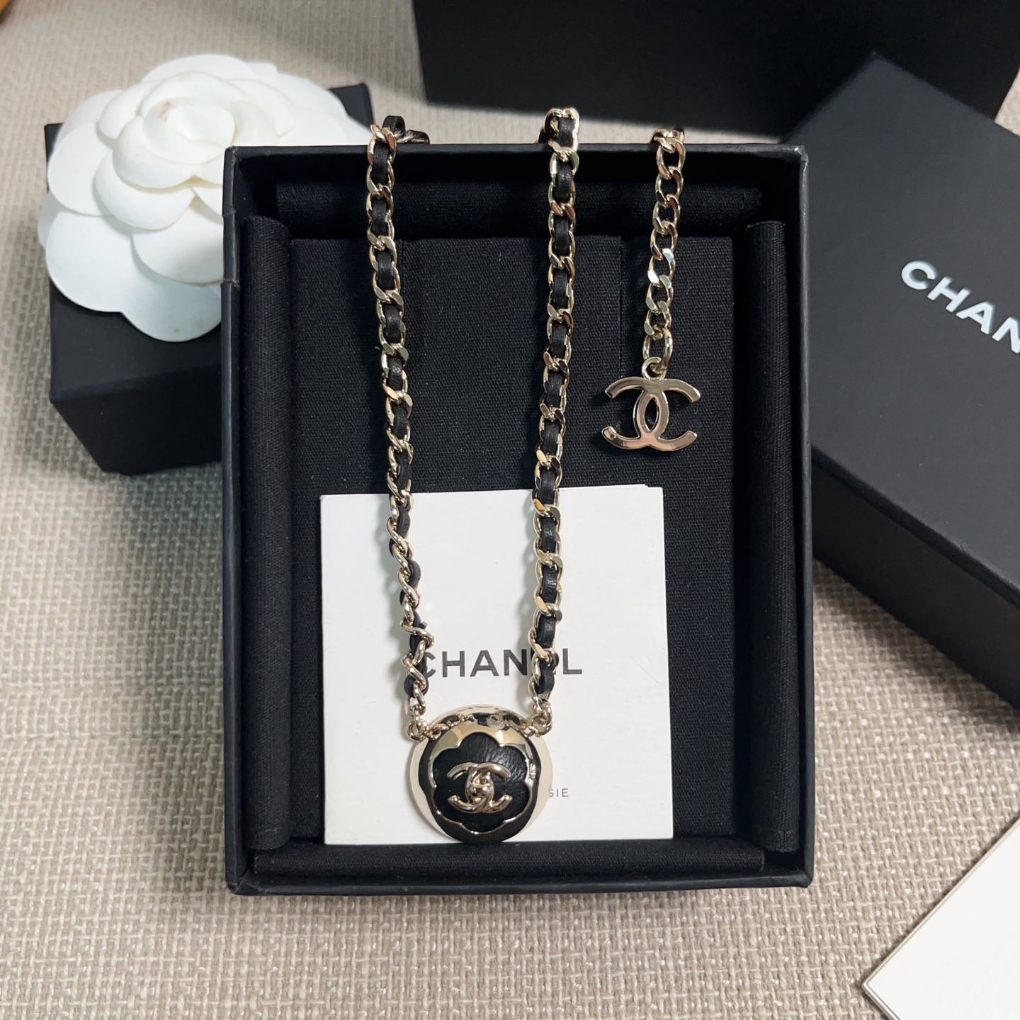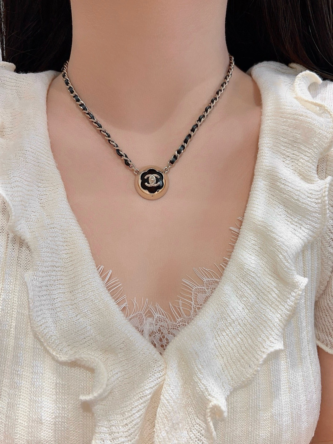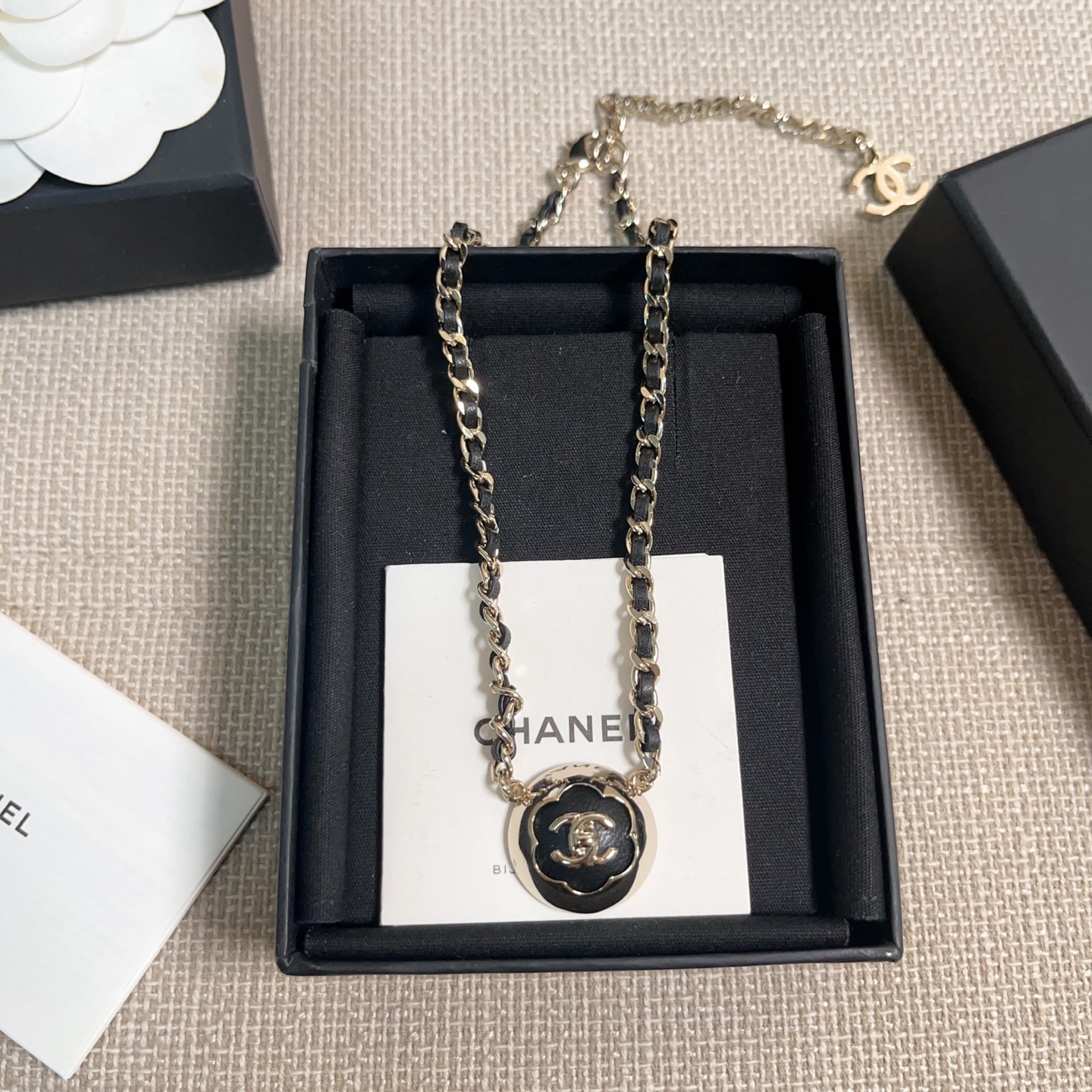 2025早秋新品 C家 25a黑皮茶花半球穿皮項鍊