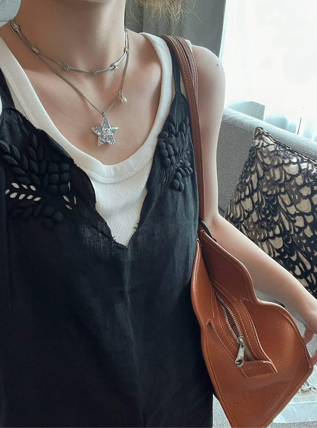 銀色 / 項鍊鏈長約40cm,另有延長鏈約19cm,星星寬約2.9cm / $ 1,780