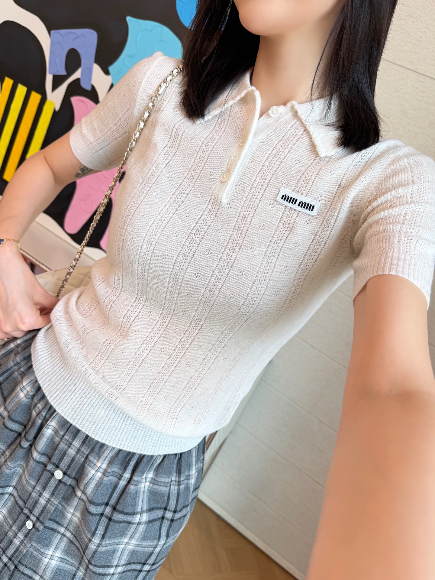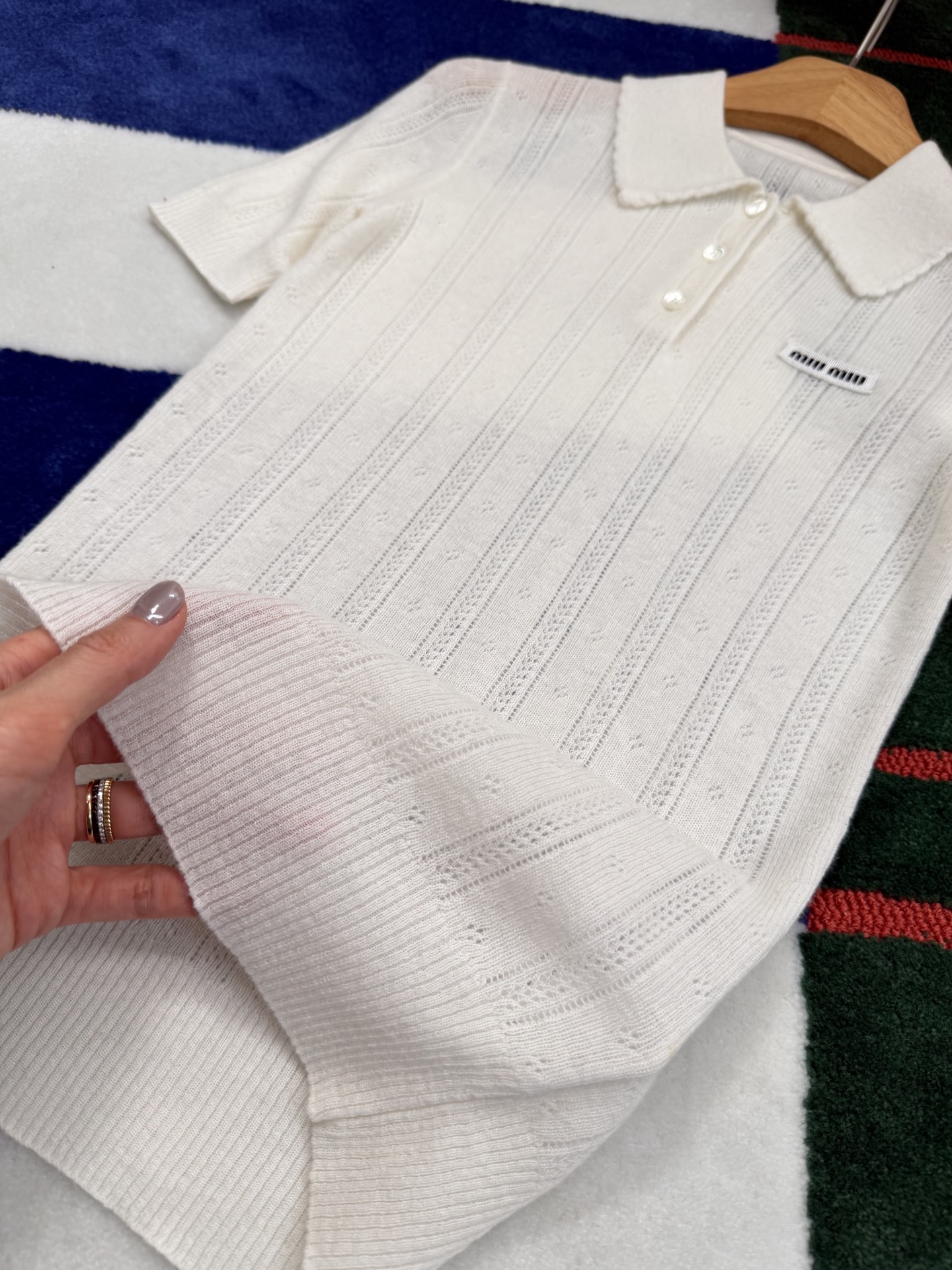 2025秋冬新品 Miu家 鏤空短袖針織POLO衫