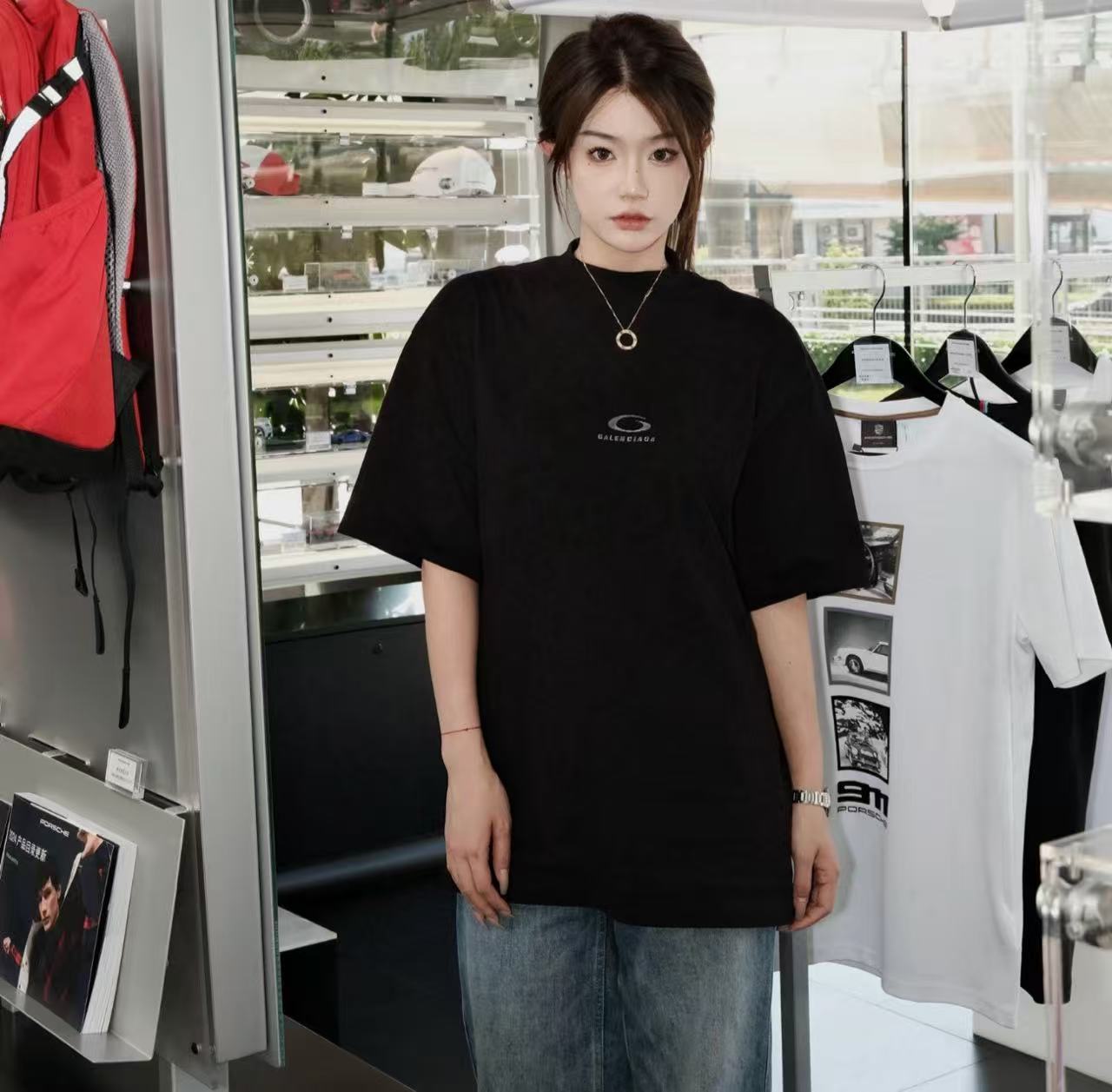 這件T恤採用了現在最流行的 Oversize 寬鬆版型,穿起來隨性又時髦,完全不挑人。無論是搭配寬褲、牛仔褲還是短裙,都能輕鬆穿出屬於自己的潮流風格。