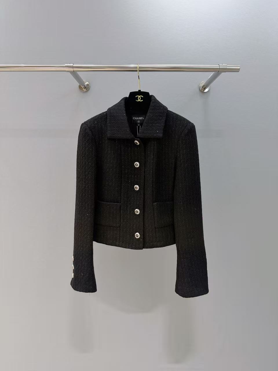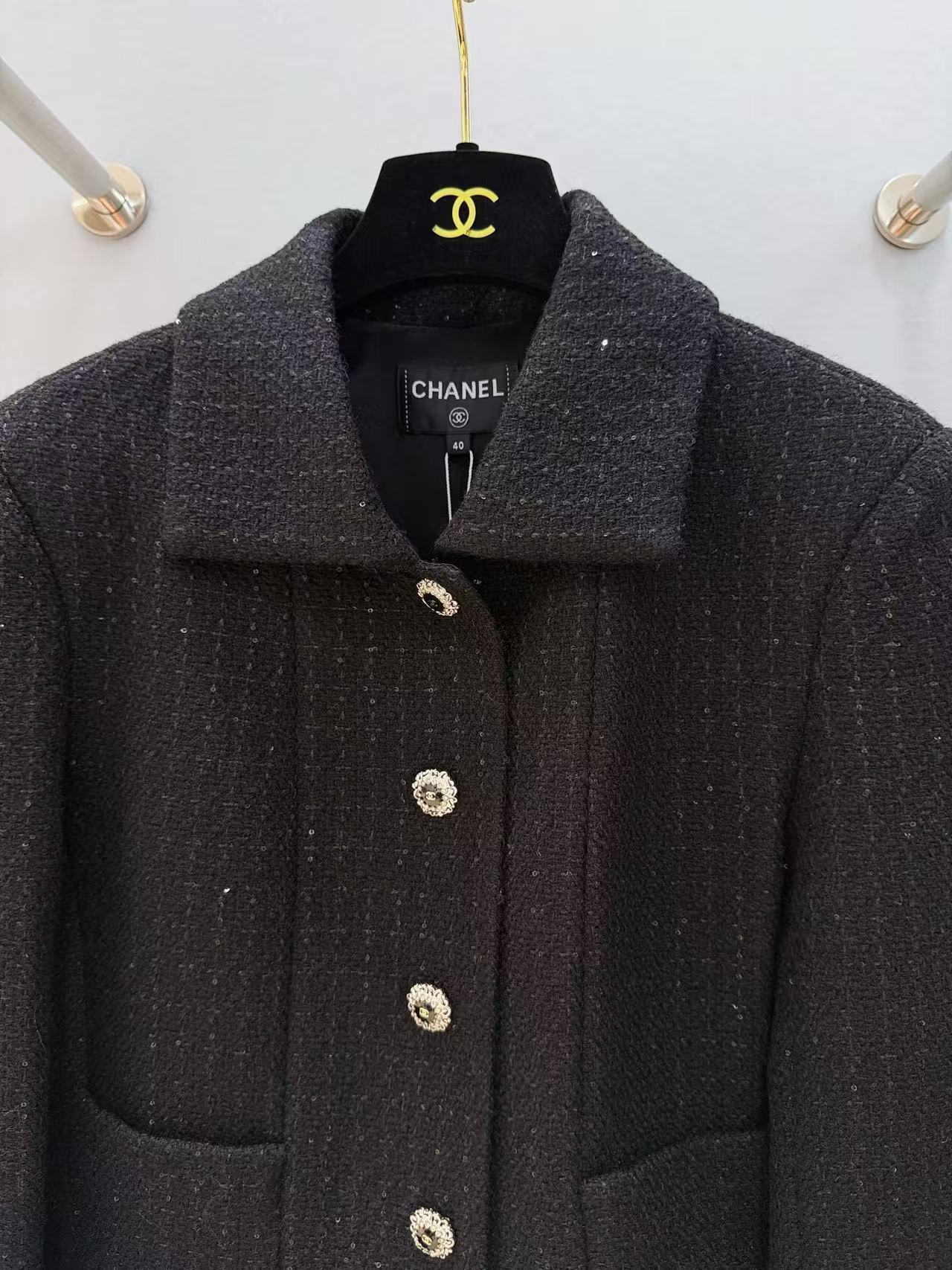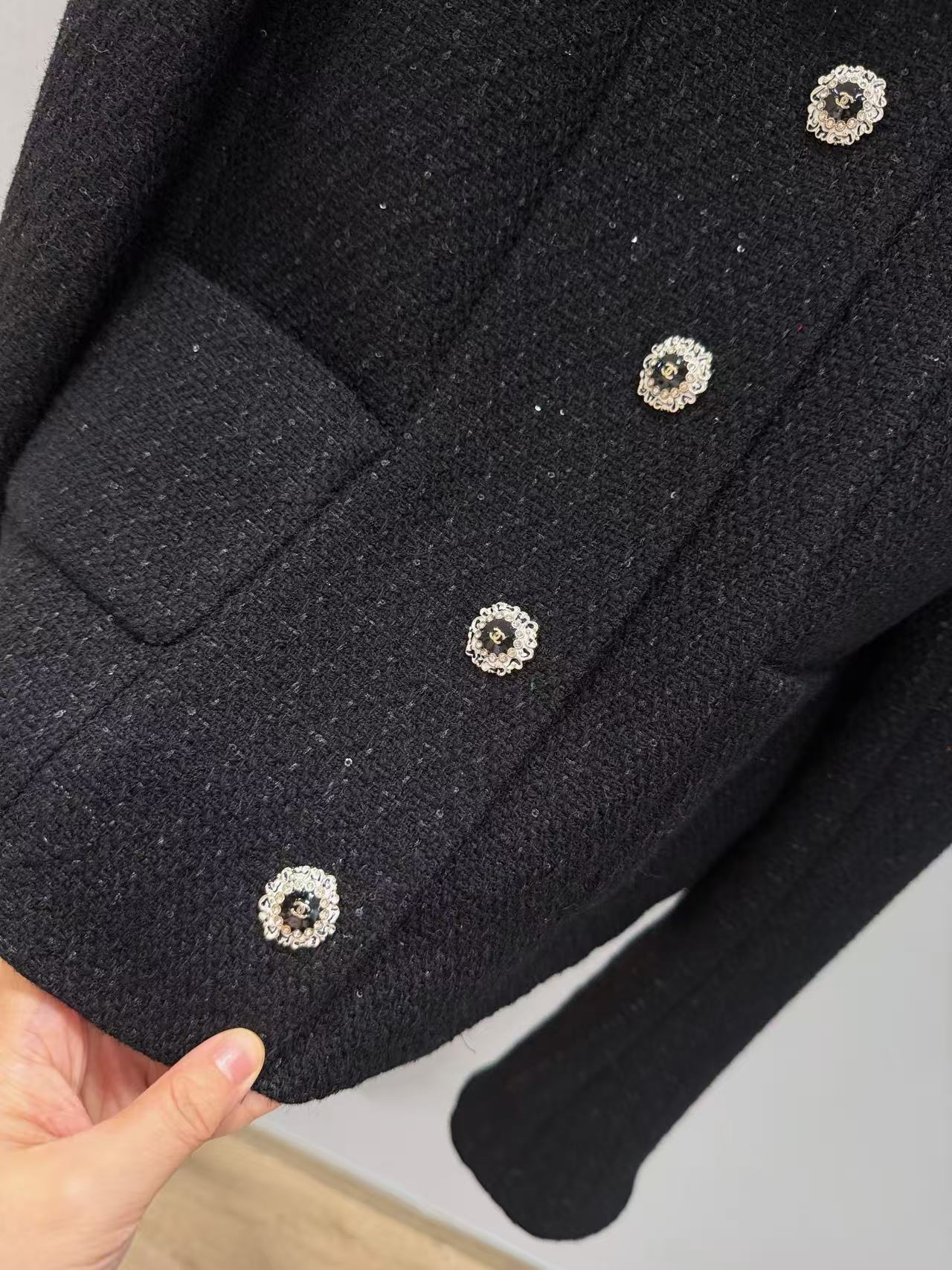 經典小香風輪廓,直筒微修身版型,高腰線剪裁直接拉長比例,雙排標誌性雙C圓扣一扣上,貴氣瞬間到位!不管是搭半裙走優雅路線,還是配西裝褲走幹練名媛,都超級好看。