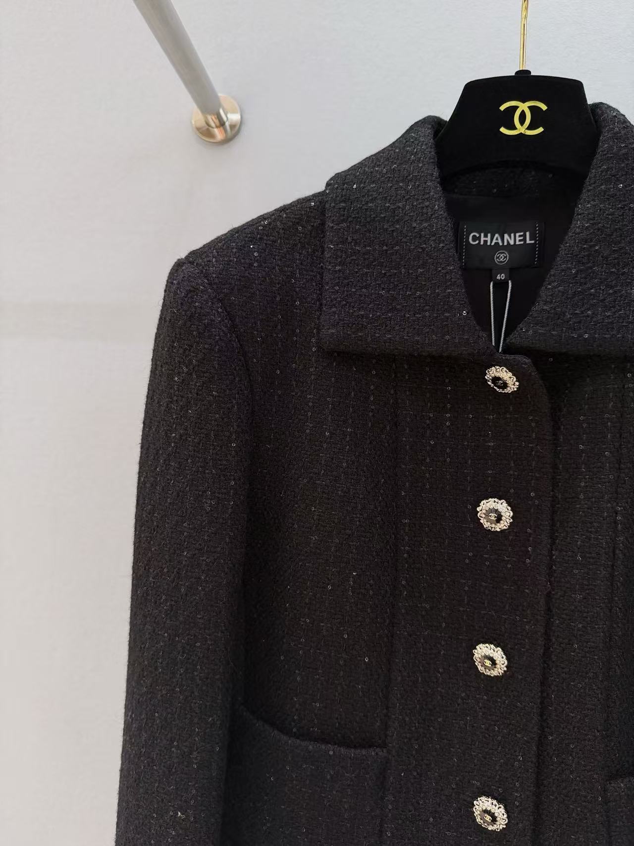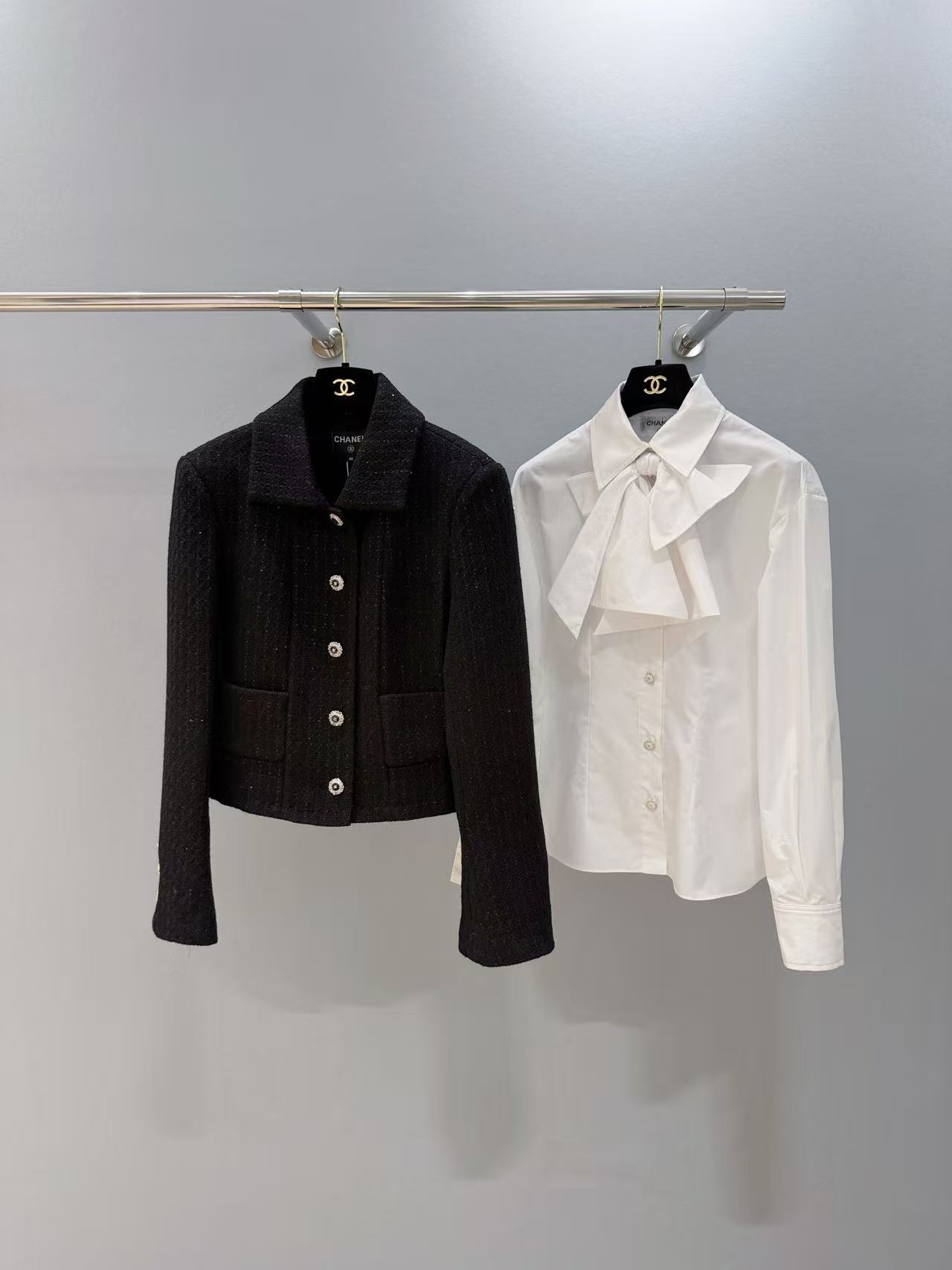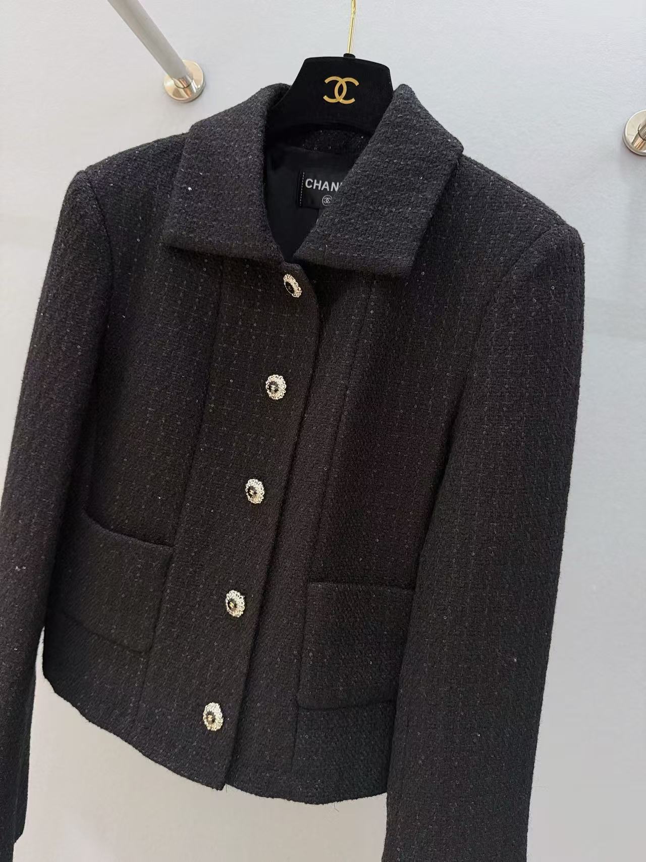 經典小香風輪廓,直筒微修身版型,高腰線剪裁直接拉長比例,雙排標誌性雙C圓扣一扣上,貴氣瞬間到位!不管是搭半裙走優雅路線,還是配西裝褲走幹練名媛,都超級好看。