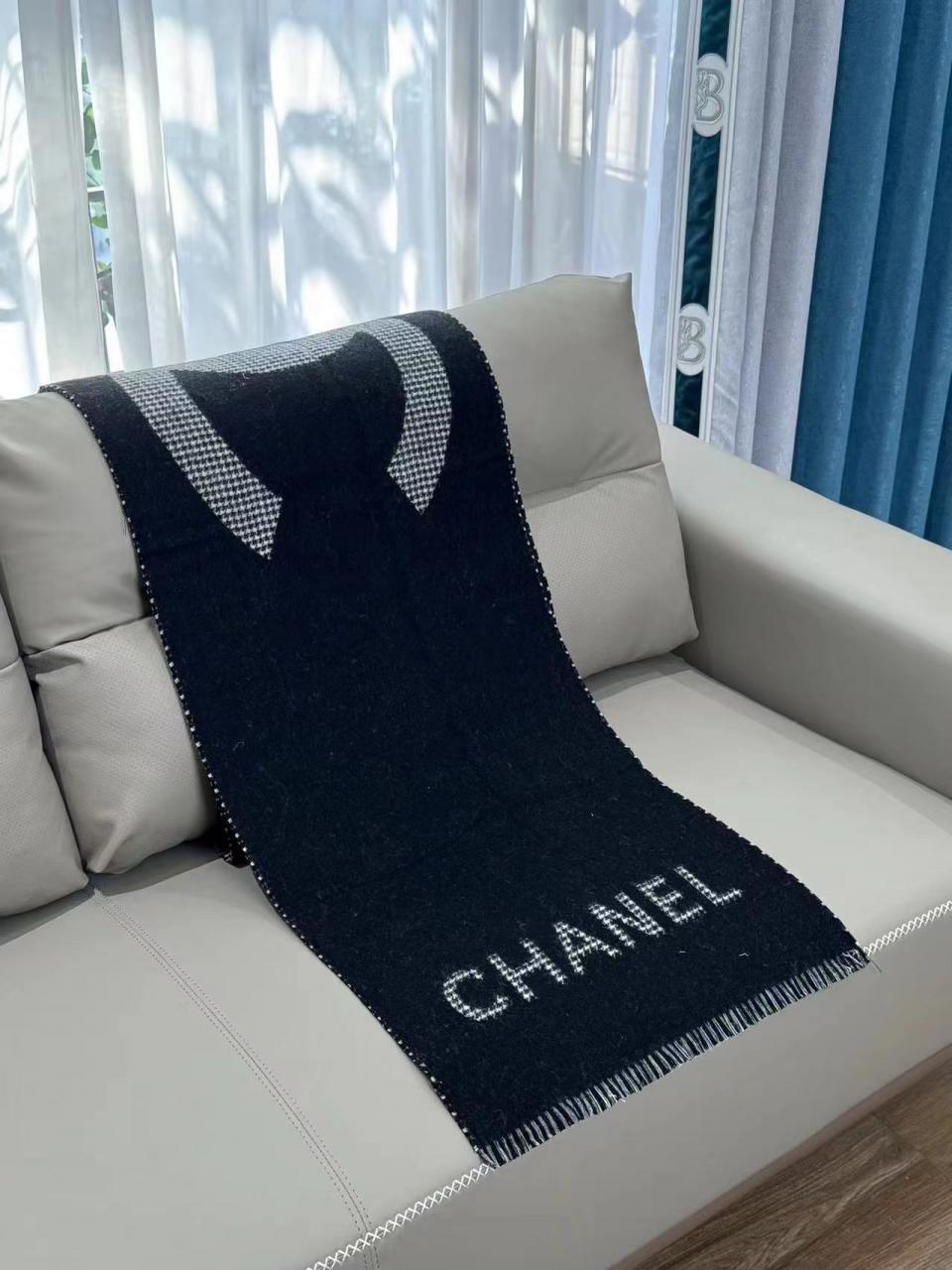 2024早春新品 C家千鳥格拼色羊絨圍巾 經典拼色logo提花