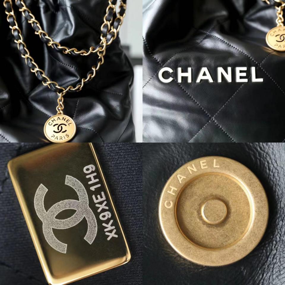 C家22bag字母單肩購物袋 黑色白字(大號)