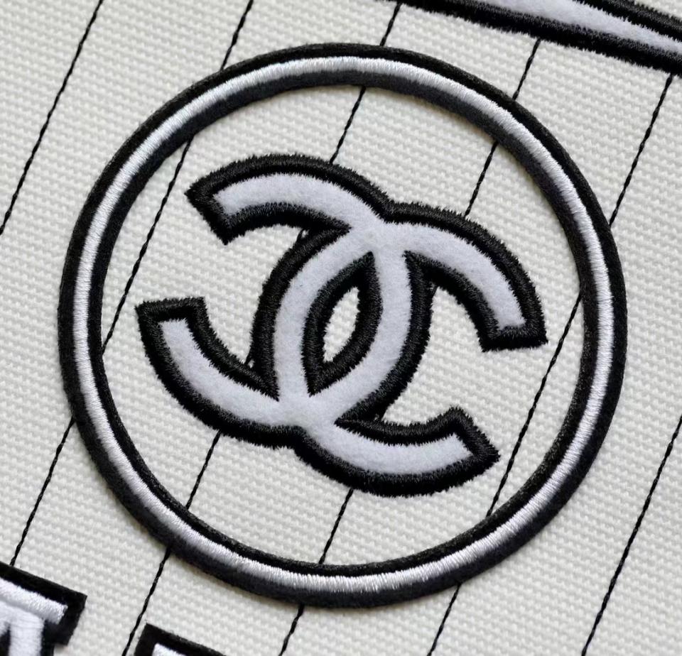2023夏季新品 C家23p刺繡字母沙灘包(白色大號) 條紋設計 容量超大
