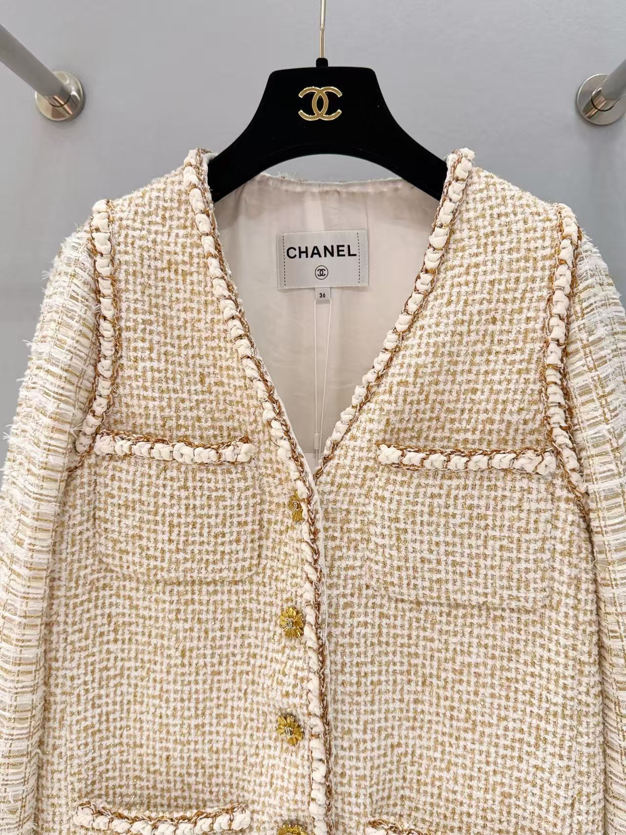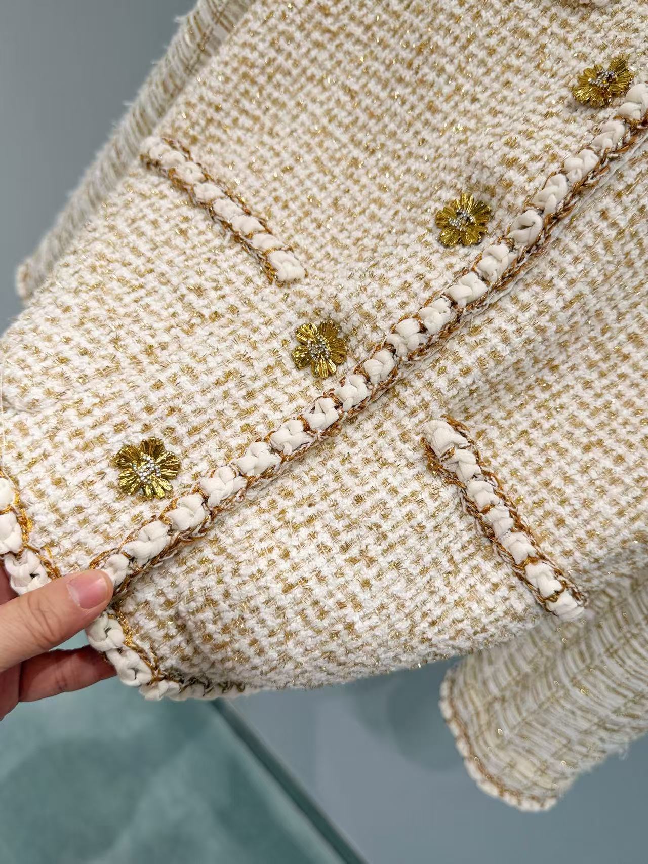 設計細節更是講究,用了頂級版本的鉤織滾邊,搭配質感十足的定制金屬紐扣,完美呈現法式的精緻與優雅。