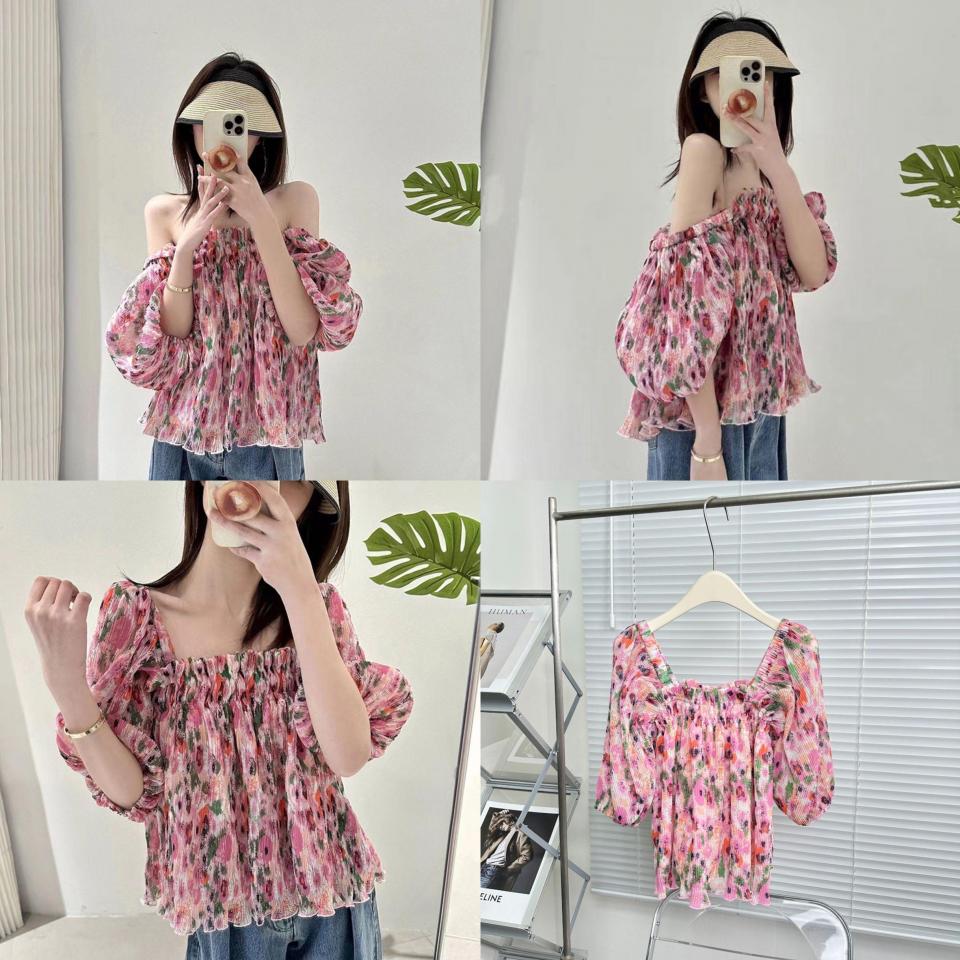 2023早春新品 Ganni花卉露肩上衣 甜美氣質風 夏季必備