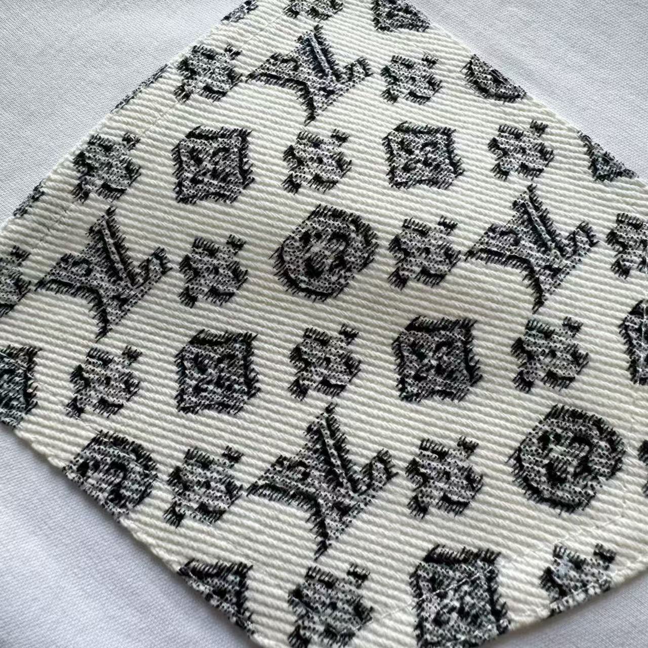 Monogram 老花丹寧口袋: 採用全棉牛仔布結合活性數碼印花技術,圖騰顯色飽和且具備牛仔特有的洗水質感。