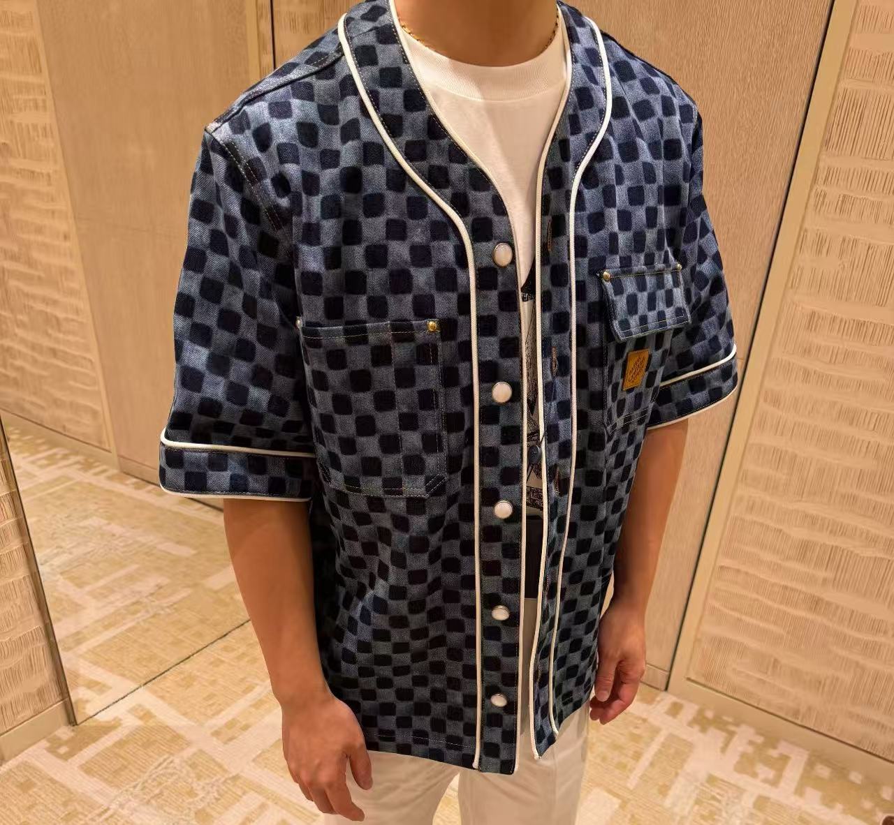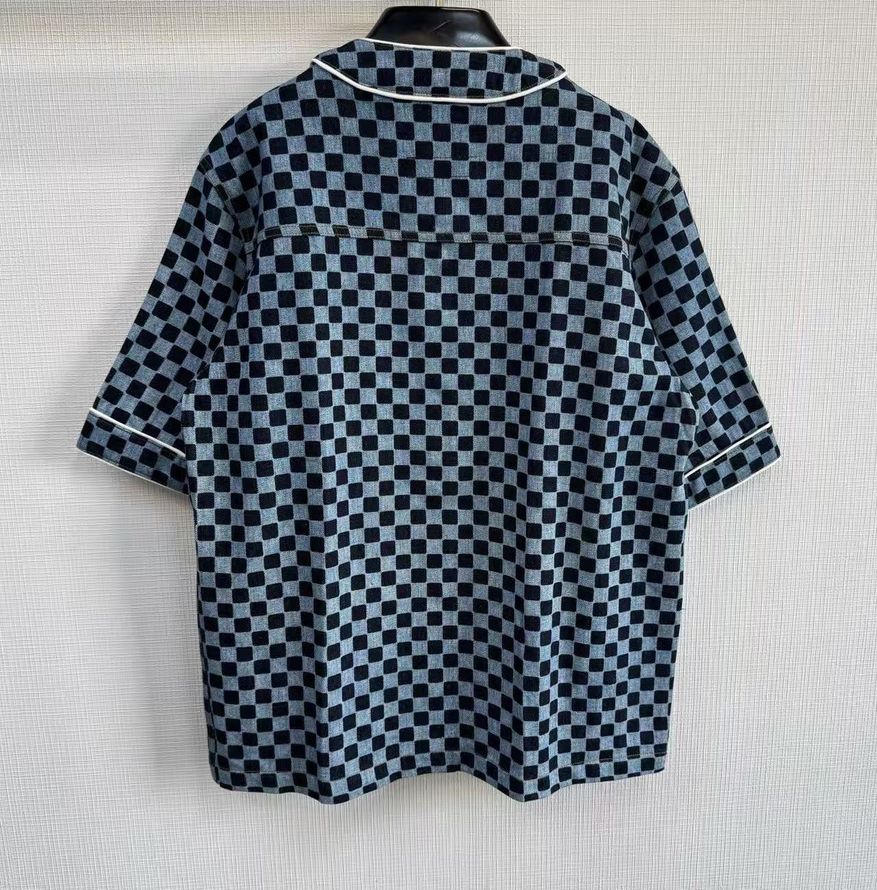 2025早秋新品 L家 棋盤格牛仔短袖襯衫