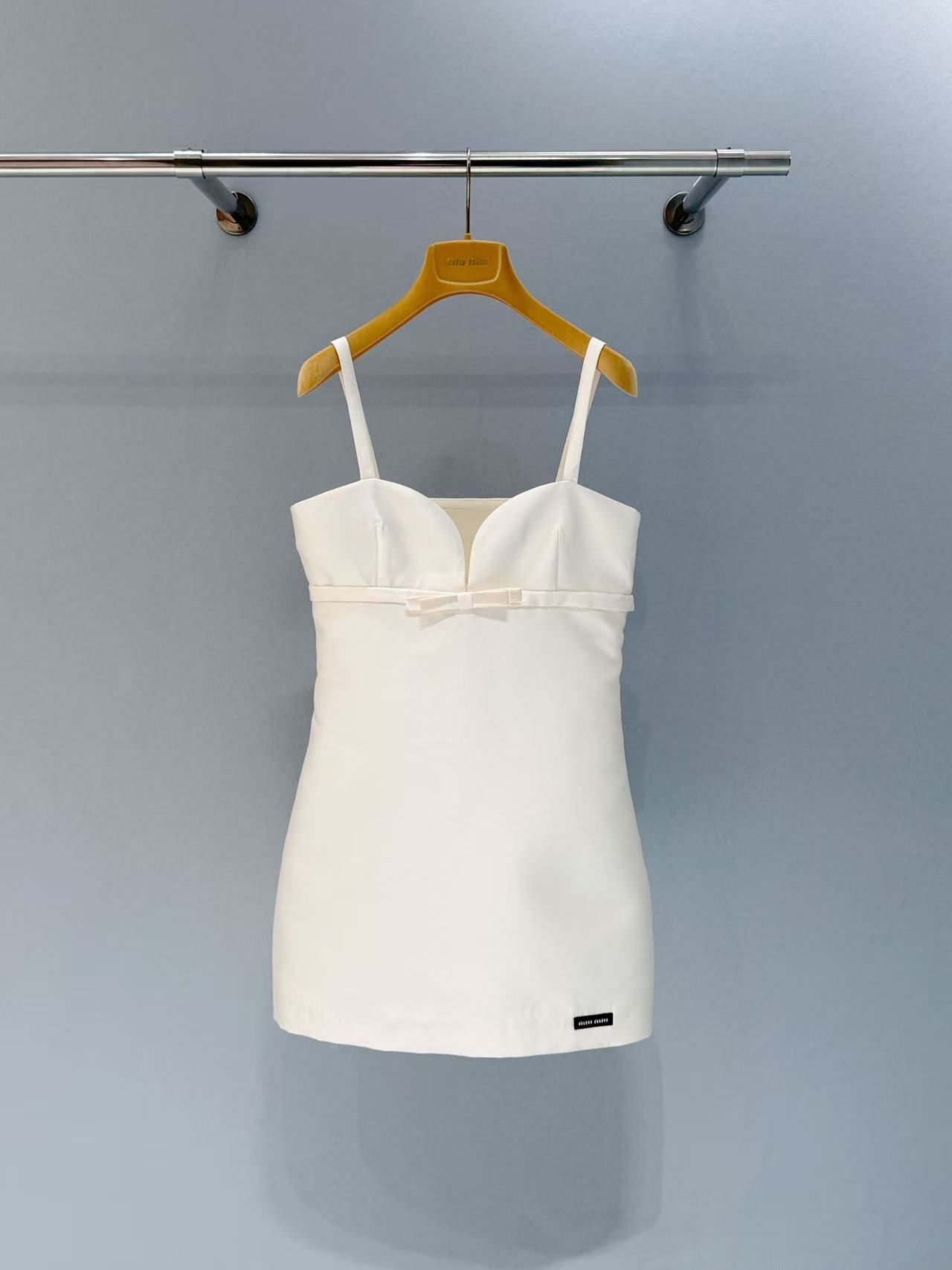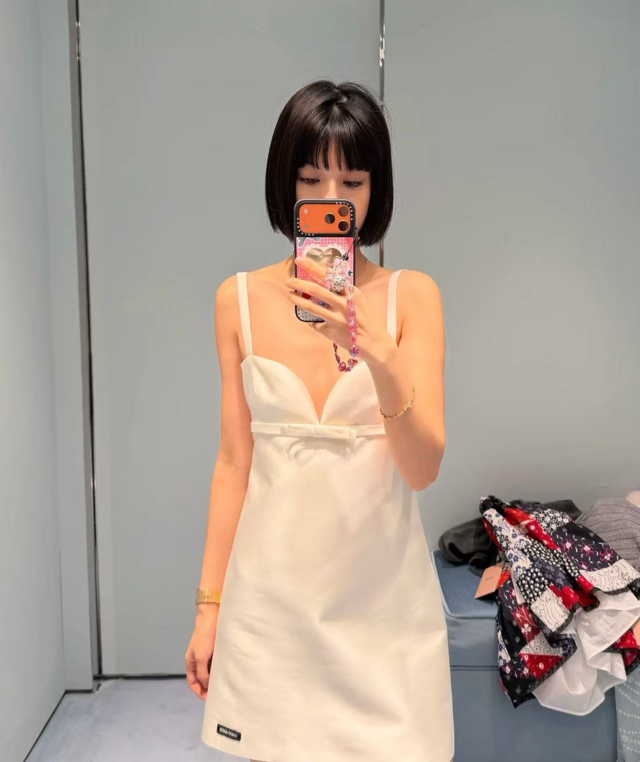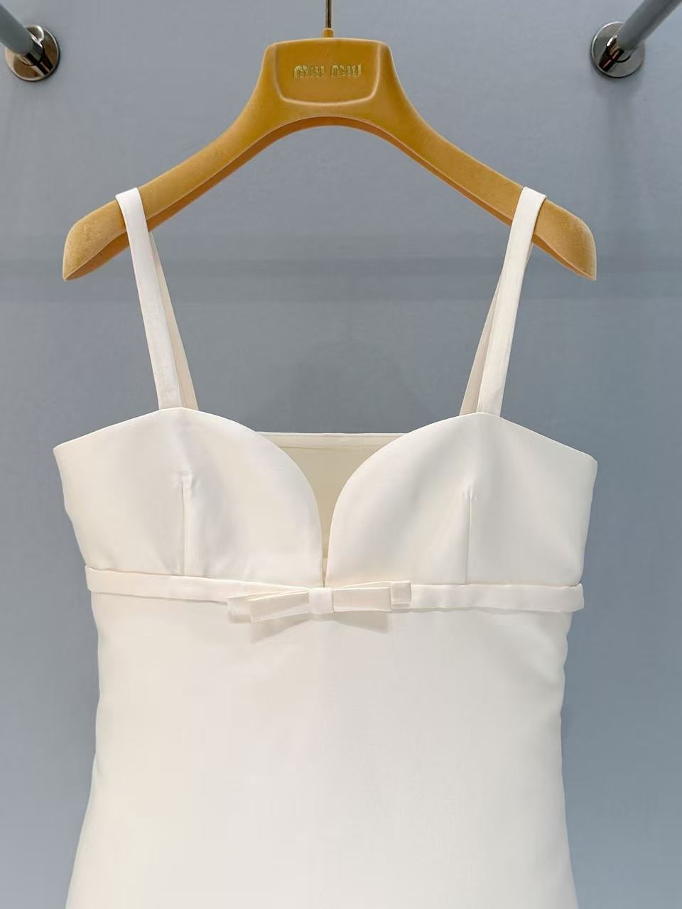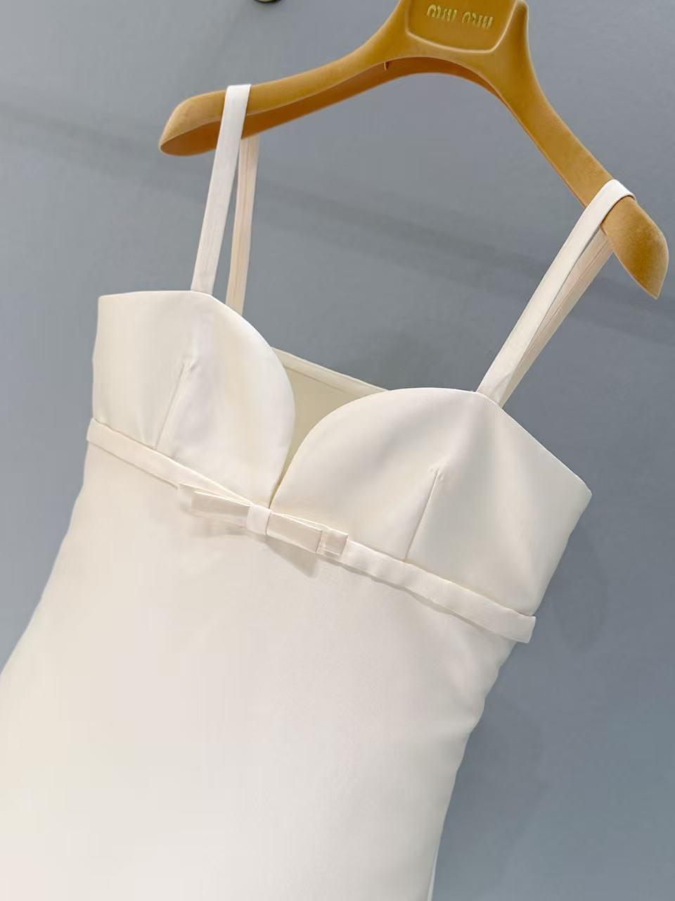 2026早春新品 Miu家 蝴蝶結白色吊帶連衣裙