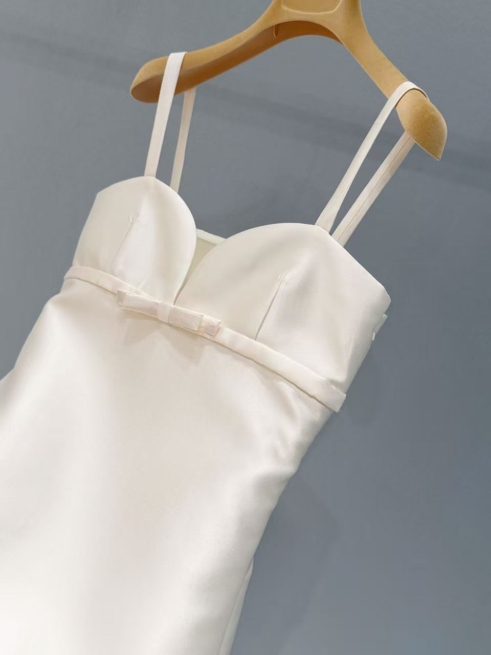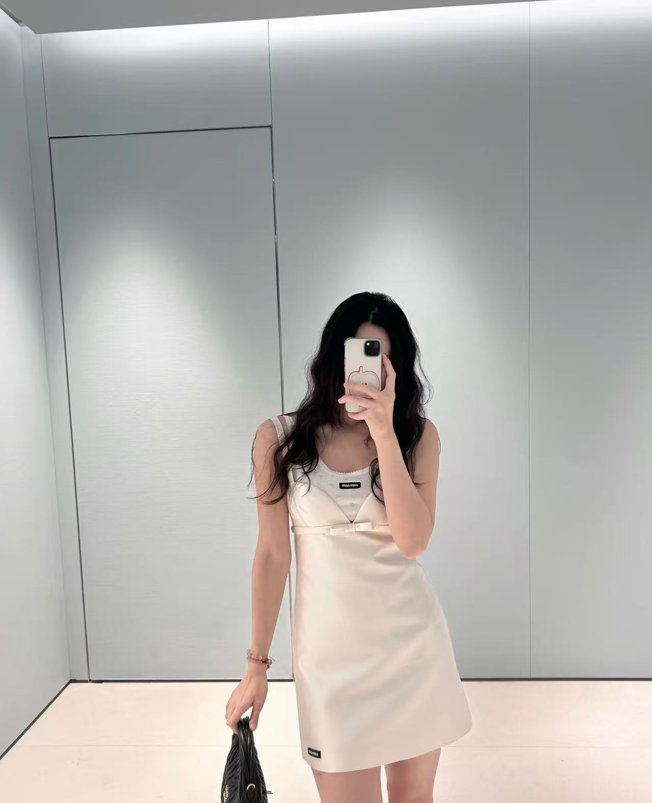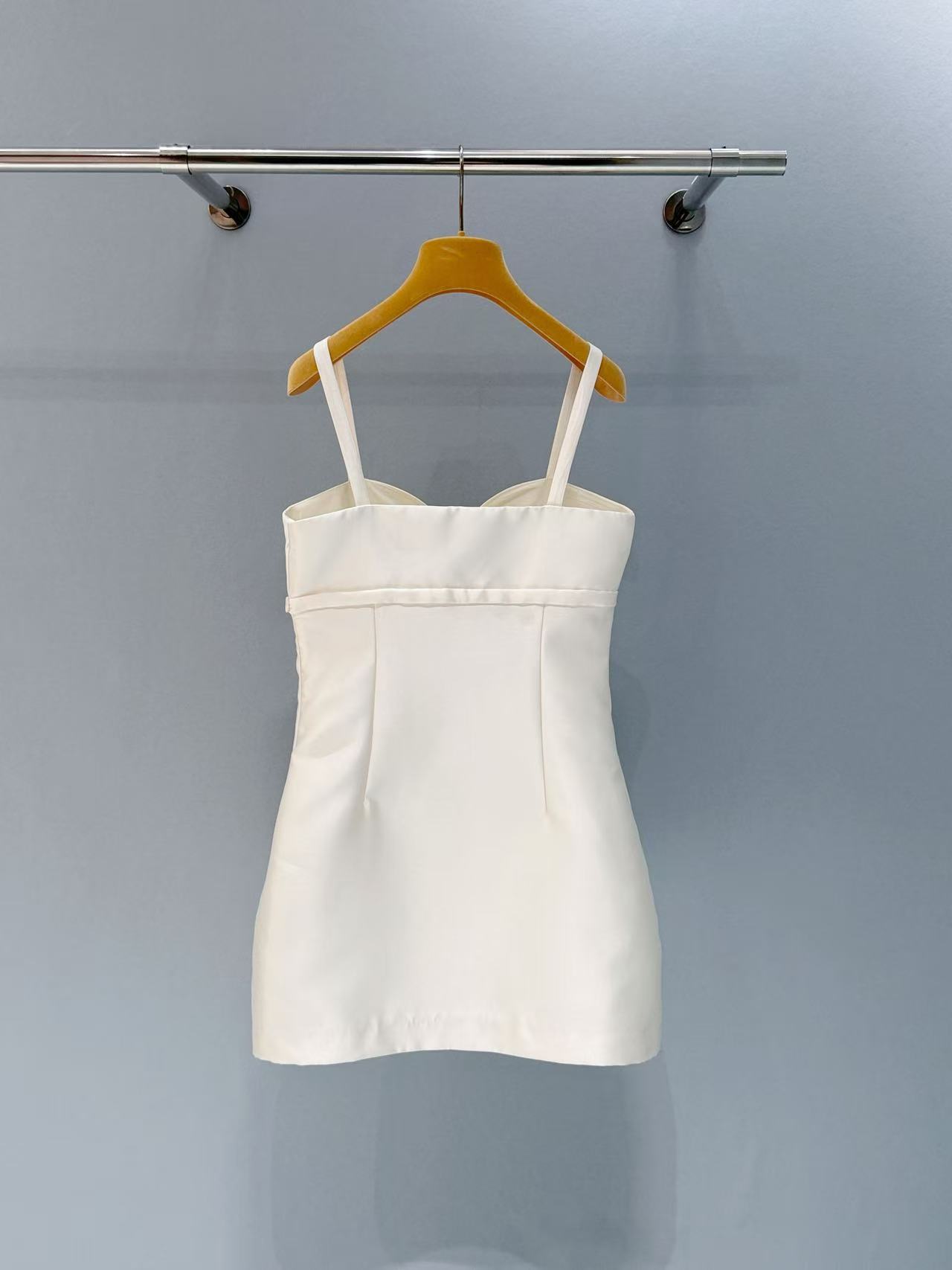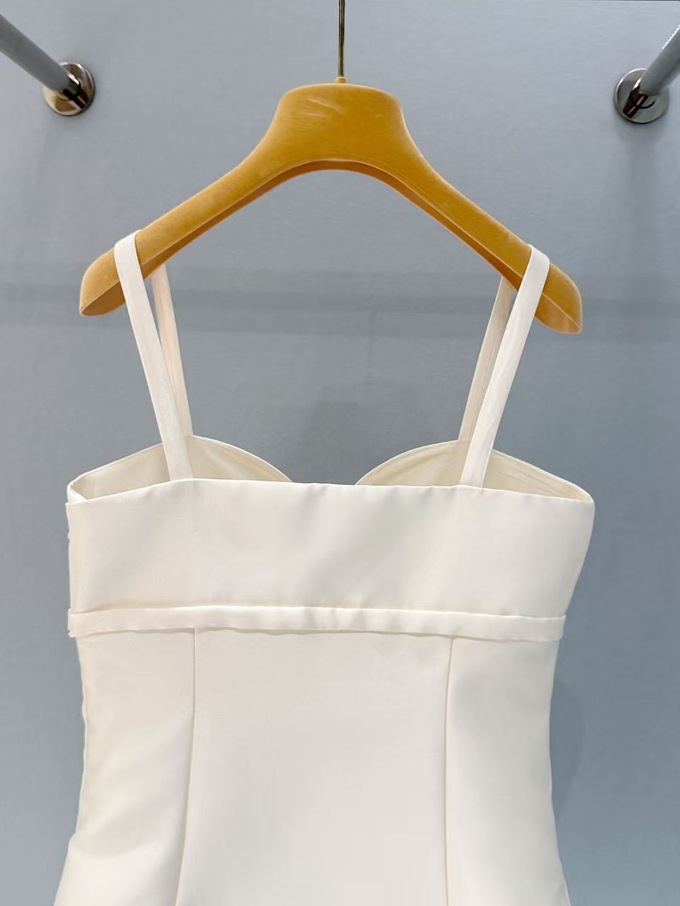2026早春新品 Miu家 蝴蝶結白色吊帶連衣裙