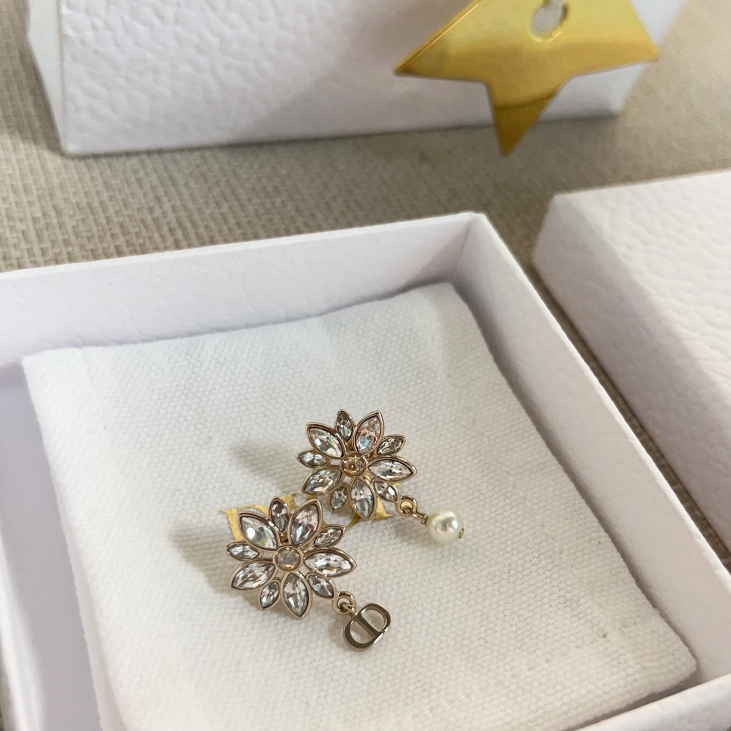 2026早春新品 D家 滿鑽雛菊吊CD珠耳釘