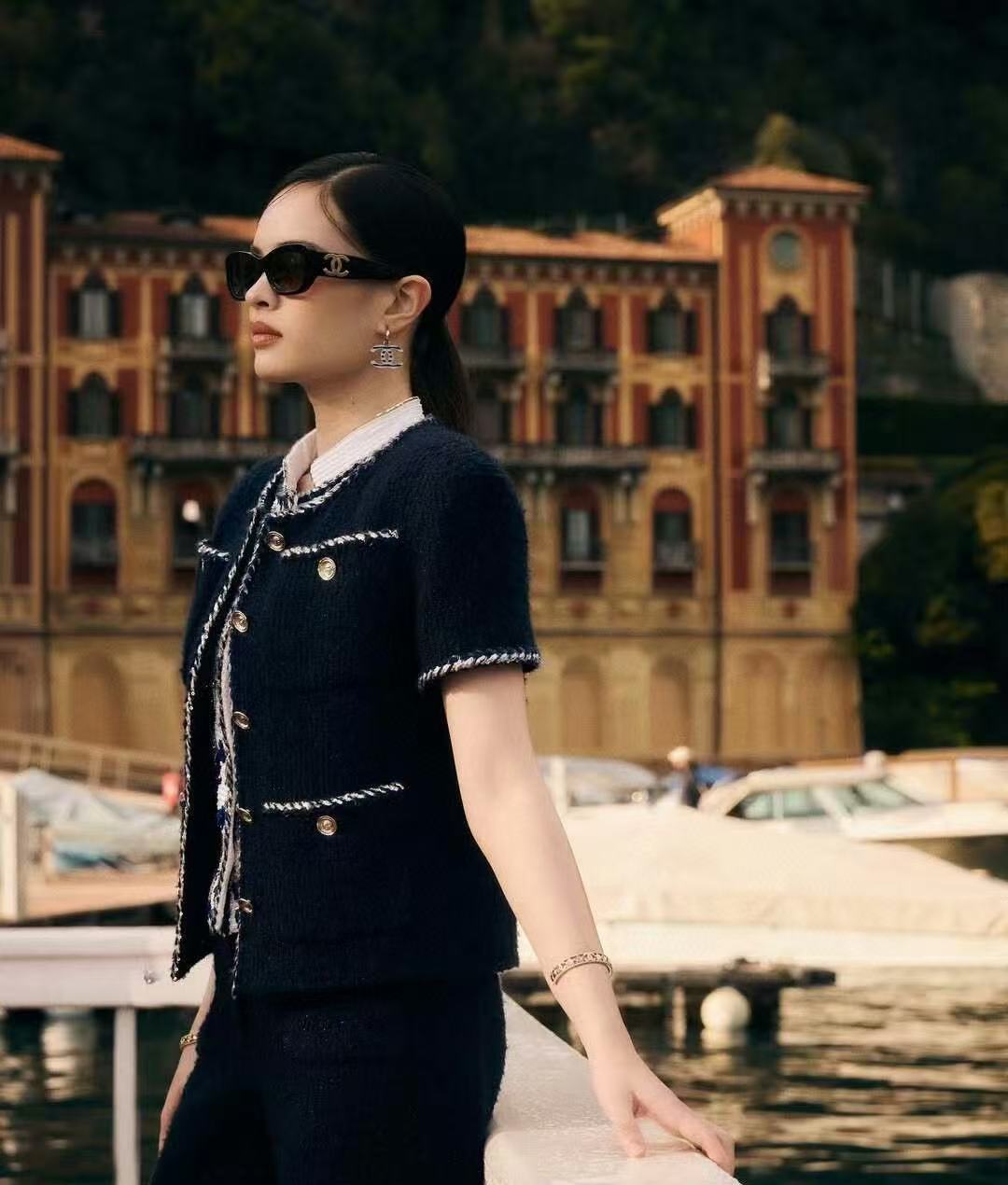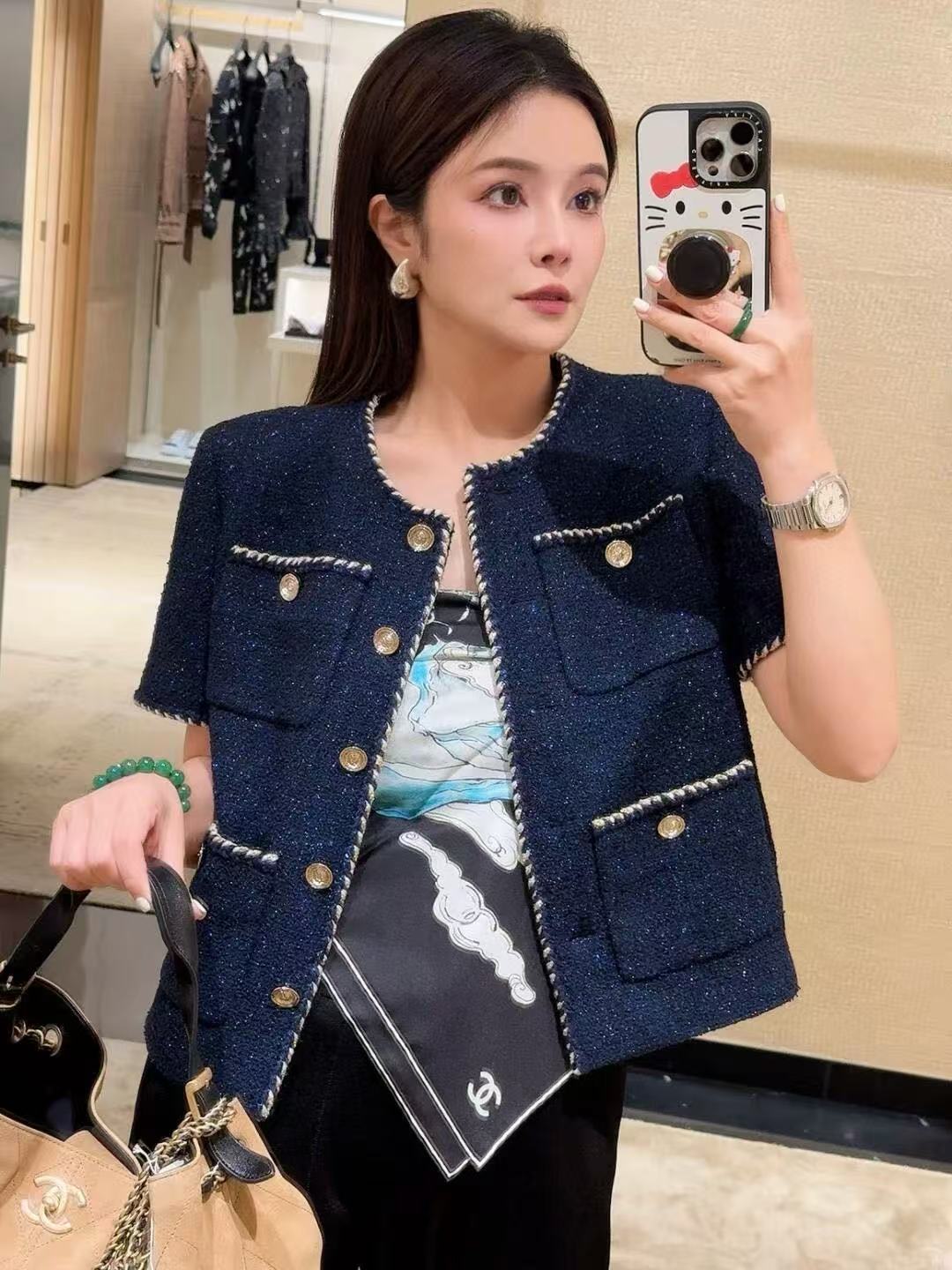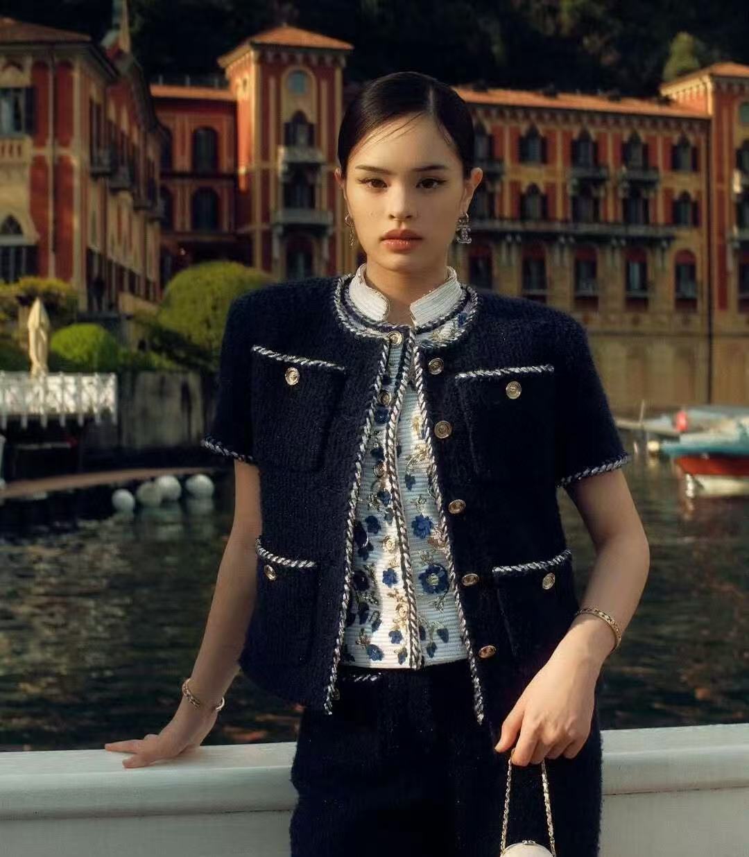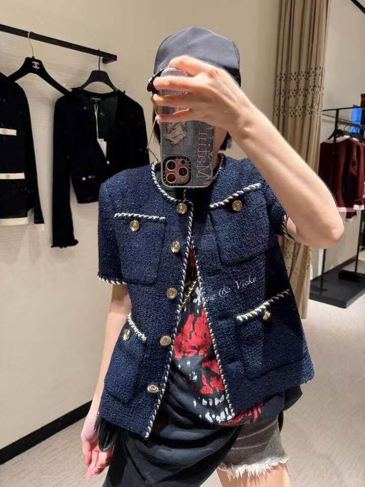 這款粗花呢外套真的很有氣勢感!採用立體剪裁版型,圓領搭配單排扣設計,整體線條俐落,穿起來優雅又時髦。