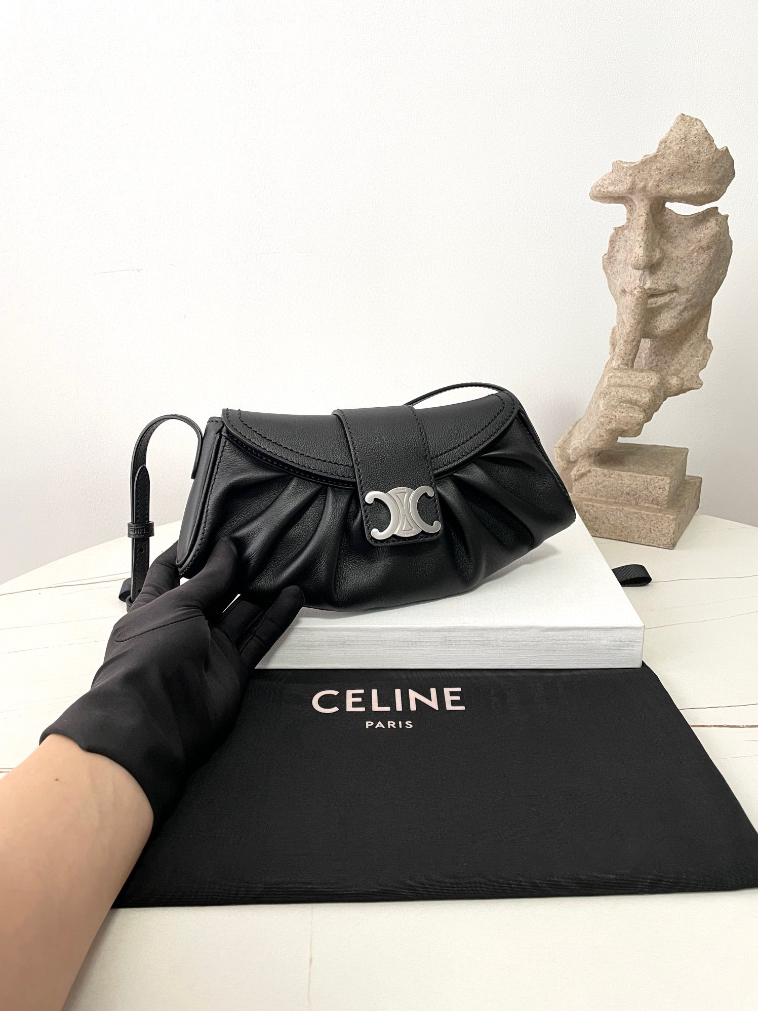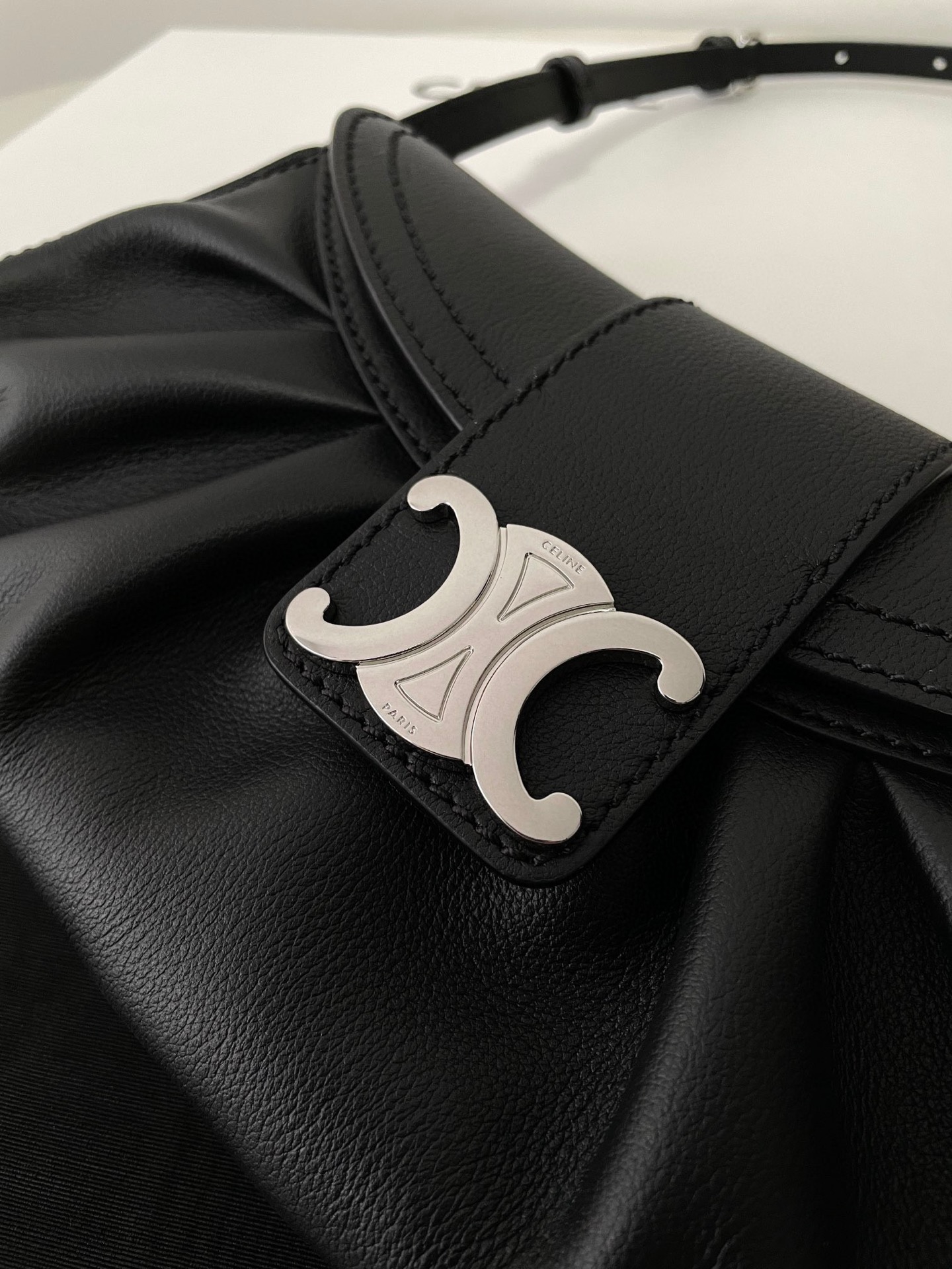 褶皺的包面加上銀色的凱旋門扣,整個看起來質感超好,超適合喜歡銀色配件的女孩!