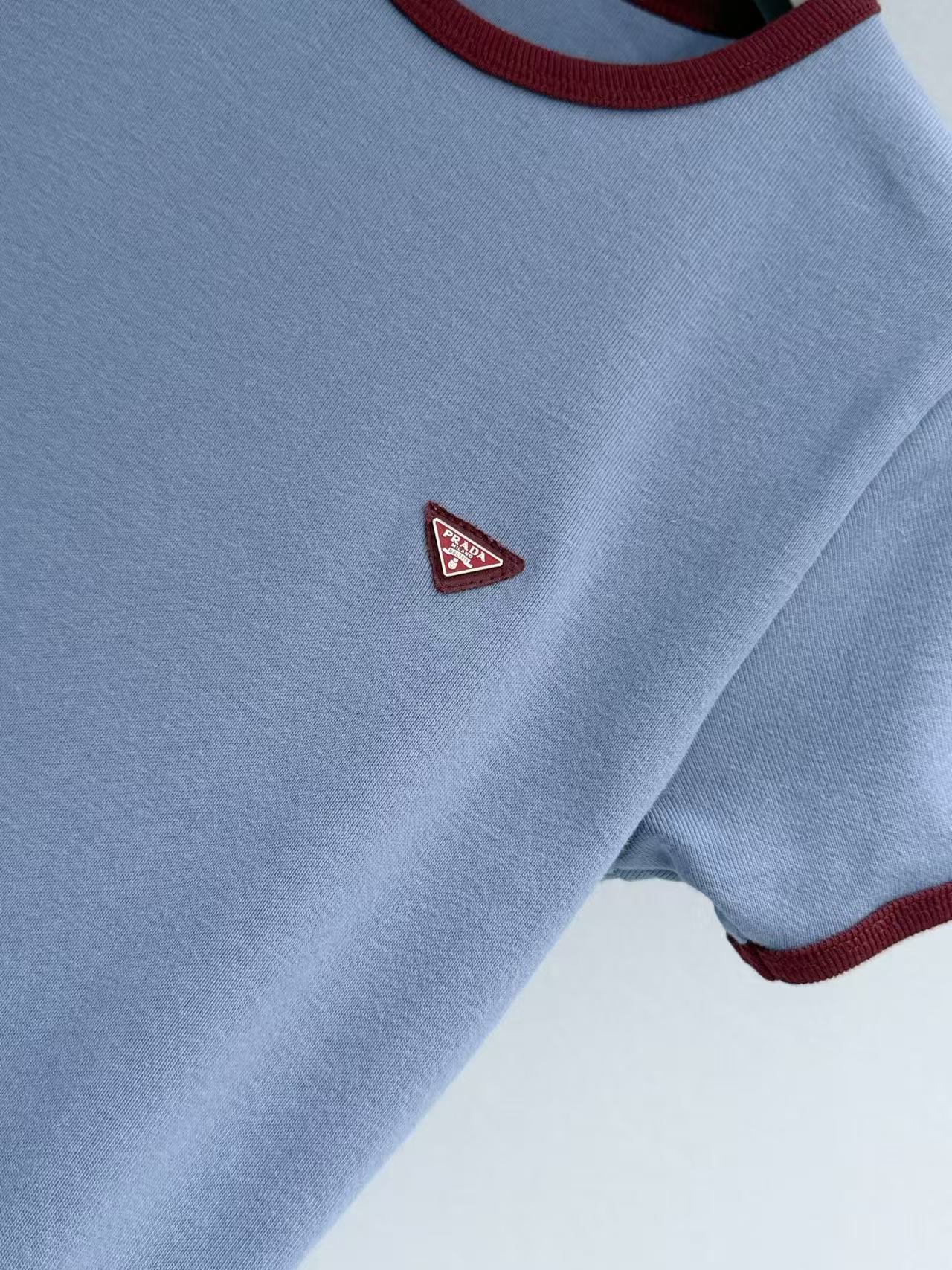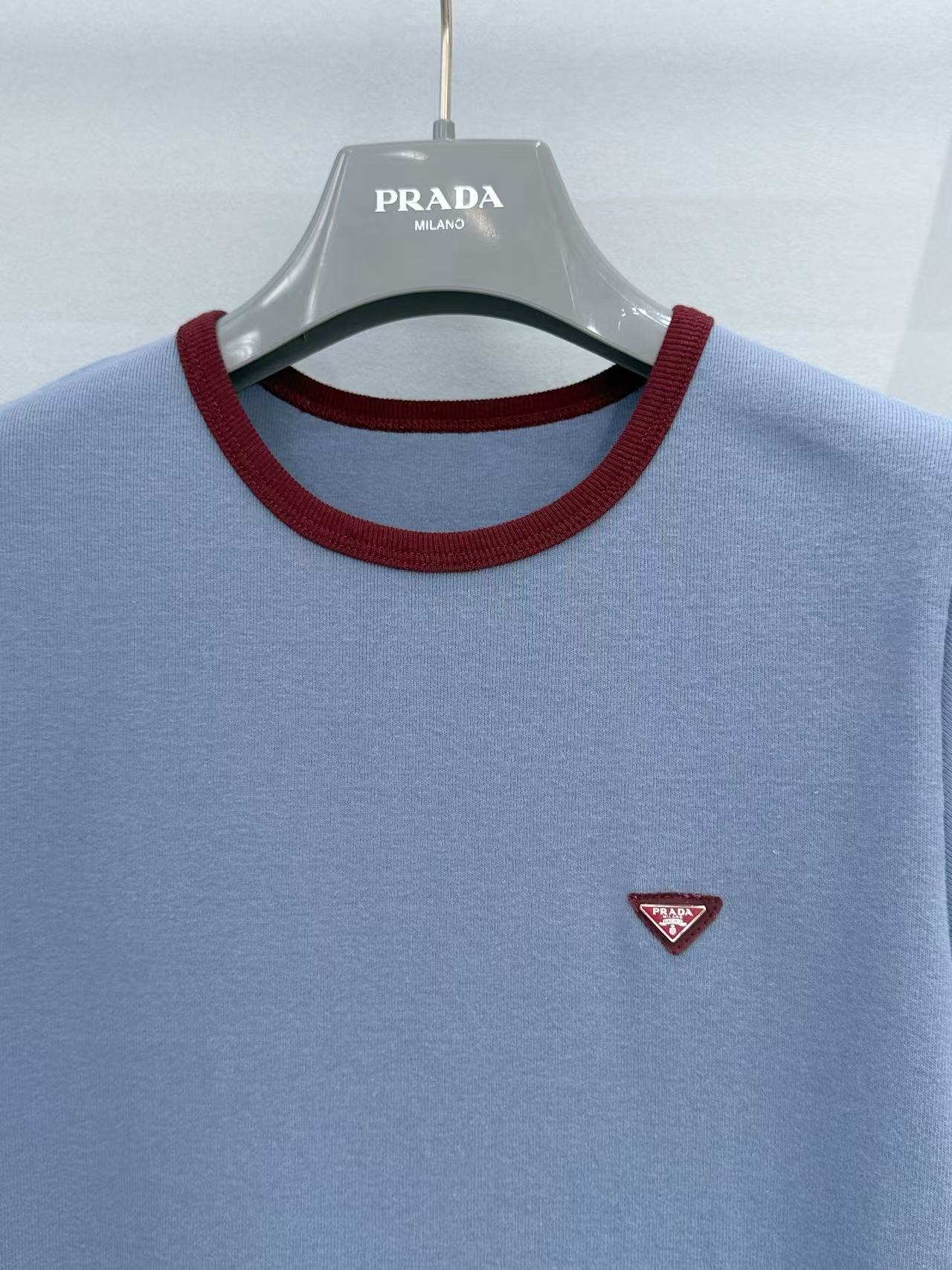 標誌性金屬倒三角徽標: 胸前的三角標採用了特供高品質五金,色澤瑩潤且鑲嵌精密。金屬質感與霧霾藍針織相互對襯,展現出藝術品等級的視覺層次。