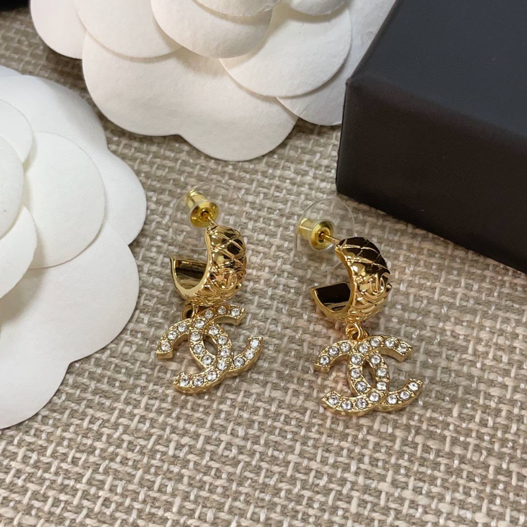 2025早春 C家半彎菱格滿鑽吊C耳環