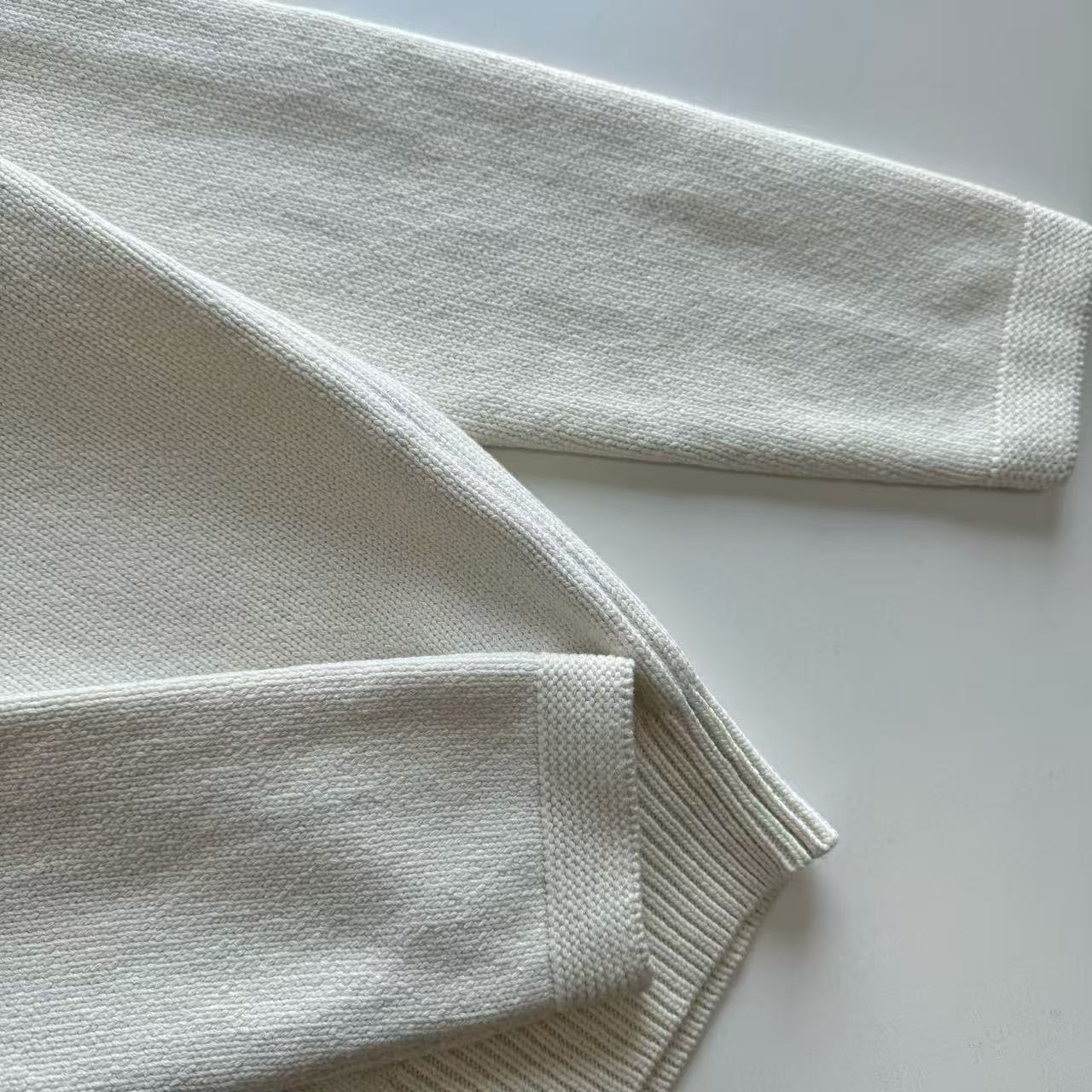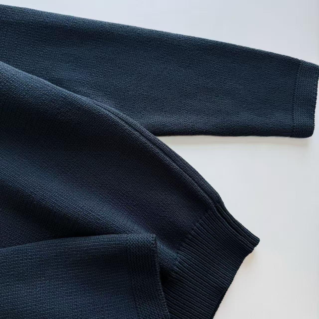 高階縫盤技術:整件毛衣最後採用 8 針縫盤埋夾工藝進行組裝。這種工藝能確保接縫處平整且不影響彈性,雖然製作週期長、技術難度高,但能讓穿著後的廓形更加順暢。