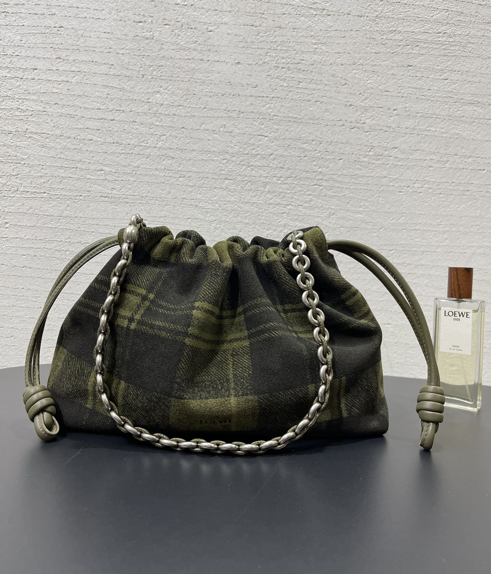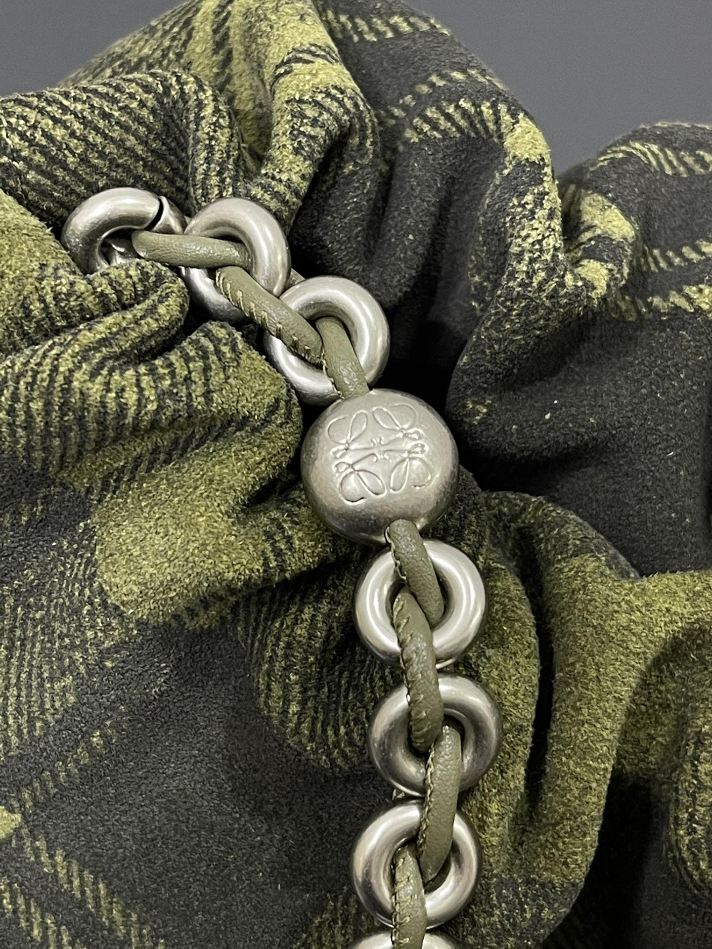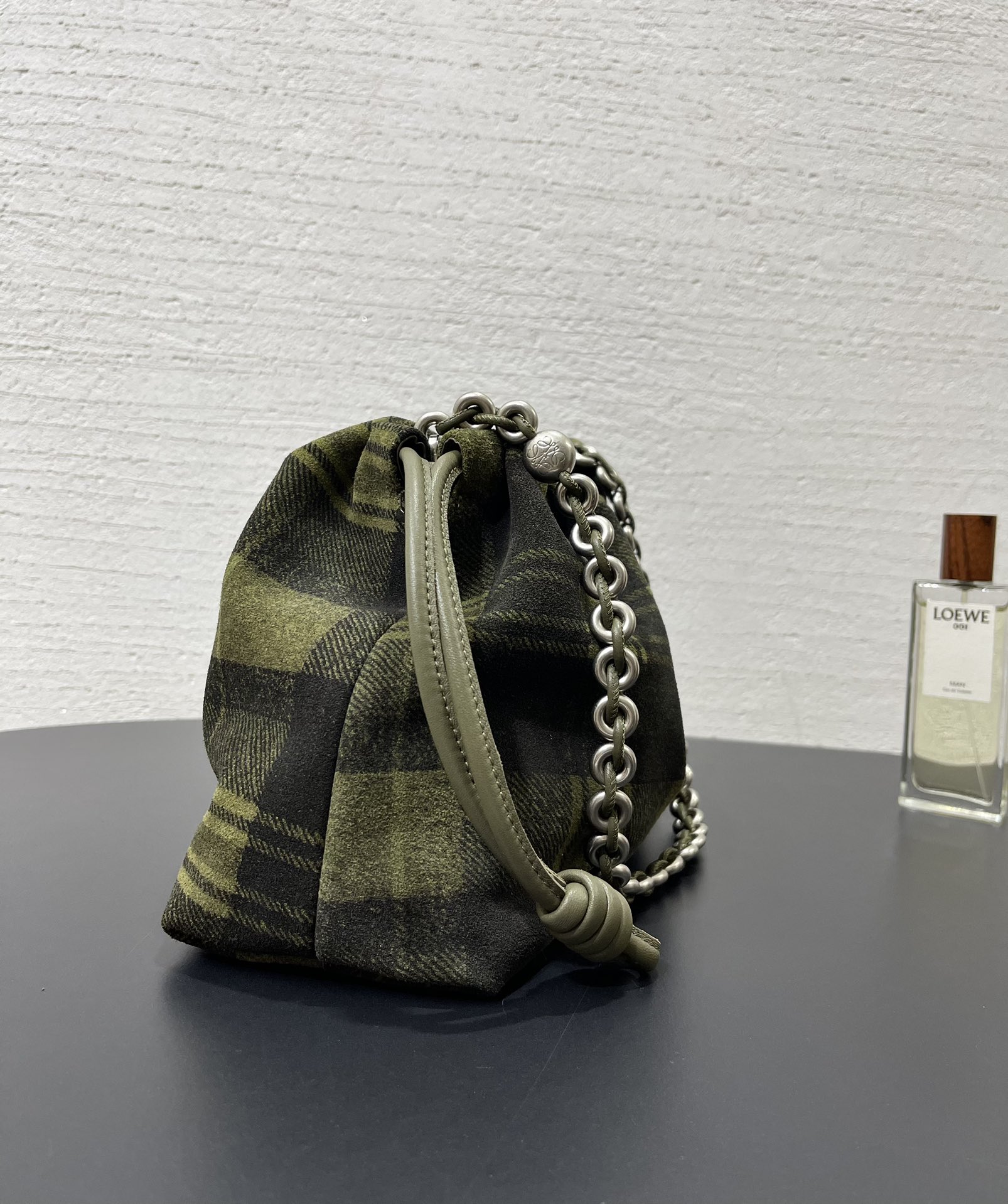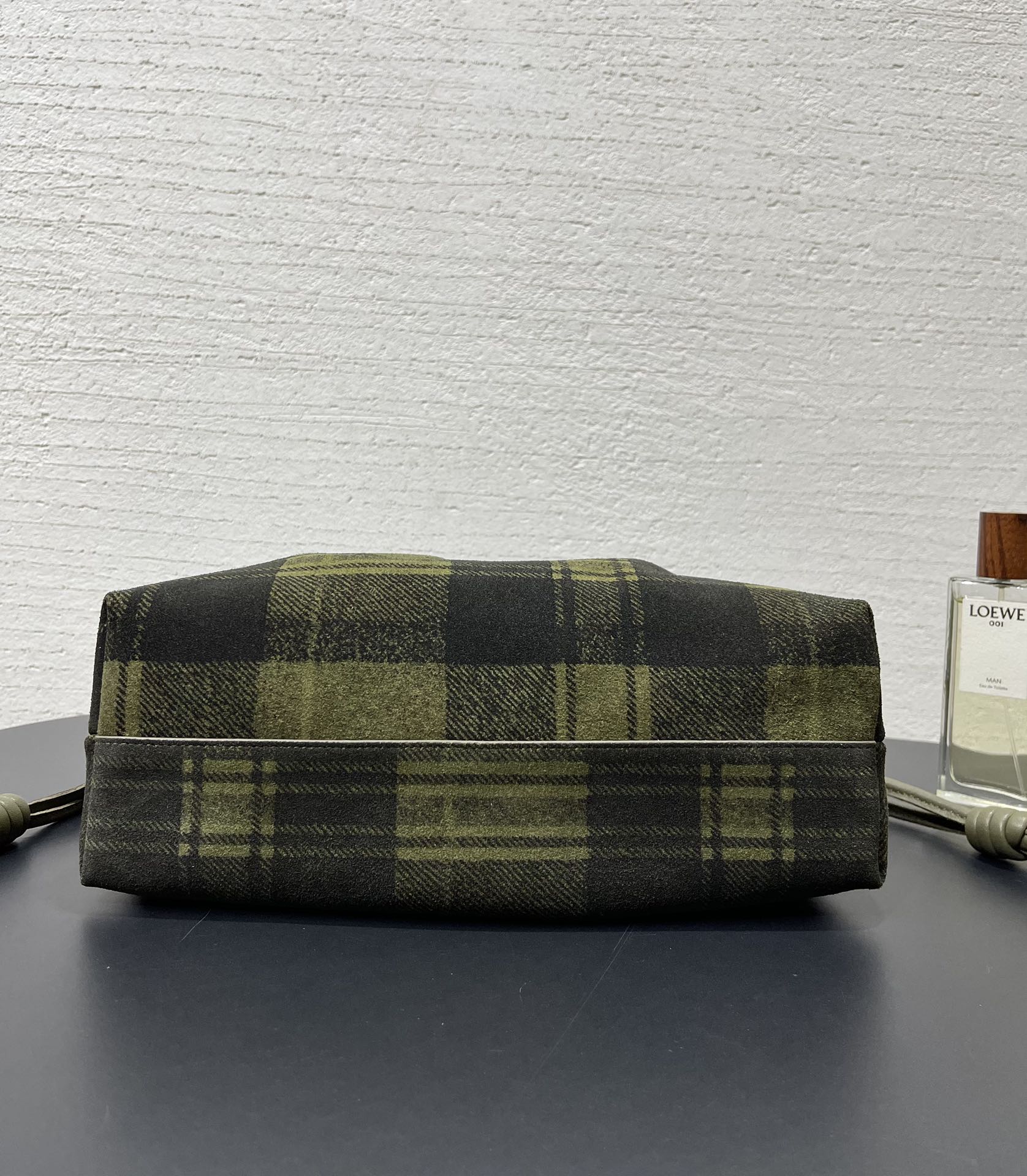 表面看起來像格紋織布,實際上是以麂皮製作的格紋印刷工藝,質感非常特別,也正是標誌性的設計語言。