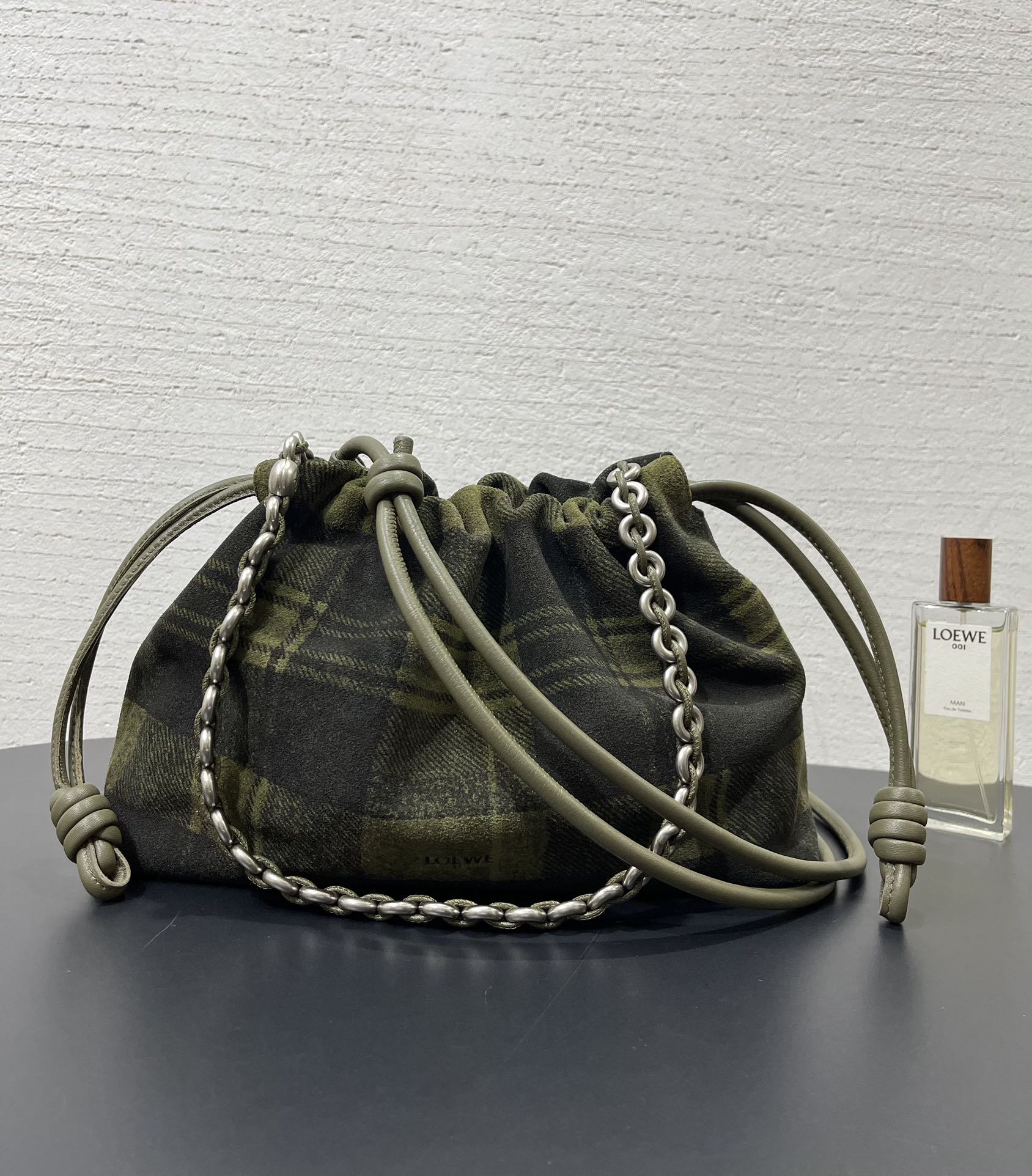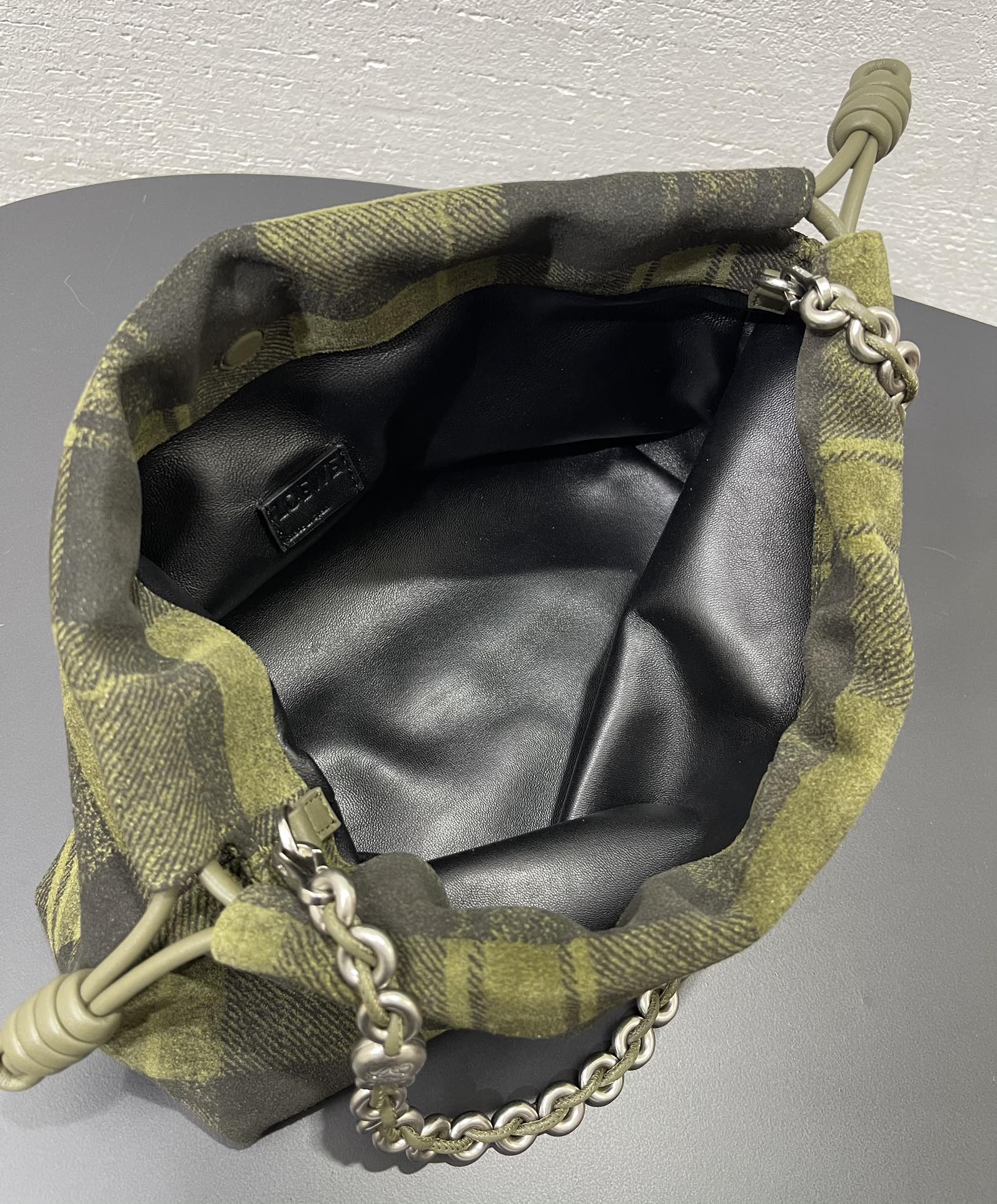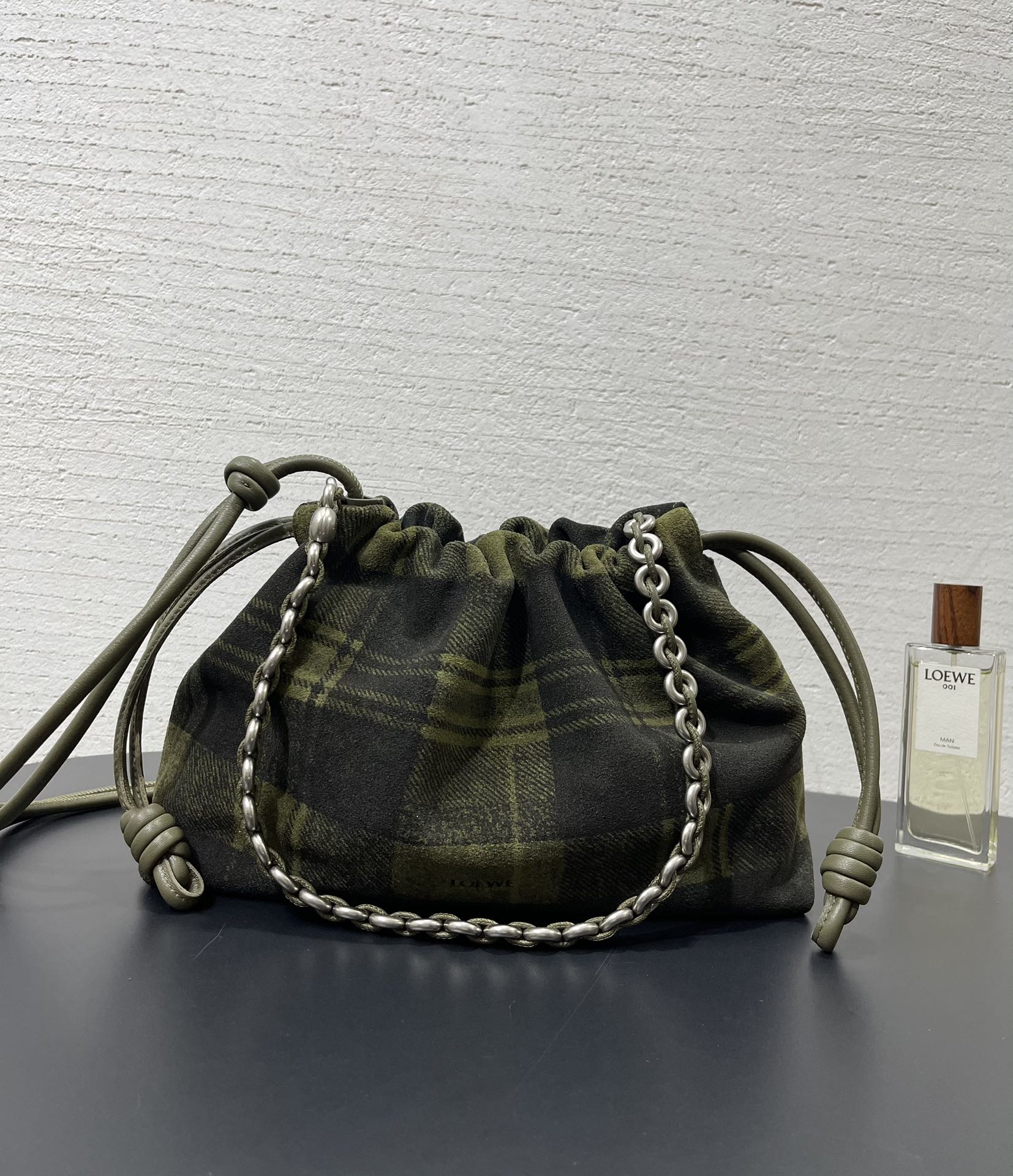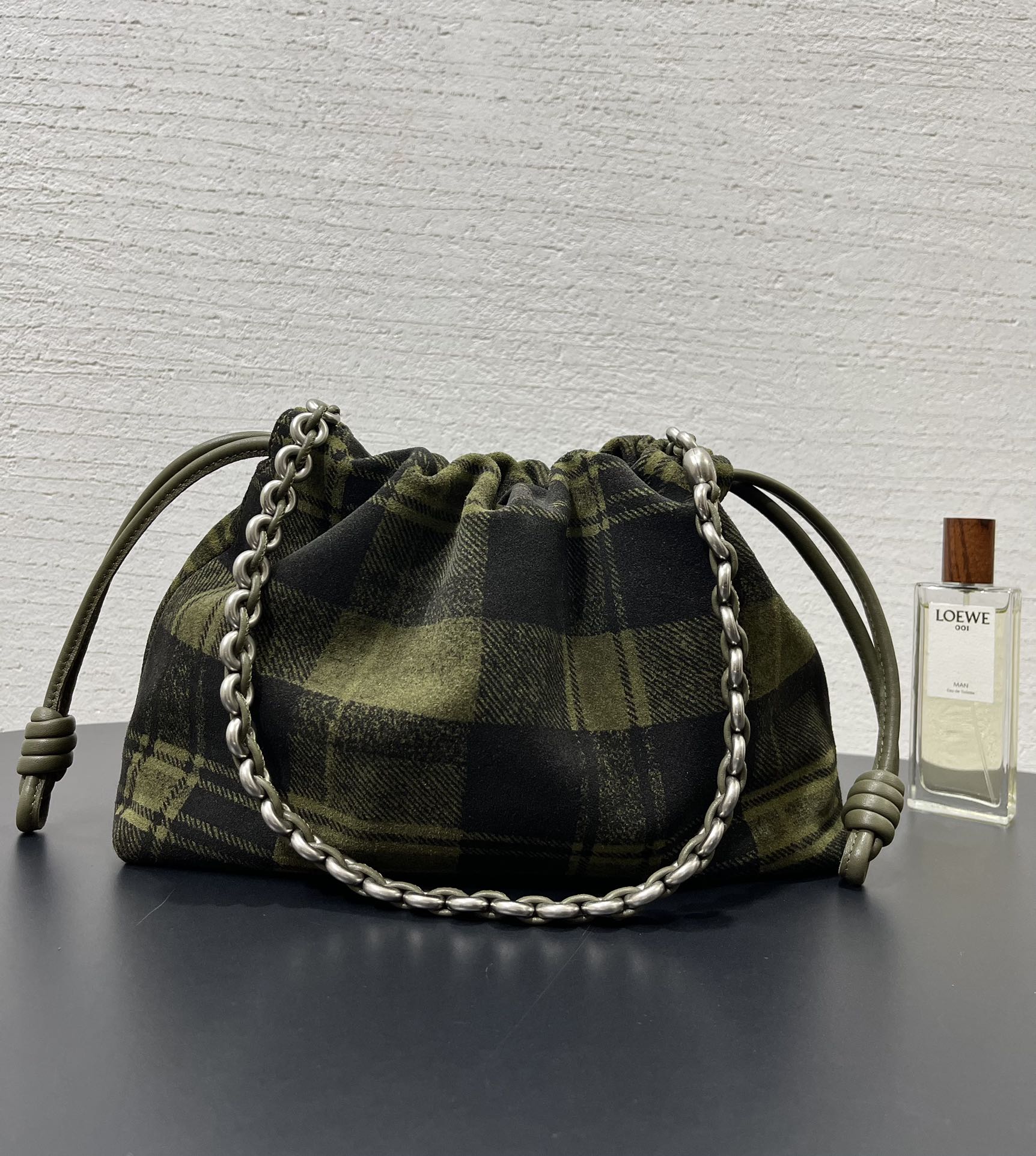 表面看起來像格紋織布,實際上是以麂皮製作的格紋印刷工藝,質感非常特別,也正是標誌性的設計語言。